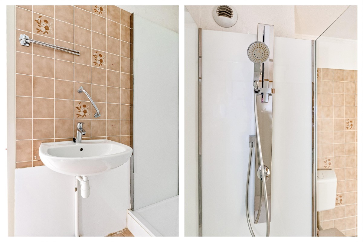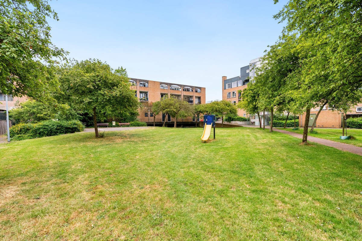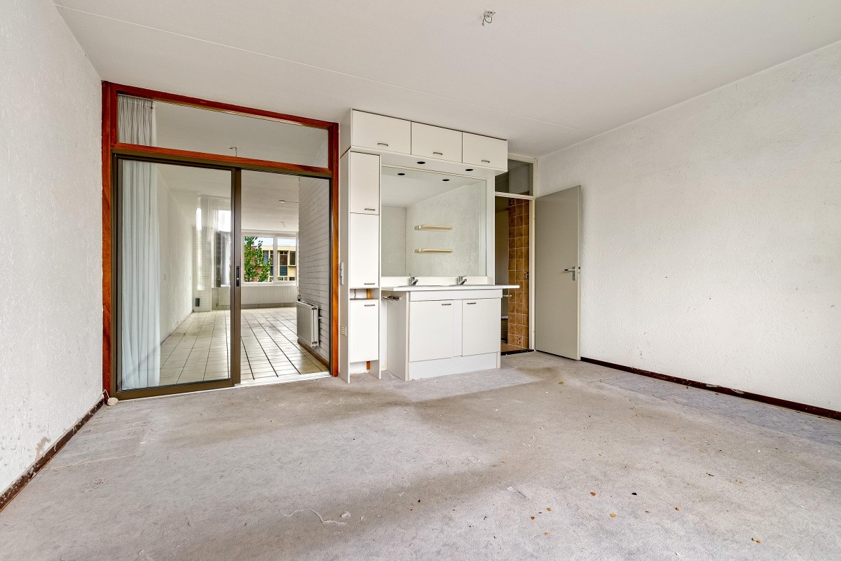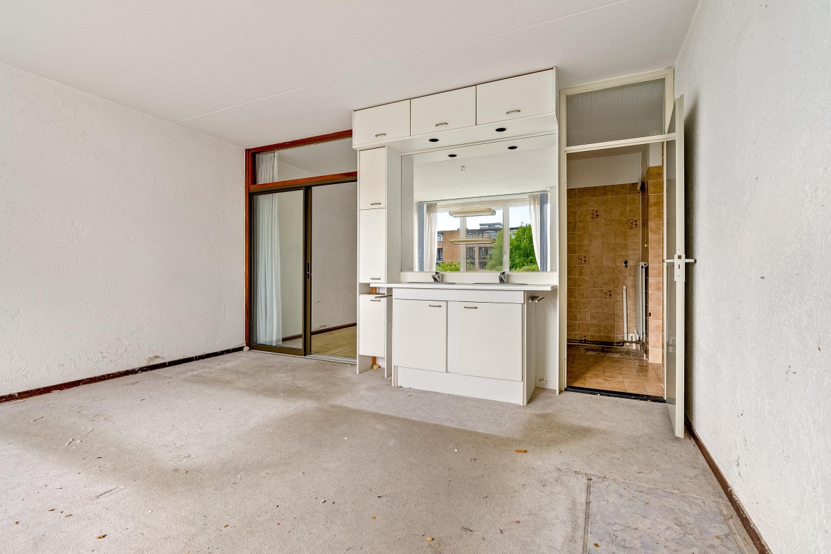 De drie slaapkamers liggen aan de rustige binnenzijde van het complex en kijken uit op de groene binnentuin. De grote slaapkamer is toegankelijk vanuit de woonkamer én badkamer en is voorzien van een eigen wastafel met meubel. Een van de twee kleinere slaapkamers is ook voorzien van een eigen wastafel.