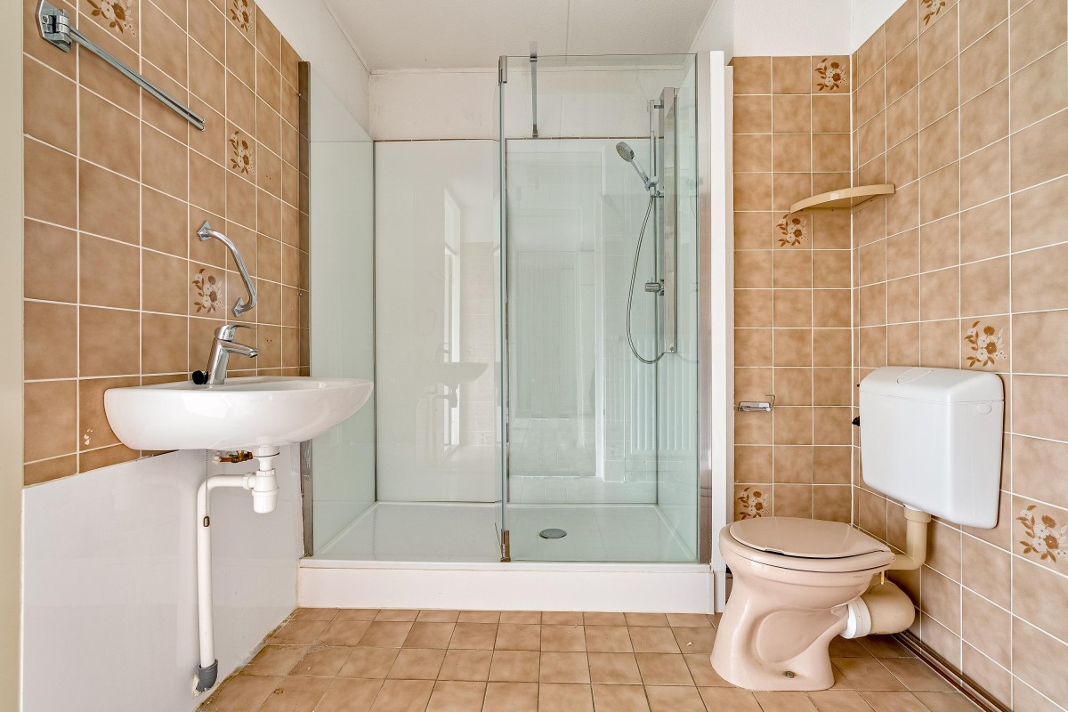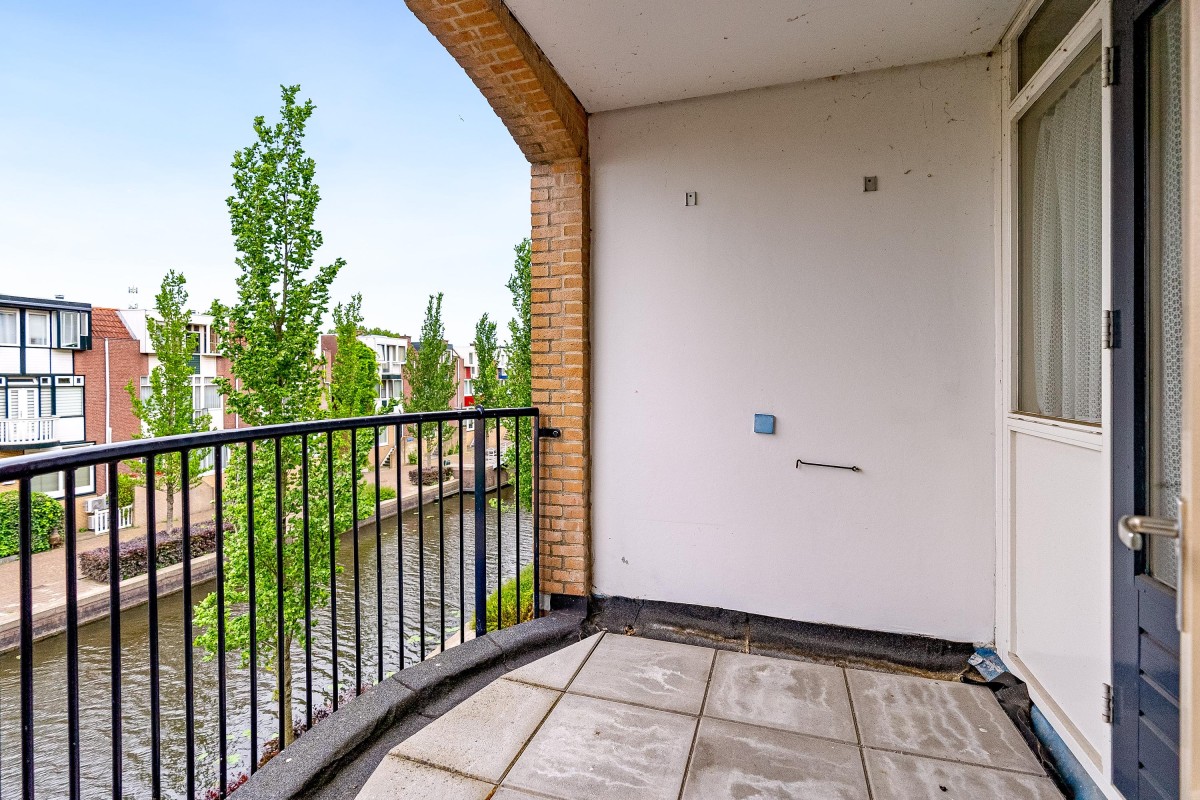 De badkamer beschikt over een douche, tweede toilet en wastafel. Het balkon ligt gunstig op het zuidwesten en biedt een fraai uitzicht op de stadsgracht, een heerlijke plek om te ontspannen in de middag- en avondzon.