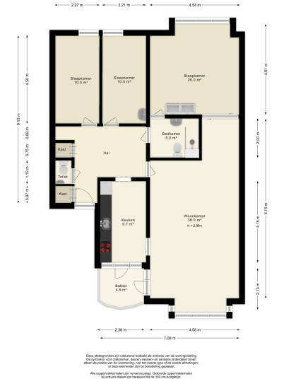 - Het appartement heeft 3 slaapkamers