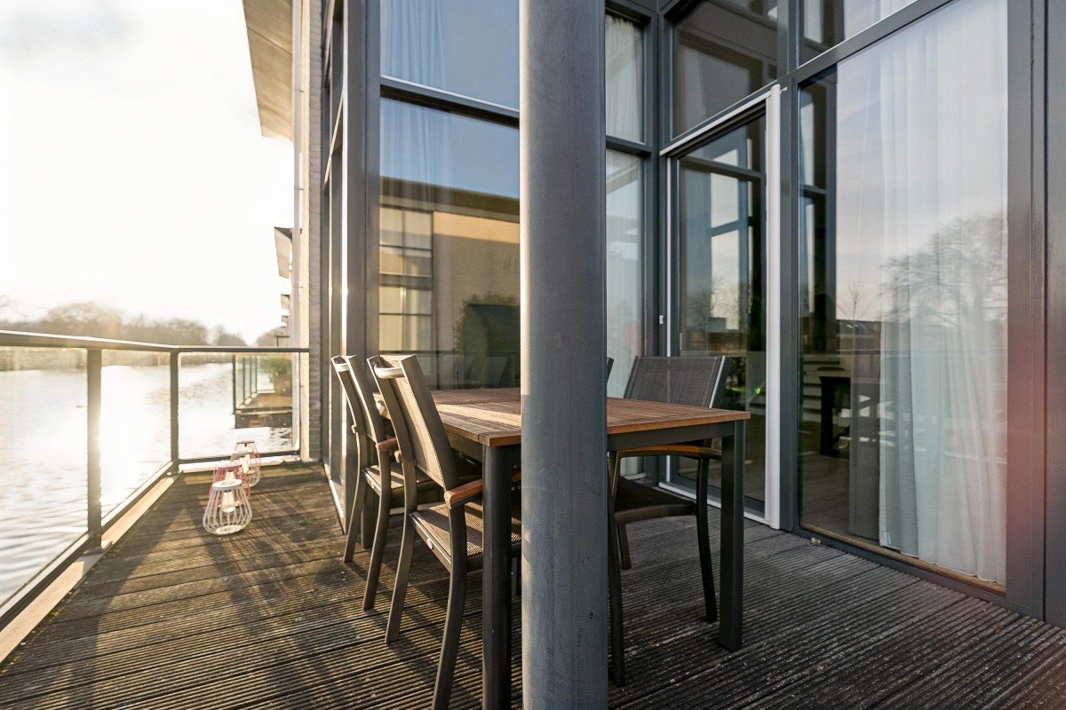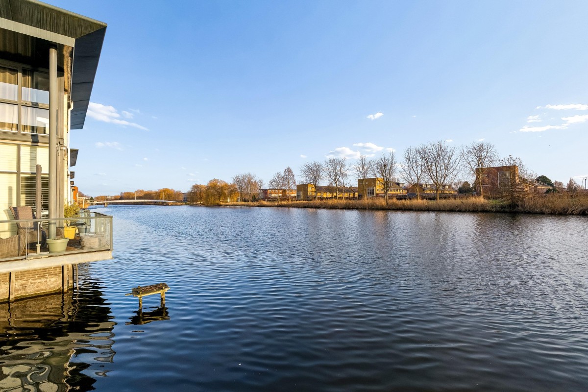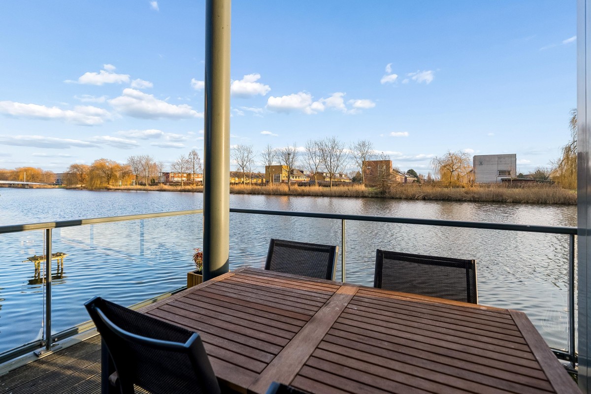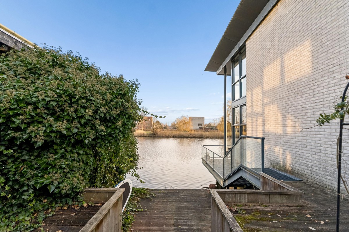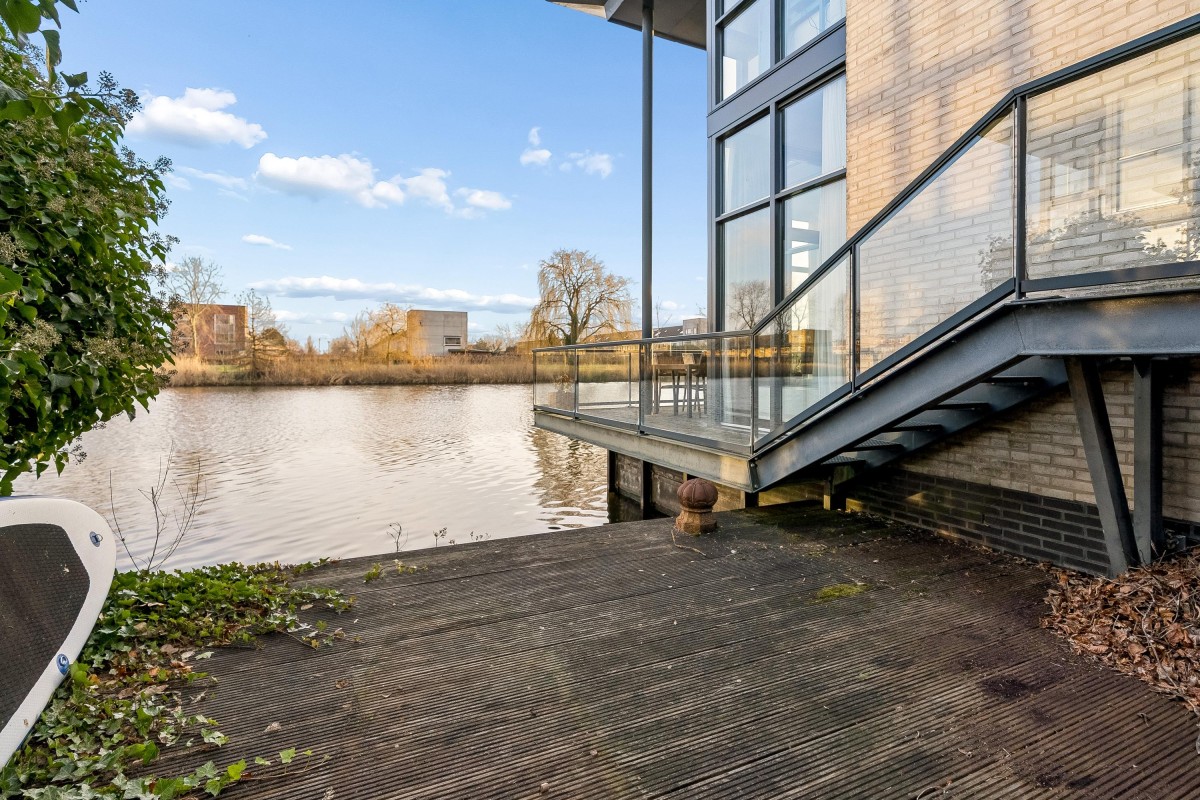 Via de schuifpui in de woonkamer heeft u direct toegang tot het balkon aan het water. Vanaf het balkon loopt u de tuin in, die zich zowel aan de zijkant als aan de voorkant van de woning uitstrekt. Gedurende de dag heeft u de keuze tussen zon of schaduw: op het balkon kunt u genieten van de middagzon, terwijl de tuin een fijne schaduwplek biedt. De tuin is zorgvuldig onderhouden en grotendeels bestraat, wat zorgt voor een strakke en onderhoudsvriendelijke uitstraling.
