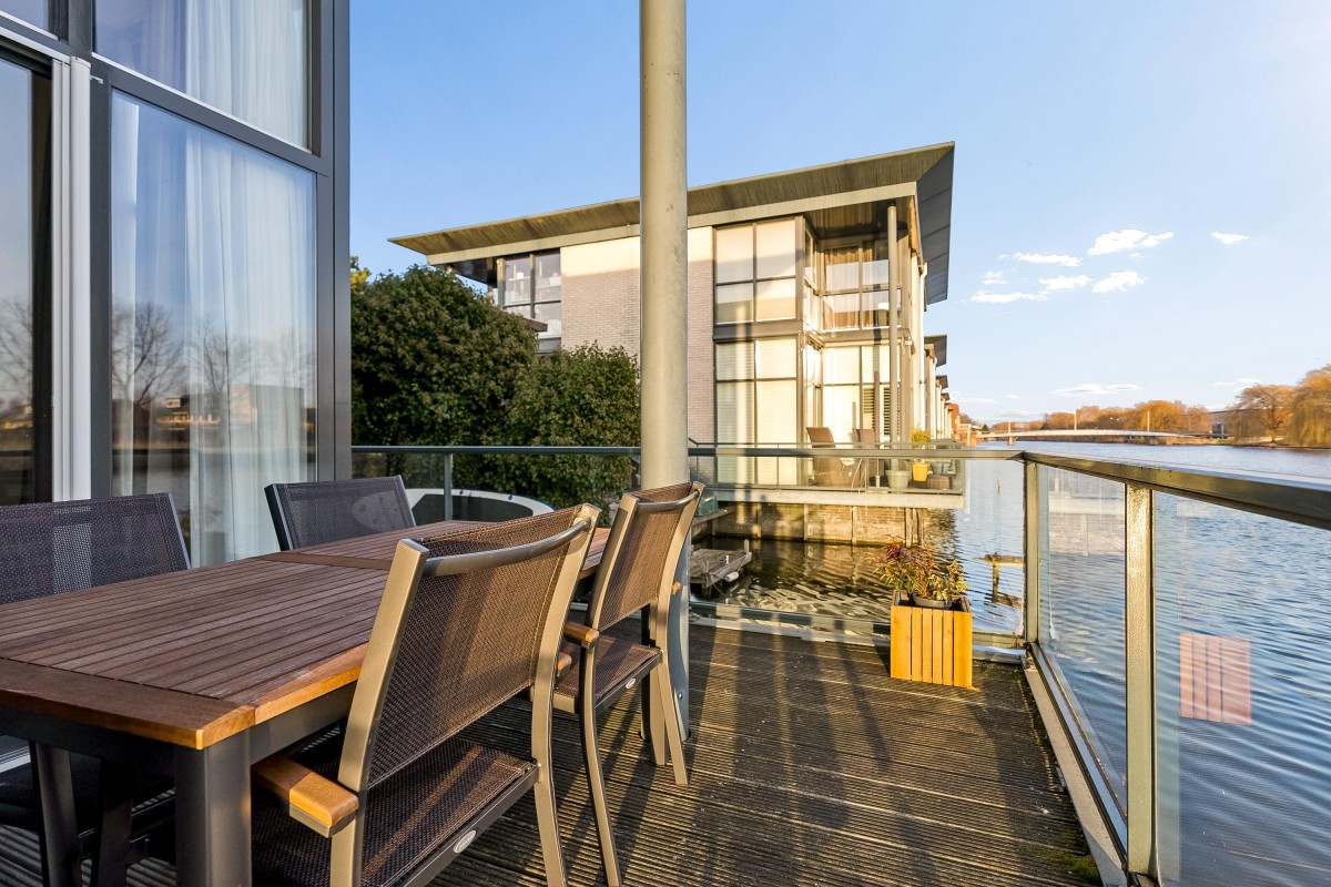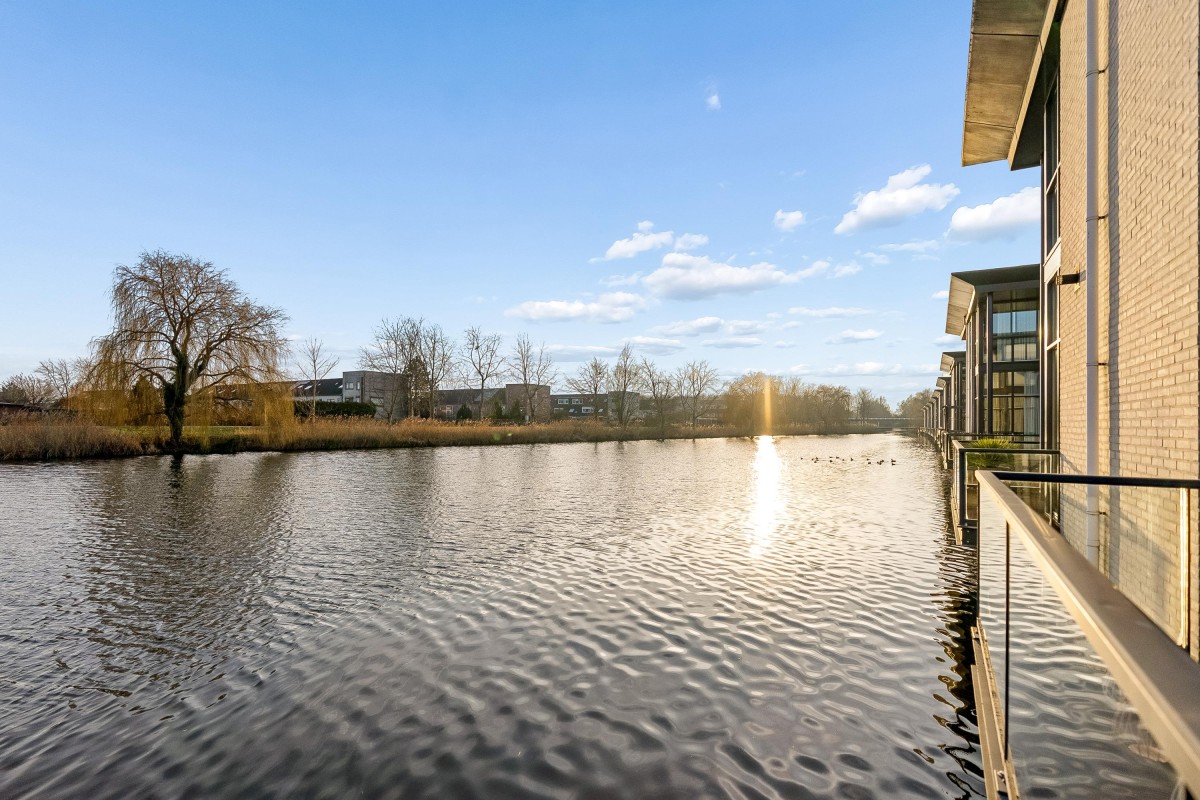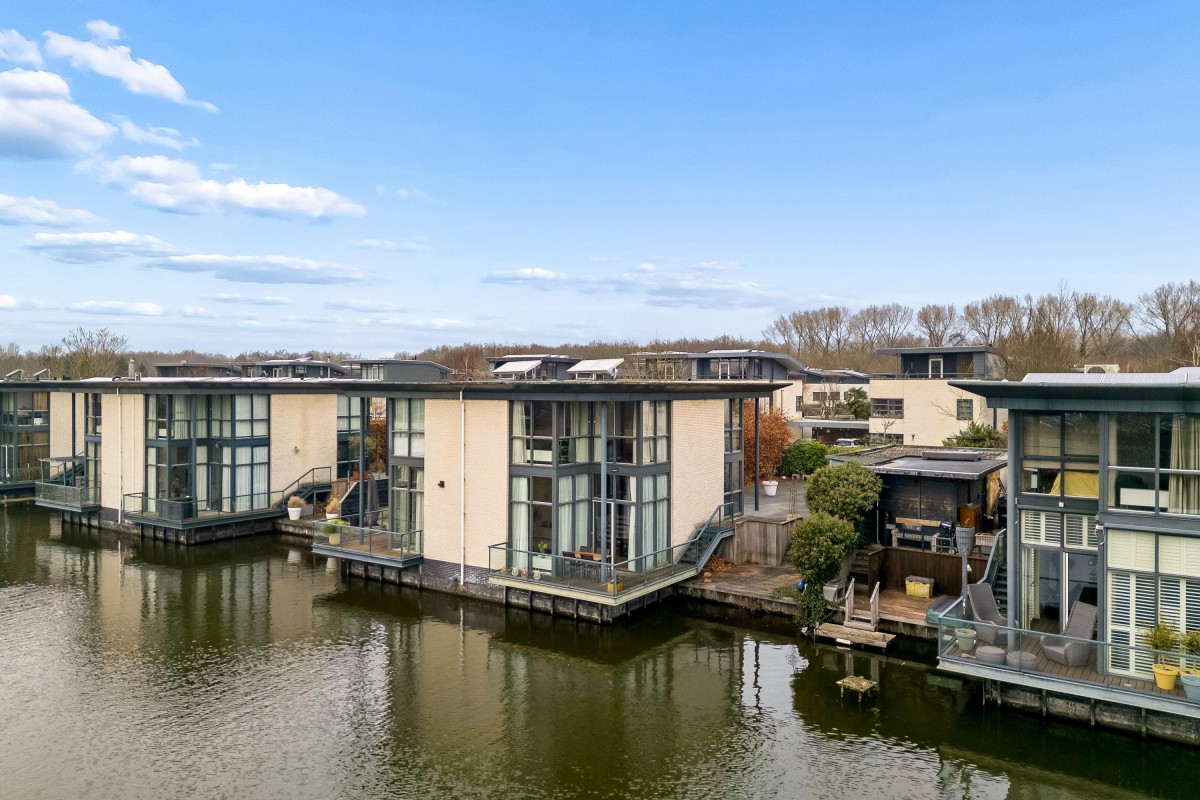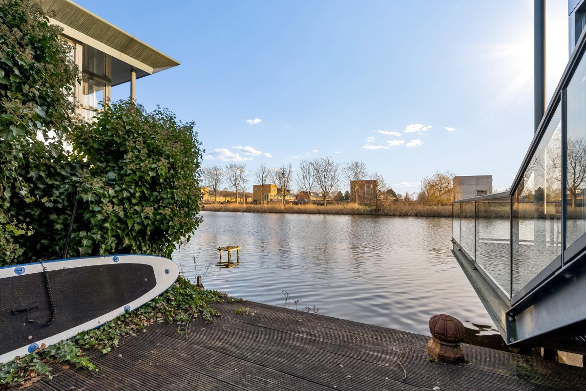 Via de schuifpui in de woonkamer heeft u direct toegang tot het balkon aan het water. Vanaf het balkon loopt u de tuin in, die zich zowel aan de zijkant als aan de voorkant van de woning uitstrekt. Gedurende de dag heeft u de keuze tussen zon of schaduw: op het balkon kunt u genieten van de middagzon, terwijl de tuin een fijne schaduwplek biedt. De tuin is zorgvuldig onderhouden en grotendeels bestraat, wat zorgt voor een strakke en onderhoudsvriendelijke uitstraling.