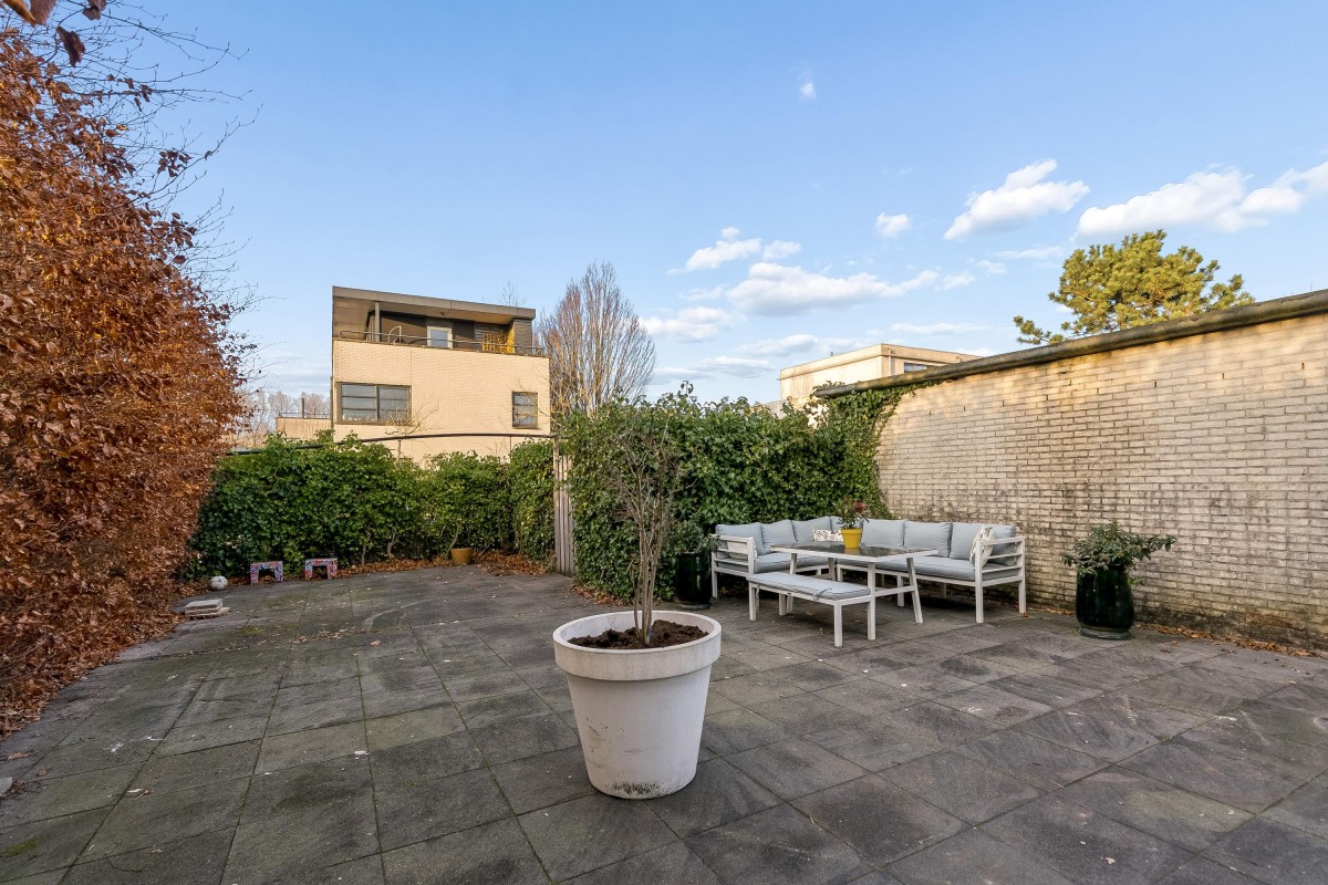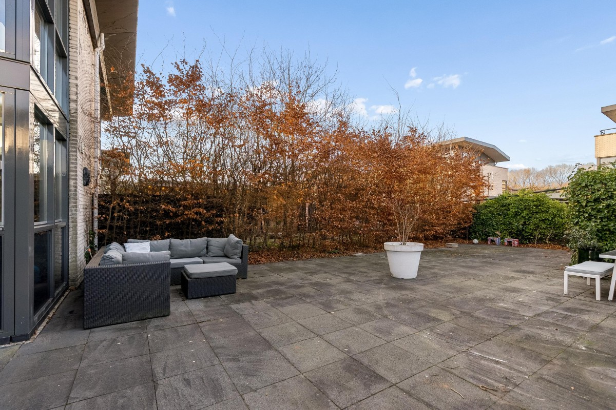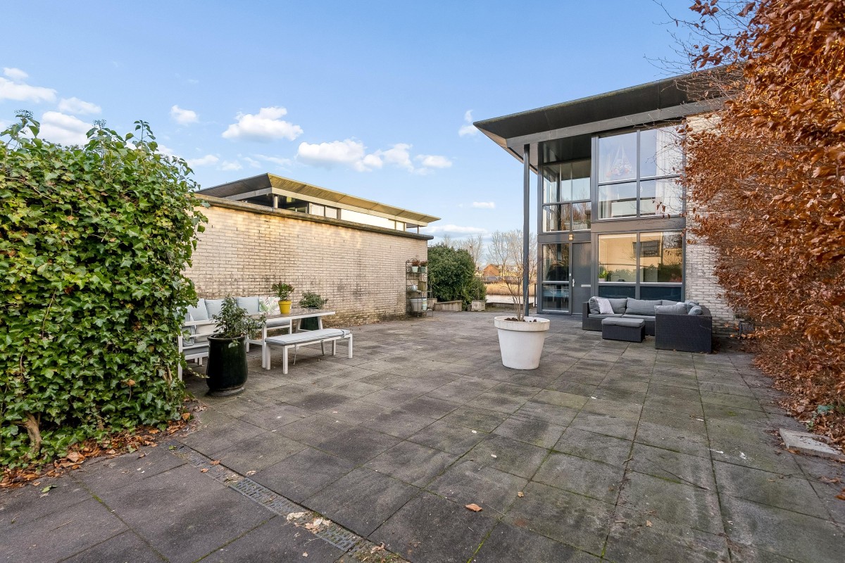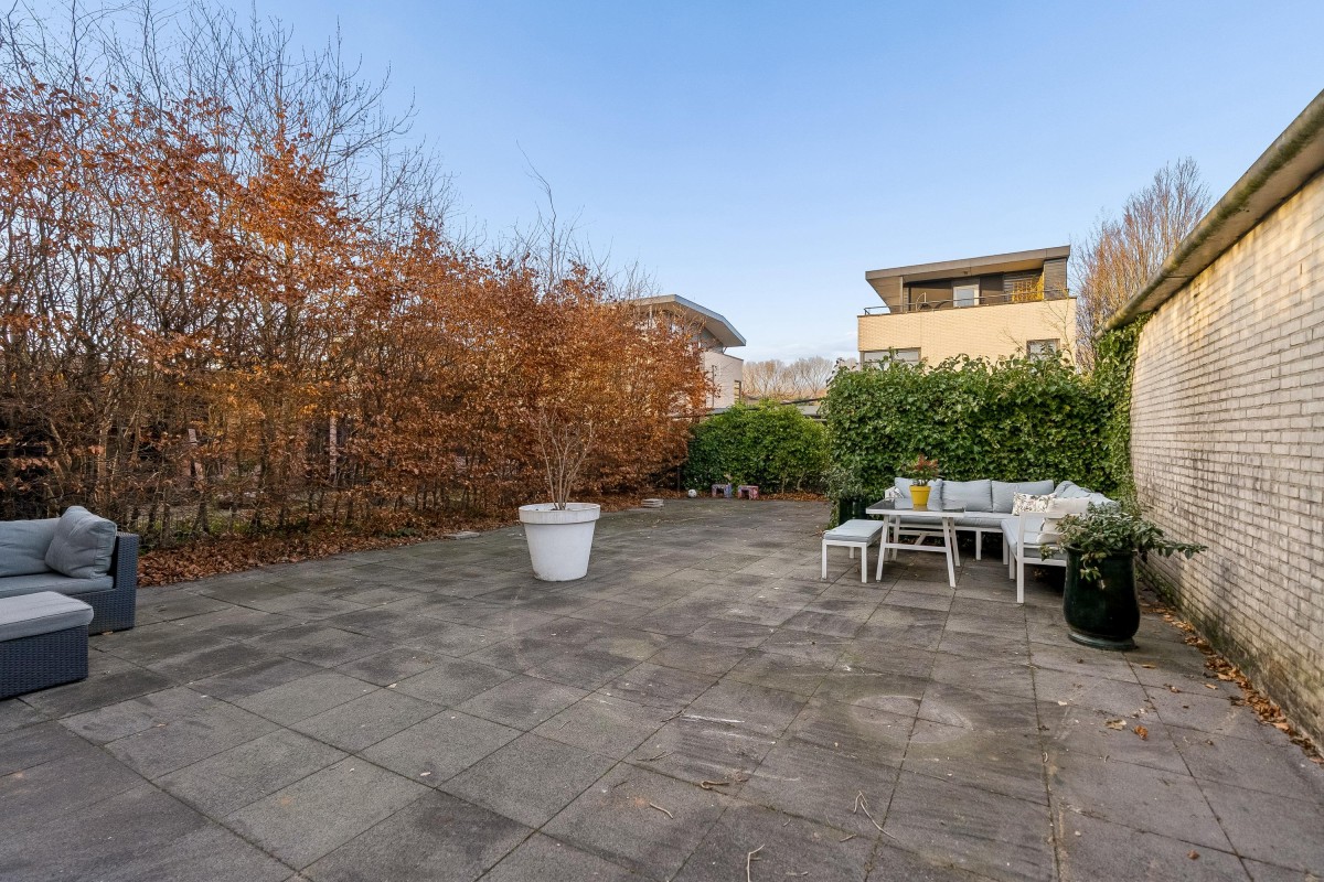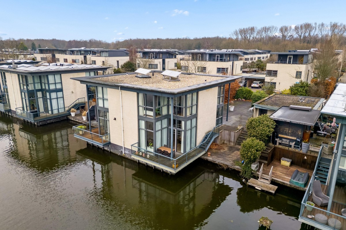Via de schuifpui in de woonkamer heeft u direct toegang tot het balkon aan het water. Vanaf het balkon loopt u de tuin in, die zich zowel aan de zijkant als aan de voorkant van de woning uitstrekt. Gedurende de dag heeft u de keuze tussen zon of schaduw: op het balkon kunt u genieten van de middagzon, terwijl de tuin een fijne schaduwplek biedt. De tuin is zorgvuldig onderhouden en grotendeels bestraat, wat zorgt voor een strakke en onderhoudsvriendelijke uitstraling.