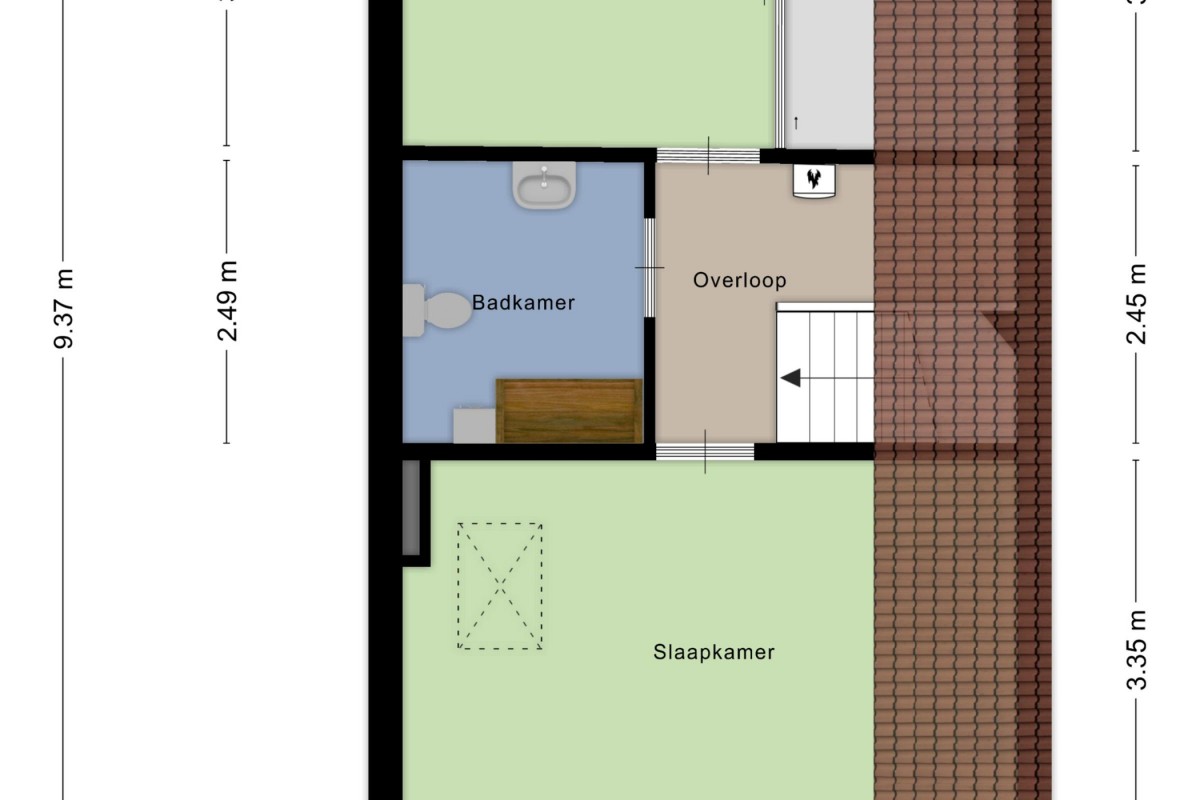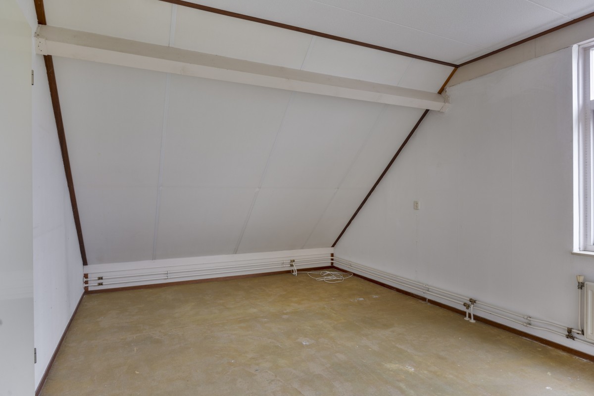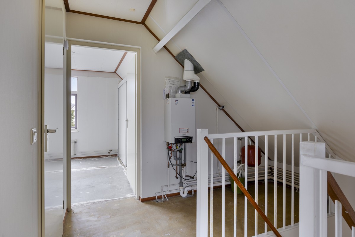 Op de verdieping treft u een ruime overloop, twee grote slaapkamers en een badkamer met douche, wastafel en aansluiting voor wasmachine en wasdroger. Middels een vlizotrap is de grote vliering bereikbaar.