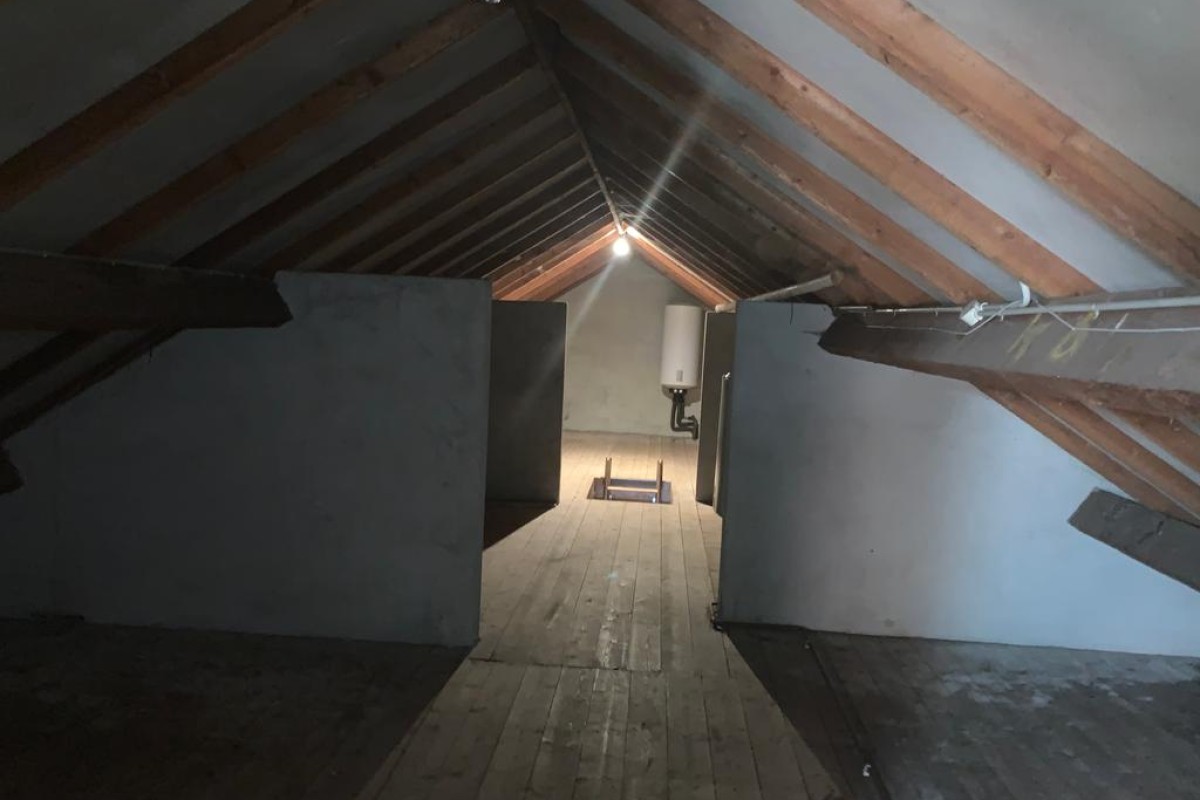 1e Verdieping: middels een vlizotrap is deze verdieping bereikbaar momenteel is dit in gebruik als berging het heeft een oppervlak van ca. 100 m2.