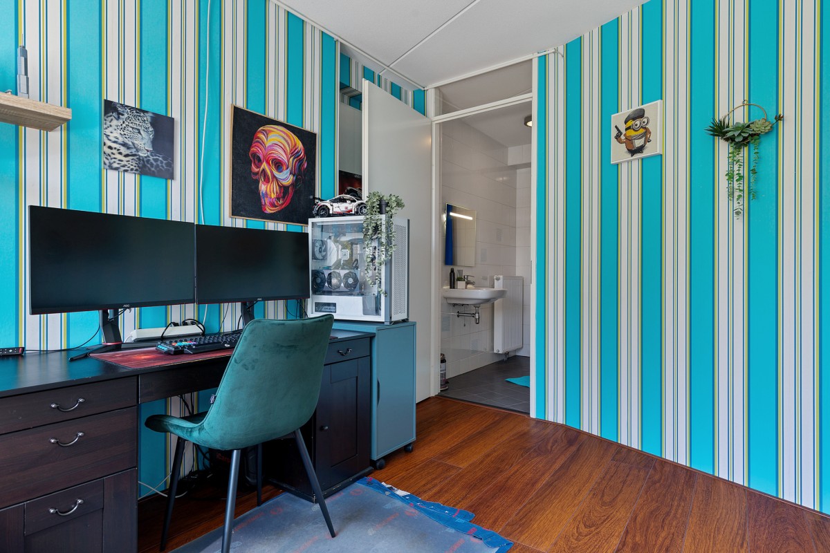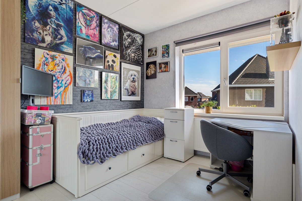 Ook is de ruimte perfect in te richten als tienerruimte. U kunt de ruimte praktisch indelen waarin slapen, studeren en ontspannen moeiteloos samenkomen.