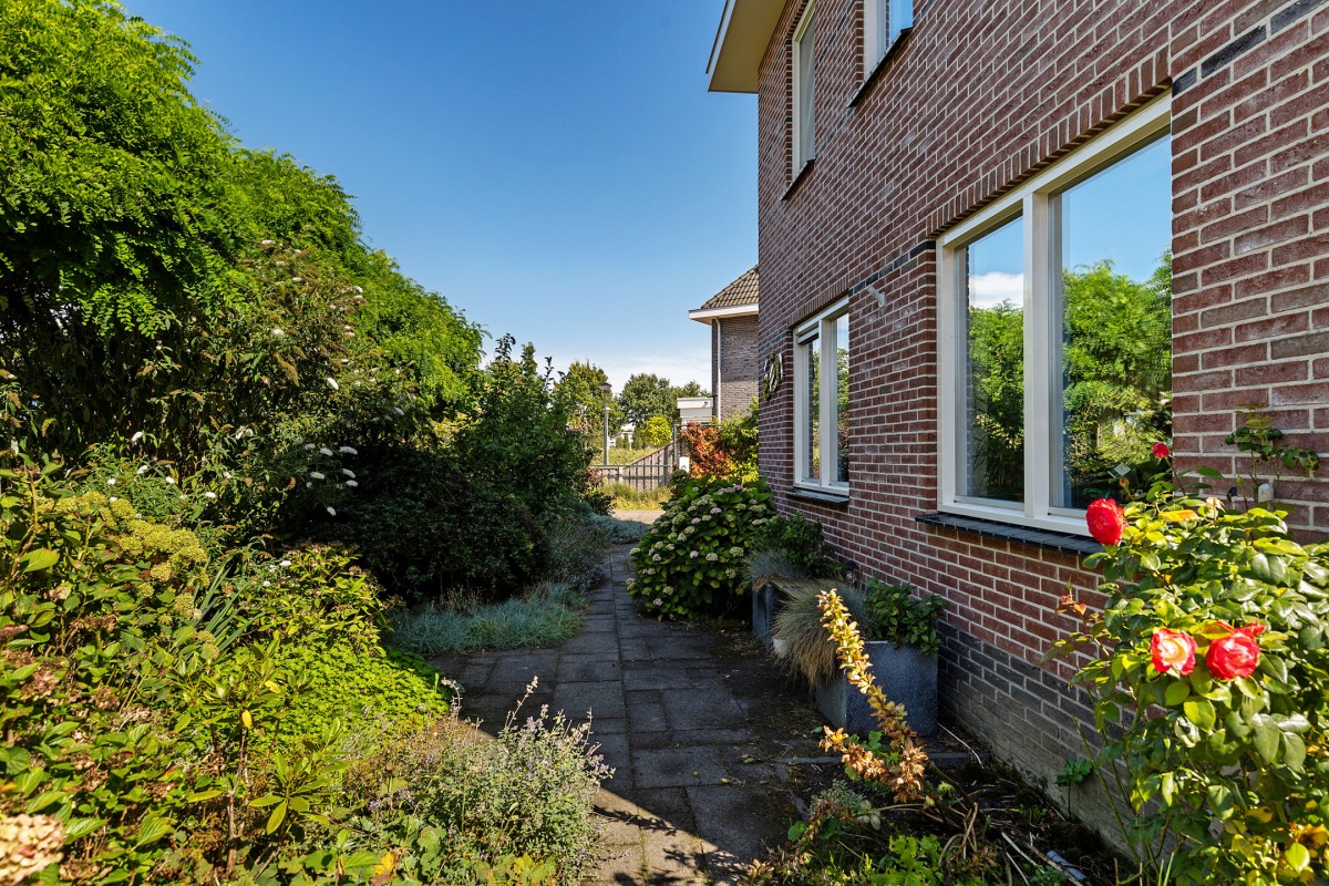 Via de verzorgde tuin, met parkeren op eigen terrein voor meerdere voertuigen bereikt u de entree van de woning.