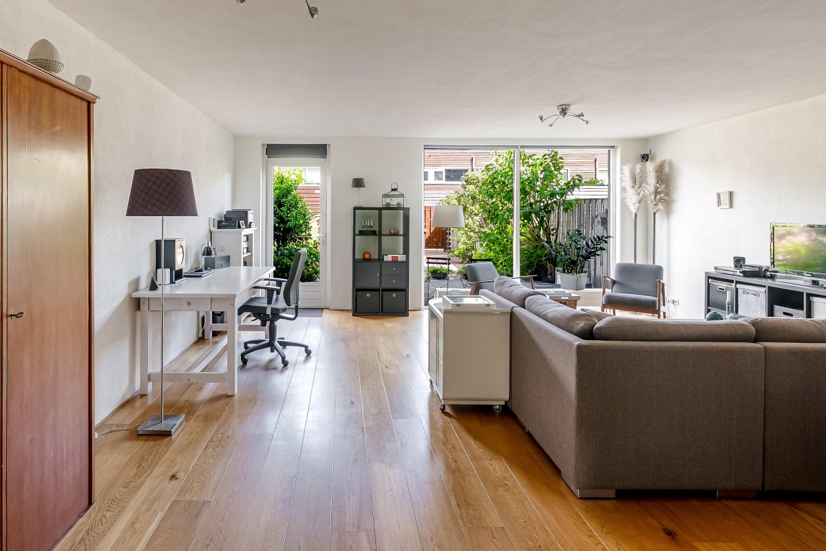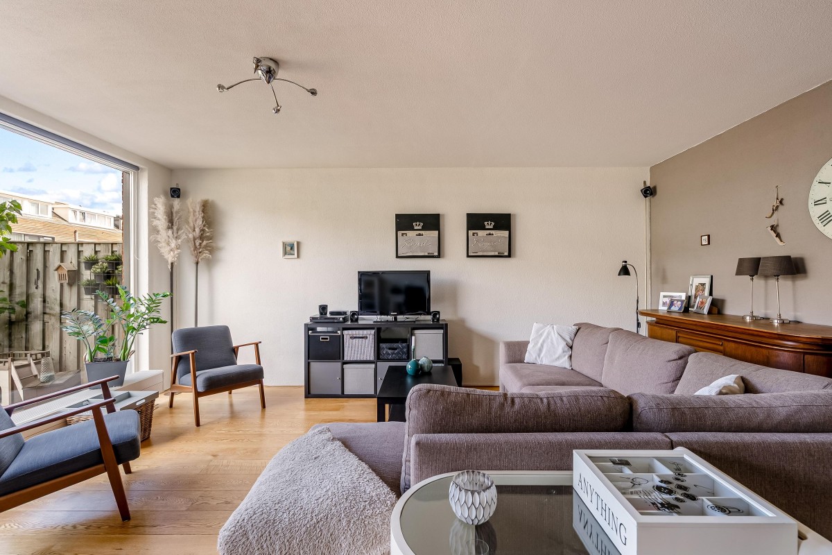 Royale entree/hal met de meterkast, toilet, trapkast en toegang tot de ruime living. De lichte en ruime woonkamer geeft middels een tuindeur toegang tot een heerlijke achtertuin.