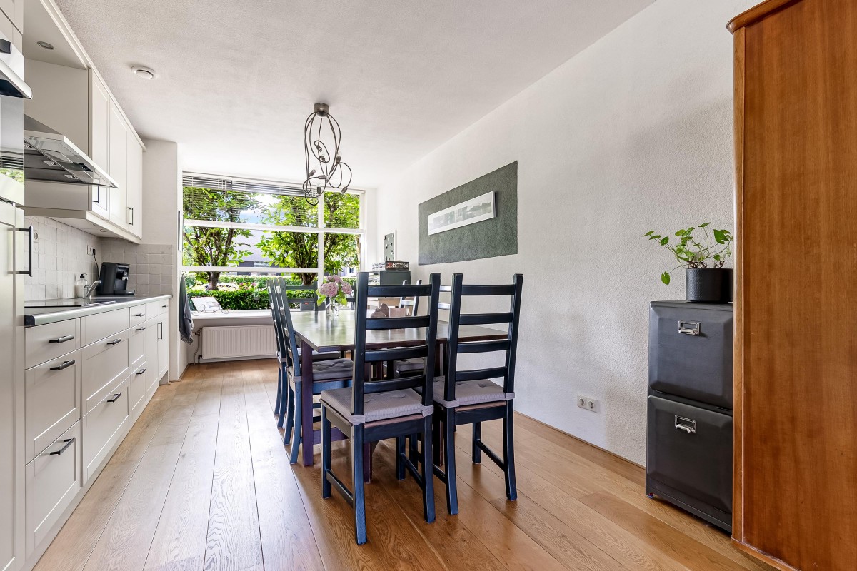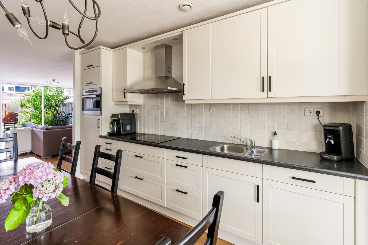 Lees verderDe keuken heeft een rechte opstelling en is voorzien van diverse inbouwapparatuur waaronder een vaatwasser, kookplaat, combi-oven, afzuigschouw en koelkast. De woonkeuken met erker heeft voldoende ruimte voor een royale eethoek. De woonkamer en keuken hebben een gezamenlijk woonoppervlakte van maar liefst 50m² en de vloer is afgewerkt met eikenhouten lamelparket. Via de trap in de hal bereikt u de eerste verdieping.