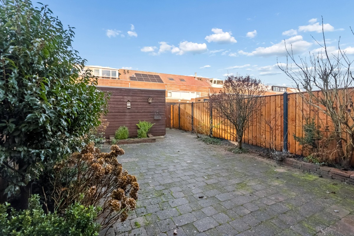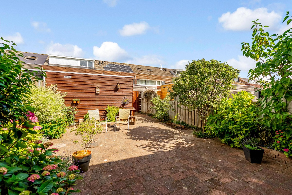 De zonnige achtertuin is gelegen op het noordwesten, ideaal als u op zomerse dagen ook ná uw werk nog van de zon wilt genieten. De tuin is verder voorzien van sierbestrating, plantenborders, houten berging (15 m2) en achterom.