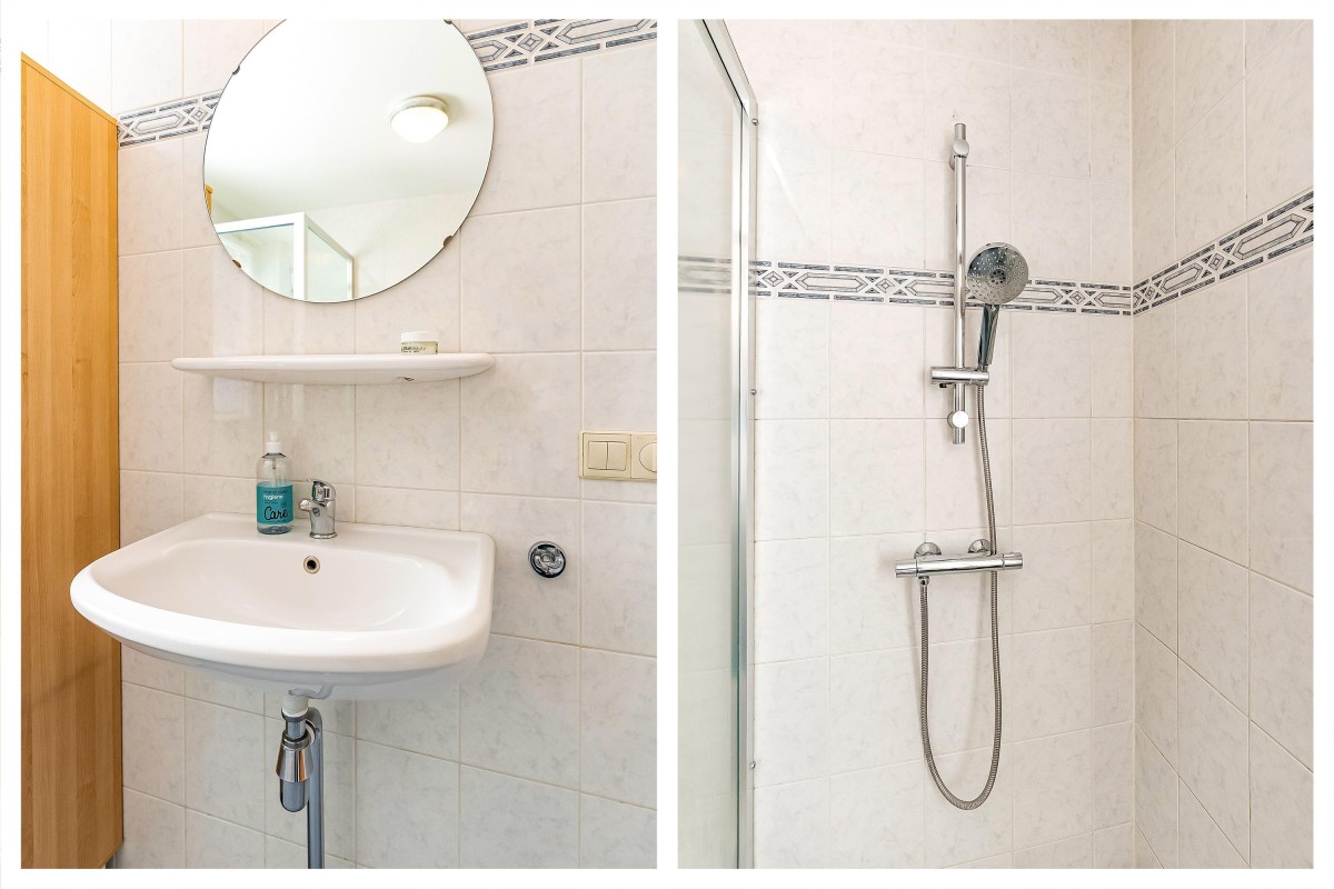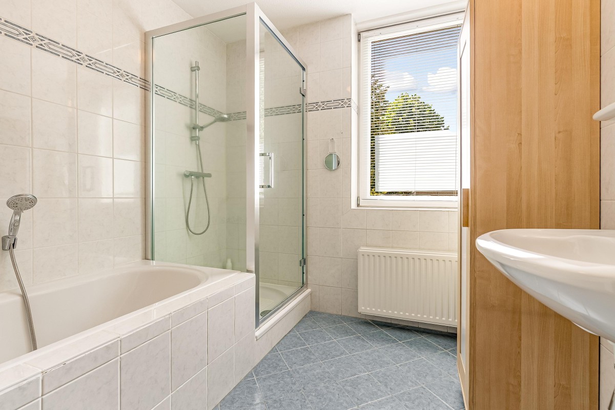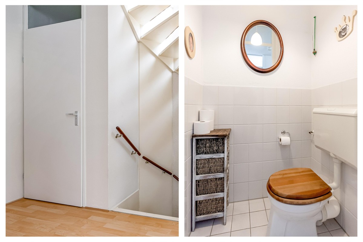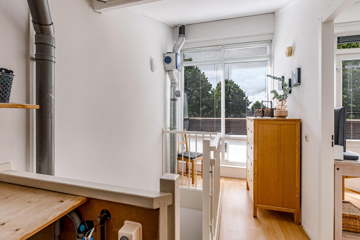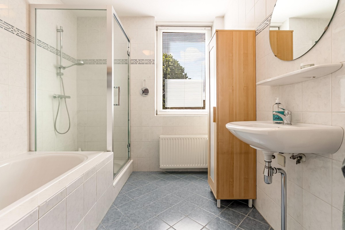 Overloop met separate toiletruimte en toegang tot 3 royale slaapkamers. De badkamer is uitgevoerd met lichte betegeling tot het plafond, douche, ligbad, wastafel en een raam voor extra ventilatie. De gehele verdieping is voorzien van een nette laminaatvloer. Via de open trap op de overloop bereikt u de 2e verdieping.