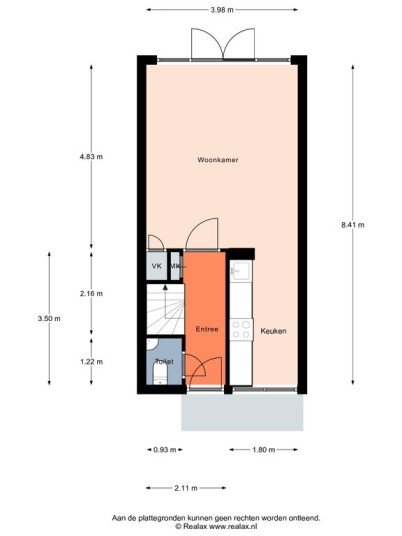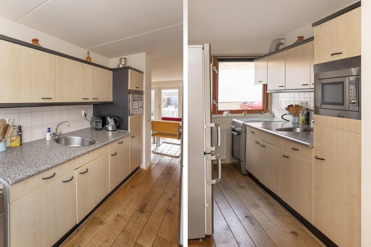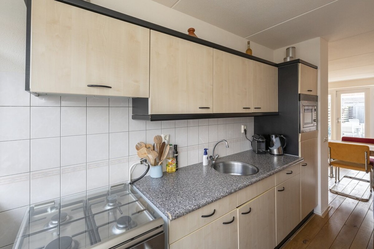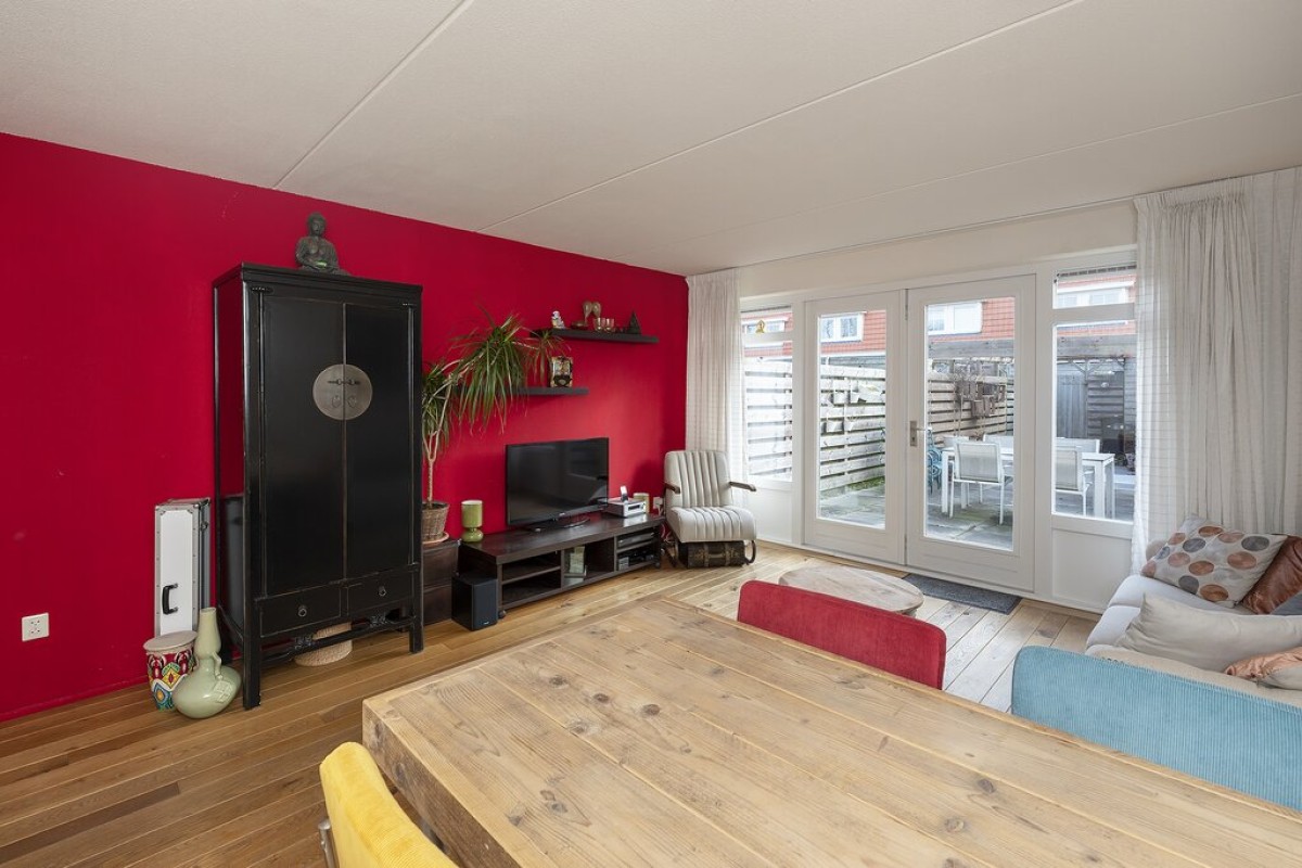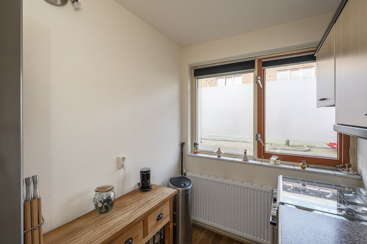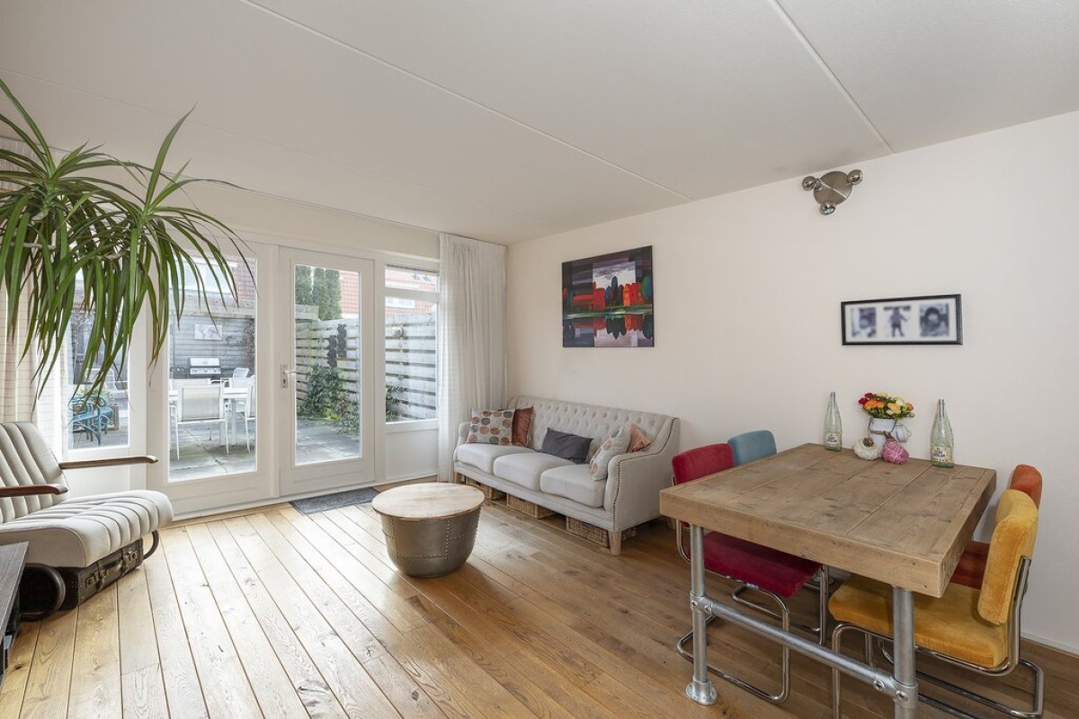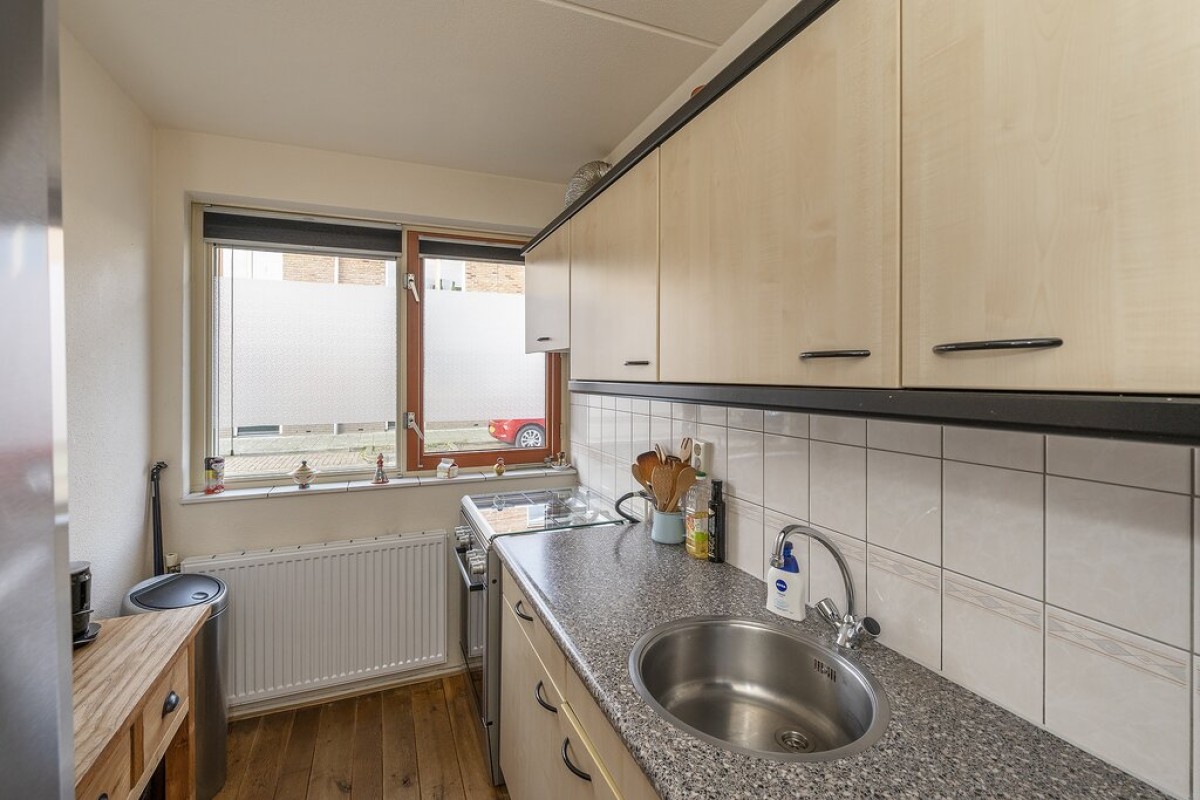 Entree, hal met toilet, trapopgang en meterkast, doorgang naar de tuingerichte woonkamer. In 2016 zijn hier twee openslaande deuren geplaatst welke doorgang geven naar de bijzonder diepe achtertuin. Aan de voorzijde bevindt zich de keuken met veel kastruimte en voorzien van een magnetron. Op de vloer ligt een massief eiken houten vloer en onder de trap is nog een praktische kast aanwezig.