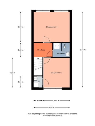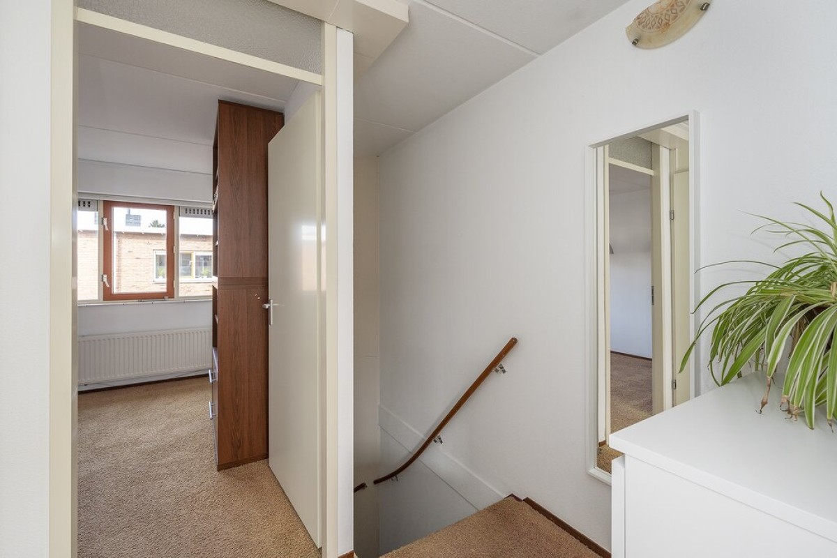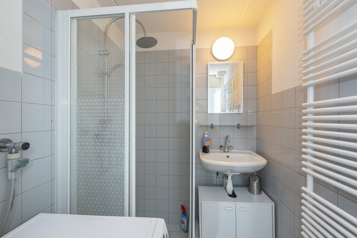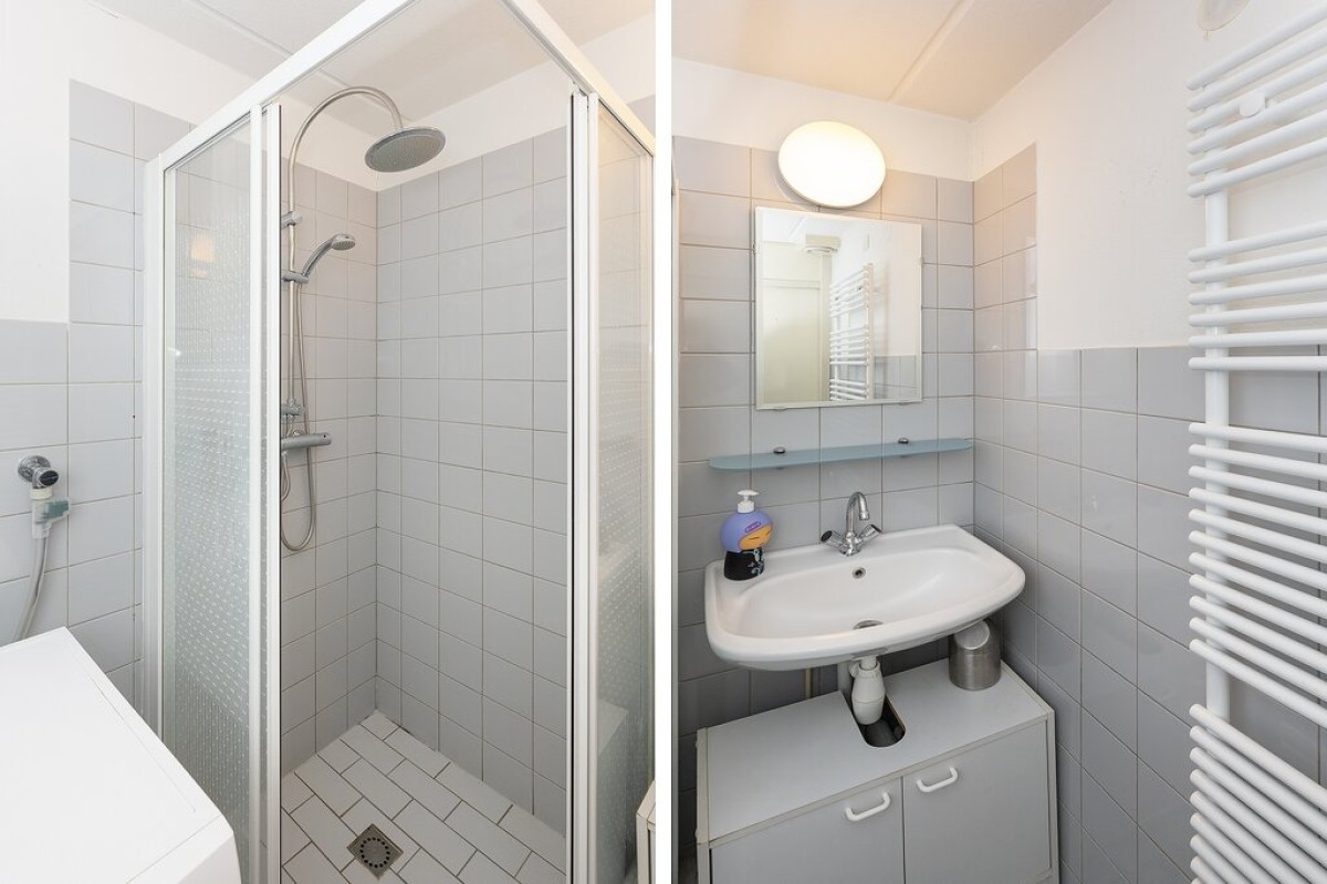 Overloop, toegang tot de 2 slaapkamers en de badkamer. De slaapkamers zijn royaal te noemen en voorzien van vloerbedekking. De badkamer is neutraal betegeld en is voorzien van een douchehoek, een wastafel en de opstelling voor de wasmachine. De cv-installatie (Remeha Tzerra uit 2012) bevindt zich in een separate bergkast.