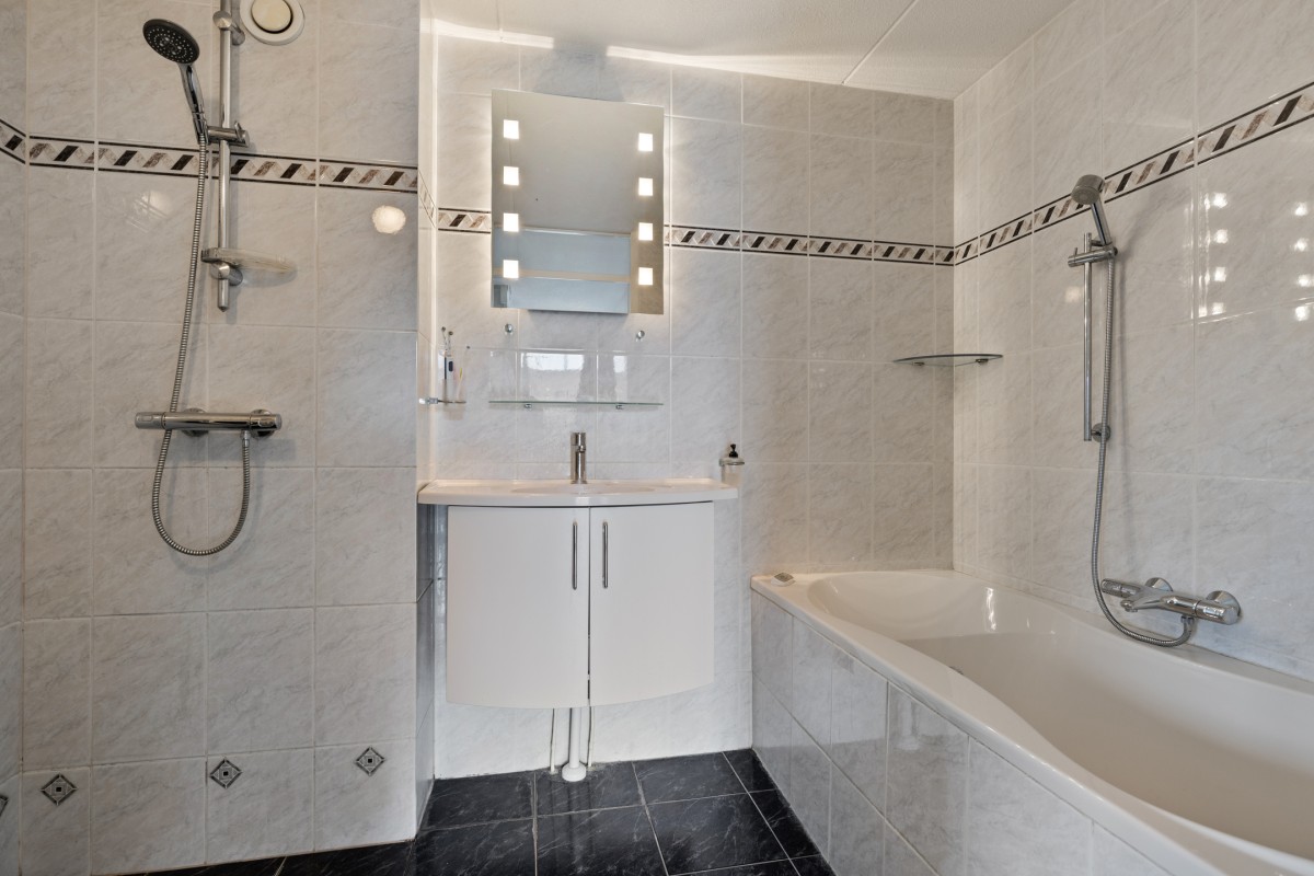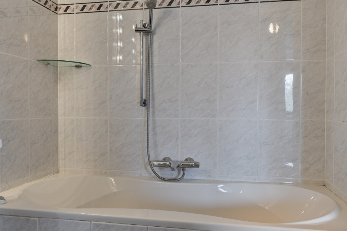 Eerste verdieping: Overloop, 3 royale slaapkamers, de royale ouderslaapkamer is aan de achterzijde gesitueerd over de gehele breedte van de woning. Badkamer met ligbad, douchehoek, wastafelmeubel. Tevens treft u op de overloop een separaat 2e toilet.