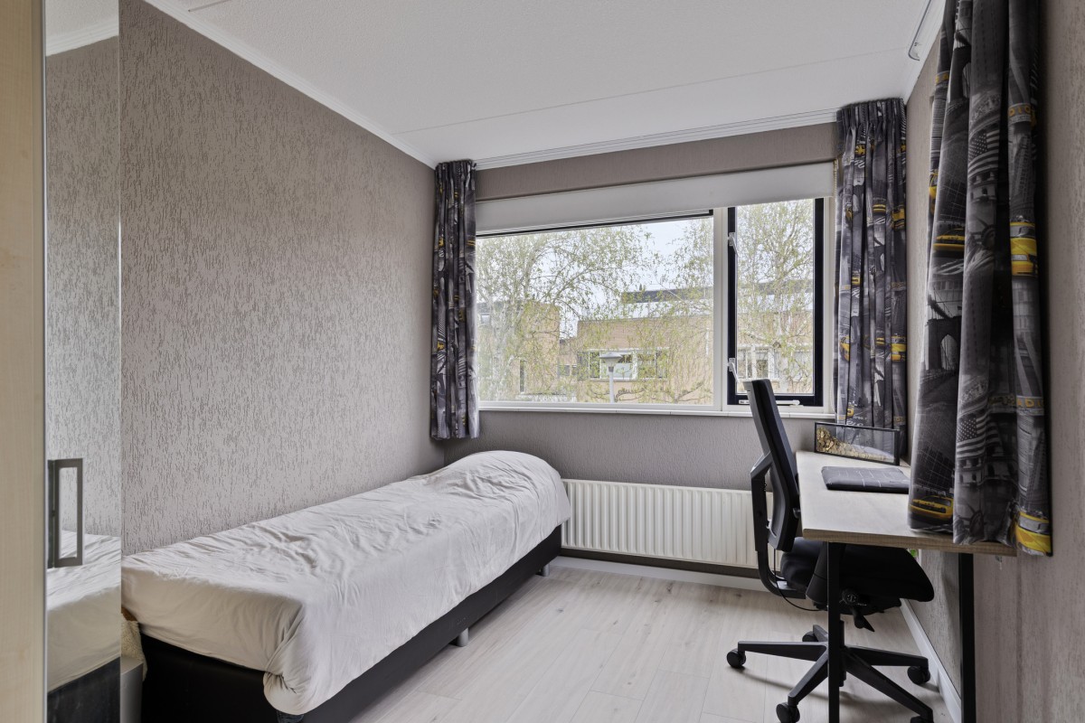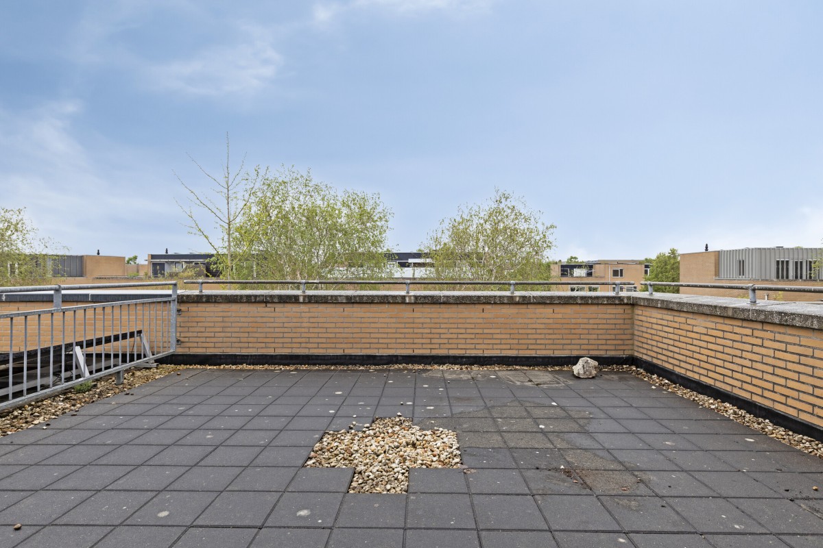 Tweede verdieping: slaapkamer, riante ruimte voor bergmogelijkheden alsmede treft u hier de cv-/wasruimte en riant dakterras van maar liefst 23 m2. Tevens beschikt deze woning over de potentie om dit dakterras deels te bebouwen om eenvoudig extra woonmeters te realiseren.