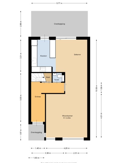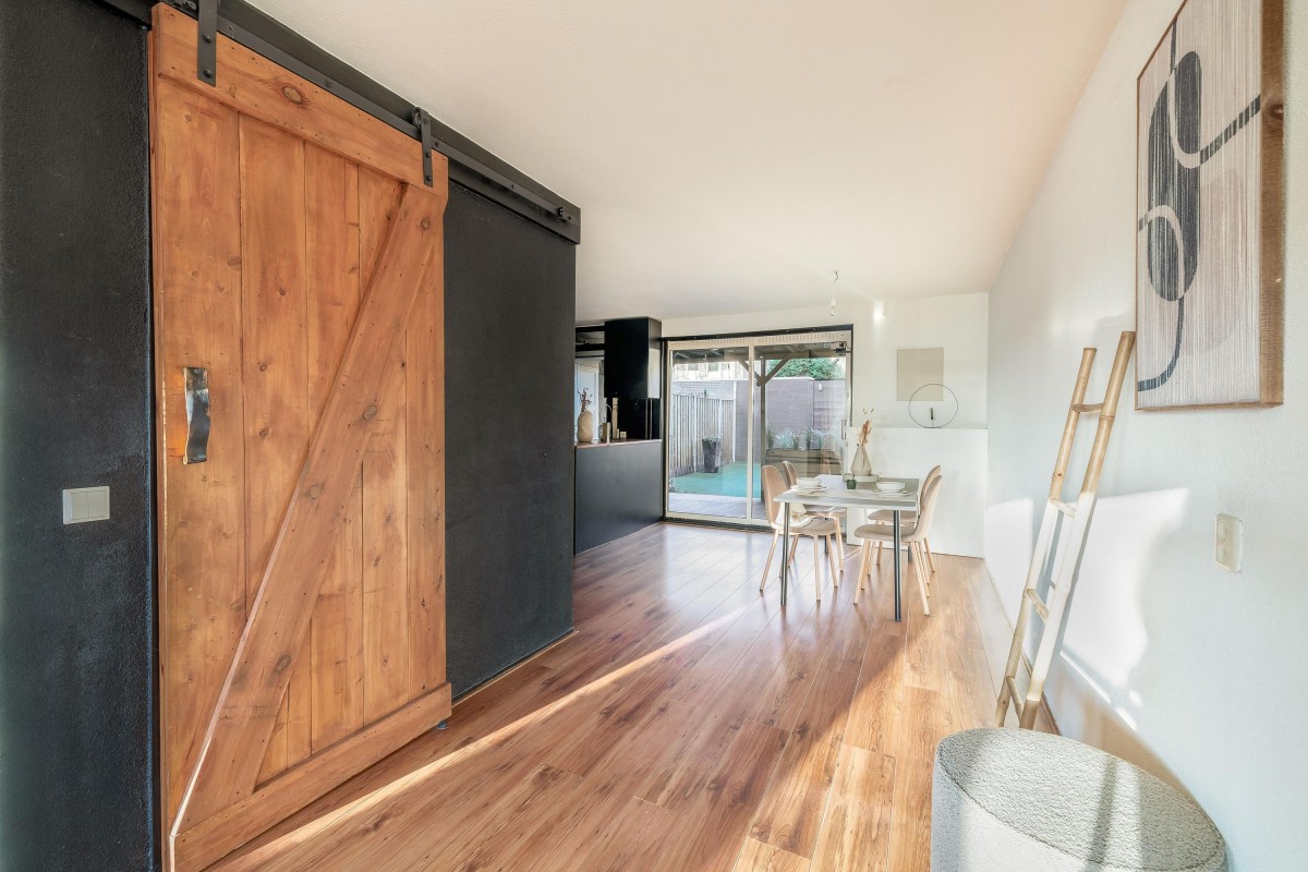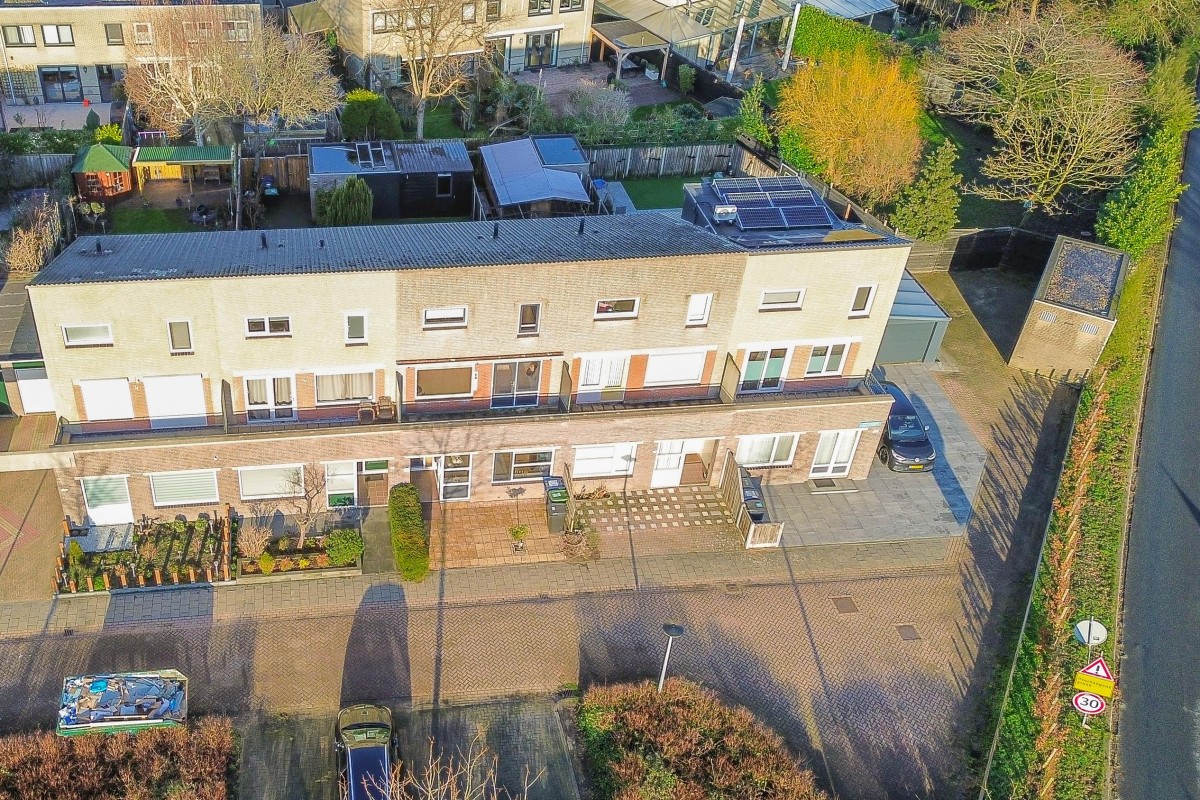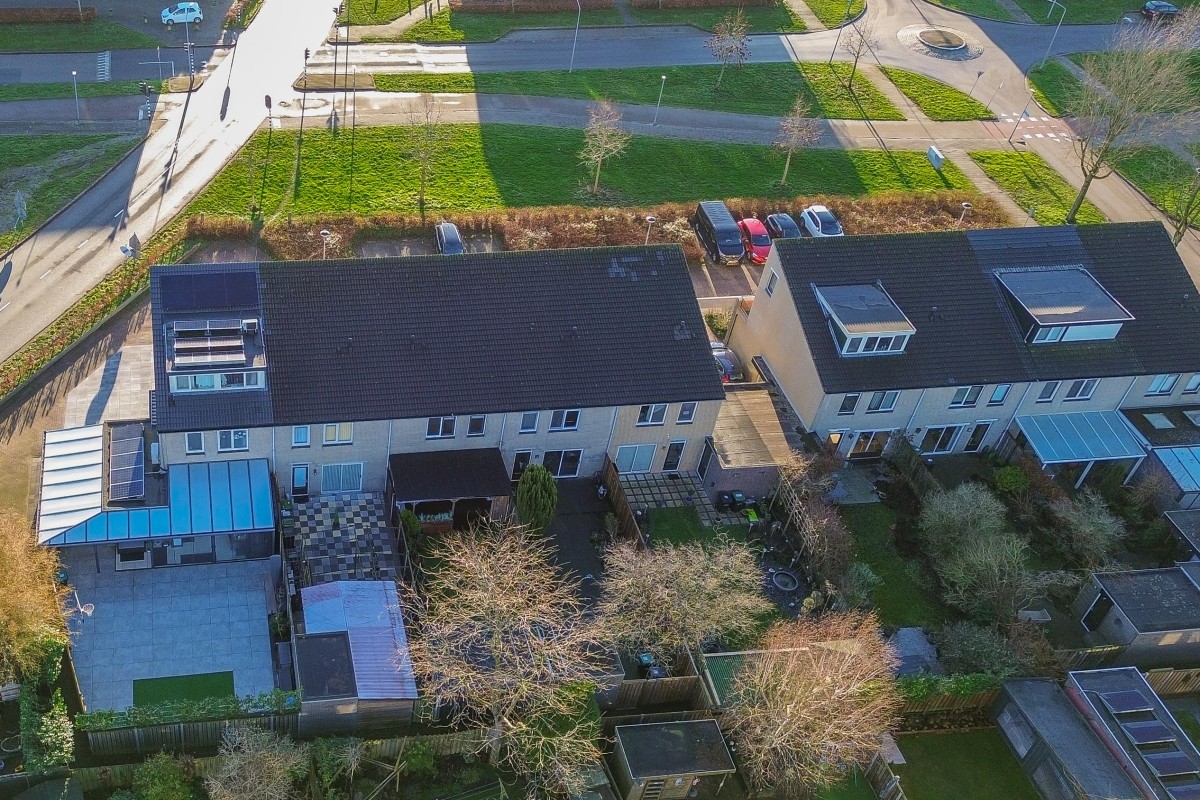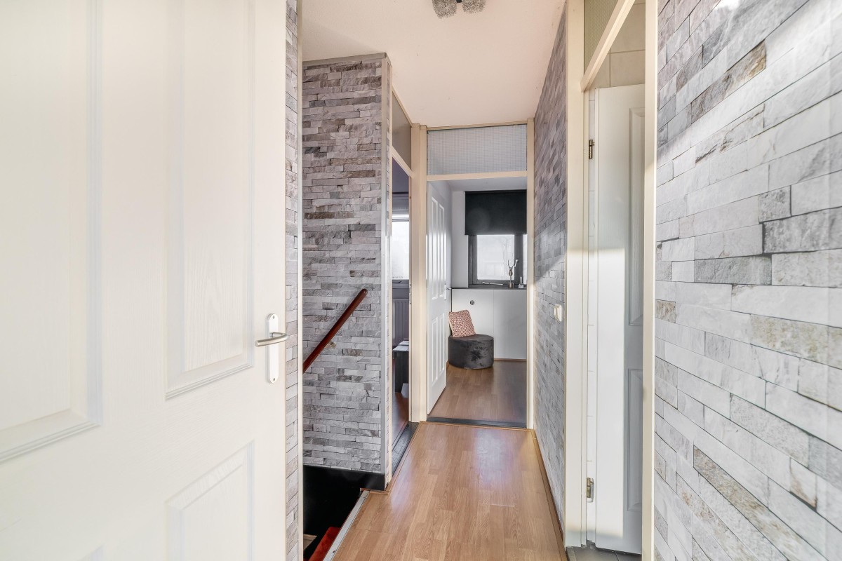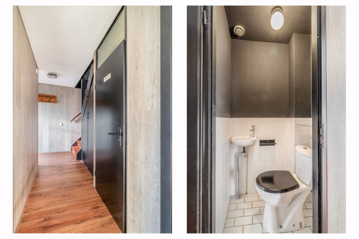 Entree, hal met handige kasten, toilet, trapopgang en deur naar de woonkamer. De doorzon woonkamer is heerlijk licht en biedt via de schuifpui aan de achterzijde toegang tot de tuin, waardoor binnen en buiten prachtig met elkaar verbonden zijn. De aangrenzende keuken is in een hoekopstelling en voorzien van diverse inbouwapparatuur. Hier bevindt zich ook een extra deur naar de achtertuin.