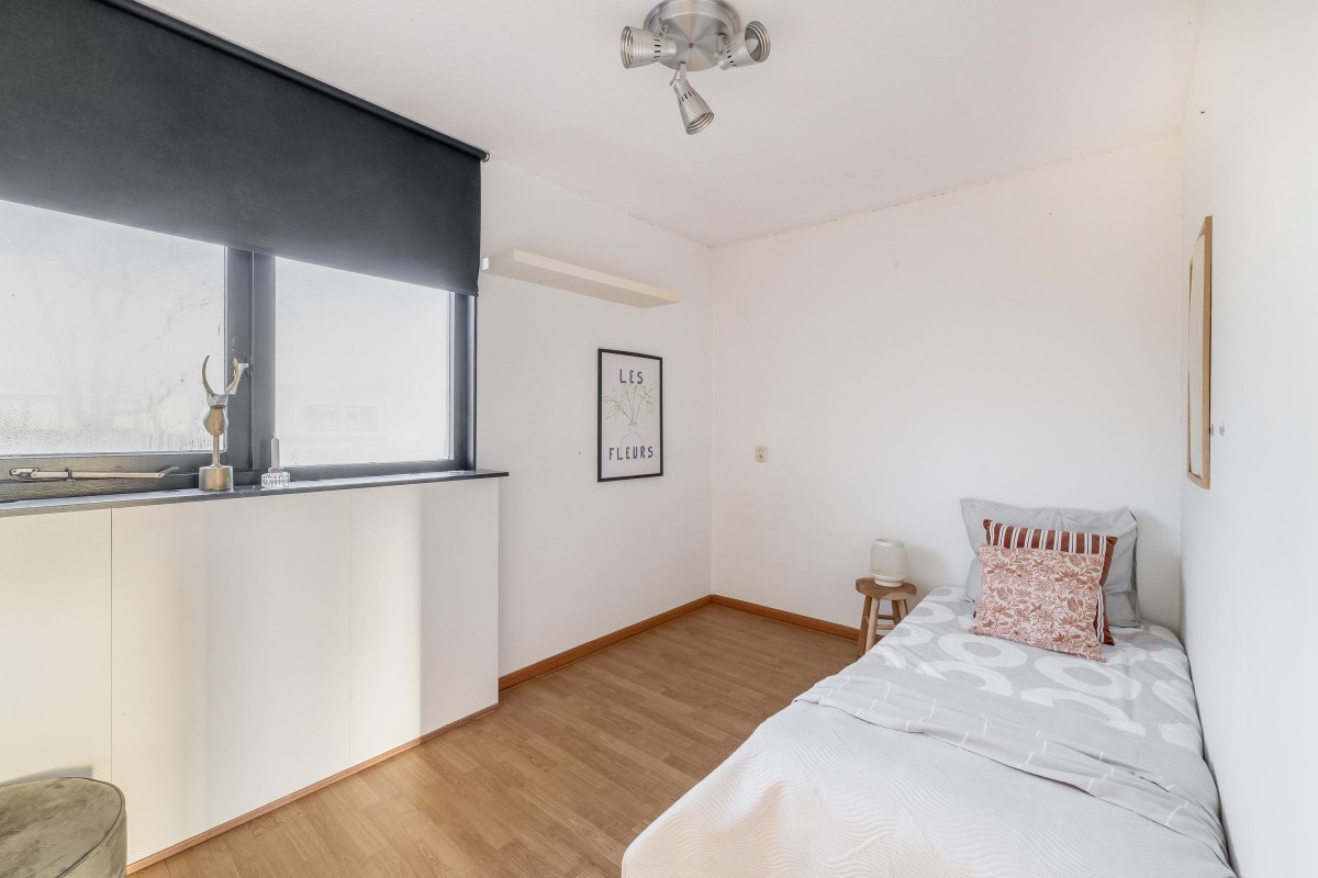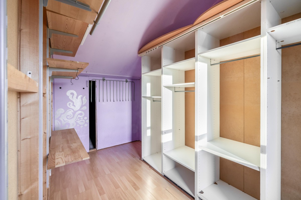 Op deze verdieping bevindt zich de 4e slaapkamer, met een inloopkast en verrassend veel bergruimte onder het schuine dak. Het lessenaarsdak leent zich bij uitstek voor het plaatsen van een dakkapel, waarmee je met gemak 15 m² extra woonoppervlak kunt creëren!