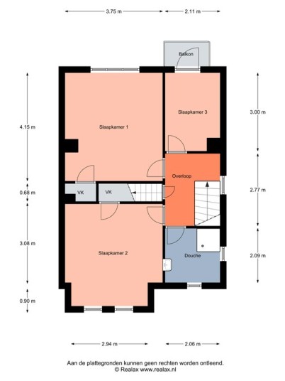 1e Verdieping: overloop, drie slaapkamers met vaste kasten en een badkamer voorzien van een douche en wastafel;