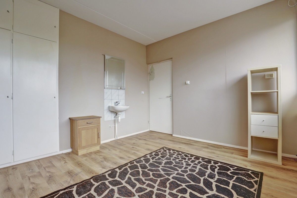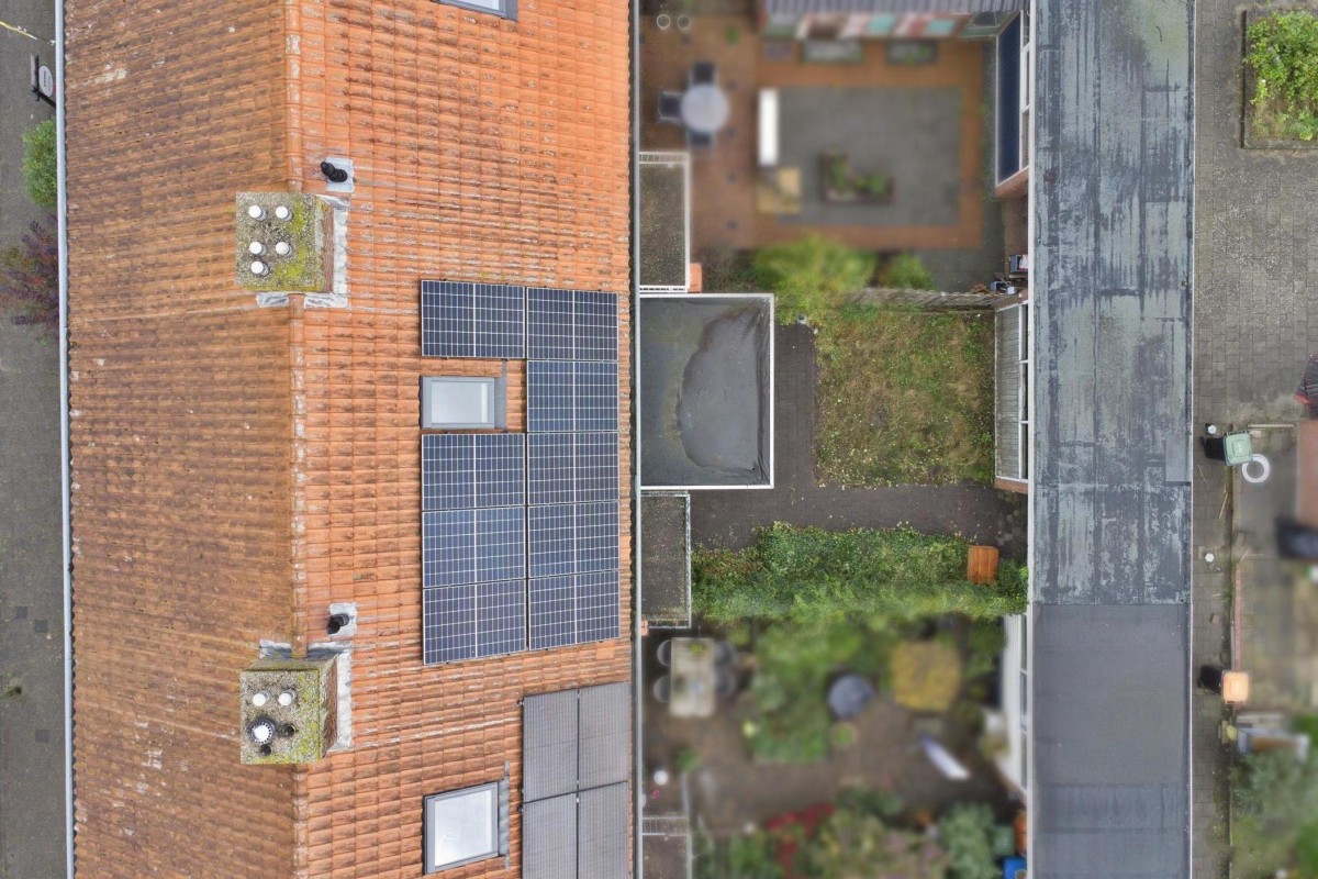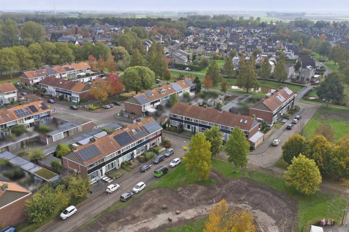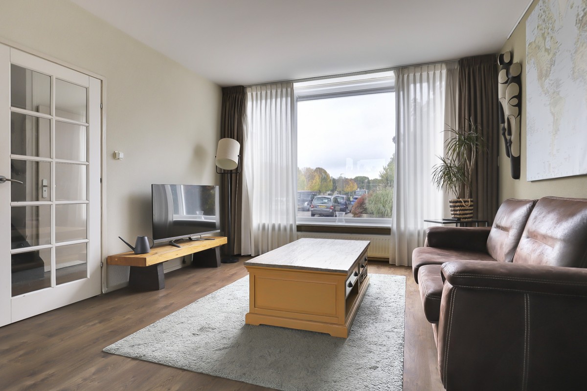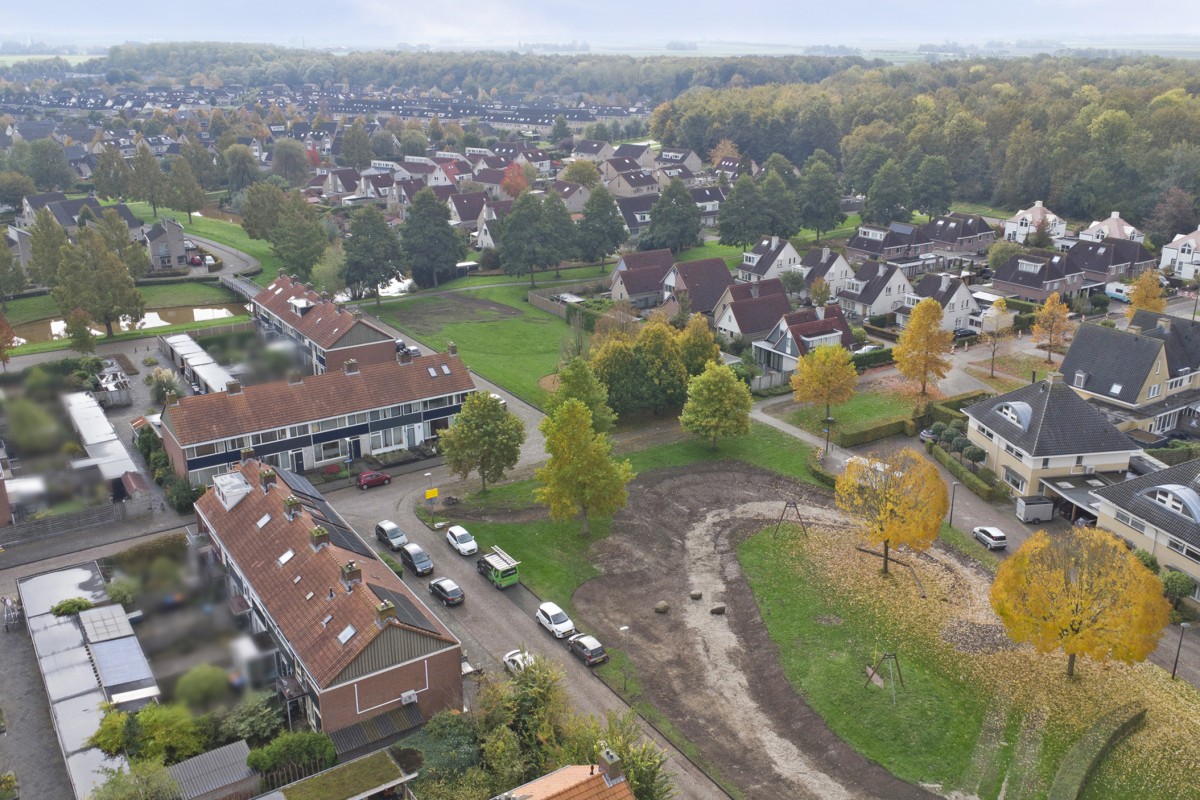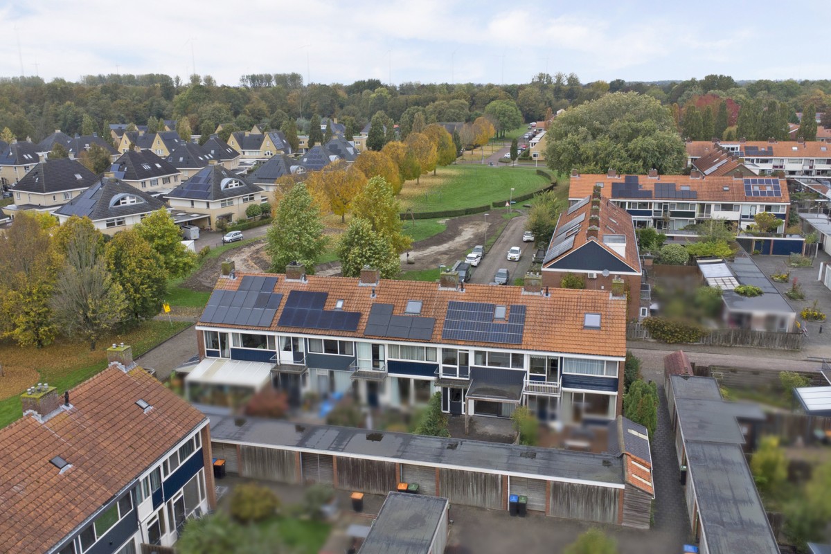 Begane grond: Entree/hal met trapkast, meterkast, toiletruimte met zwevend toilet met fonteintje in lichte kleurstelling, trapkast als provisieruimte, zeer ruime doorzon-woonkamer met laminaatvloer, zithoek aan de voorzijde met vrij uitzicht over groen, ruime eethoek aan de achterzijde met loopdeur naar de tuin. De keuken is voorzien van een ingebouwde gaskookplaat, vlakscherm afzuigkap, koelkast, vriezer, combimagnetron en vaatwasser, deur naar de achtertuin. De op het zuidoosten gelegen achtertuin is voorzien van een zonneterras, borders en zeer grote stenen berging met overkapping en achterom.