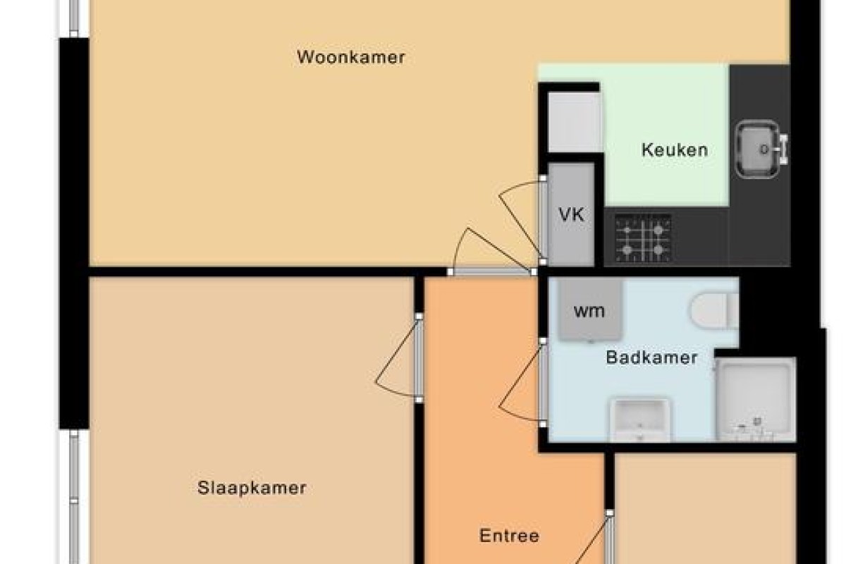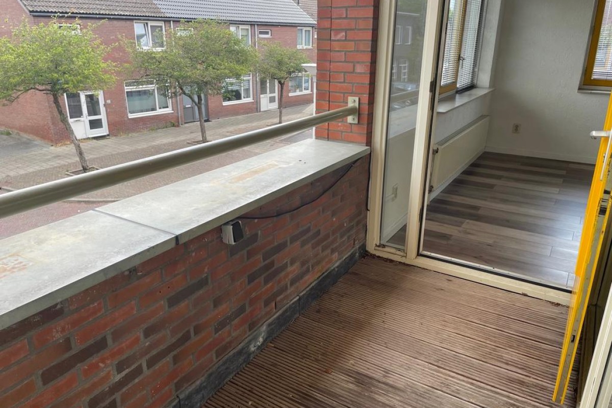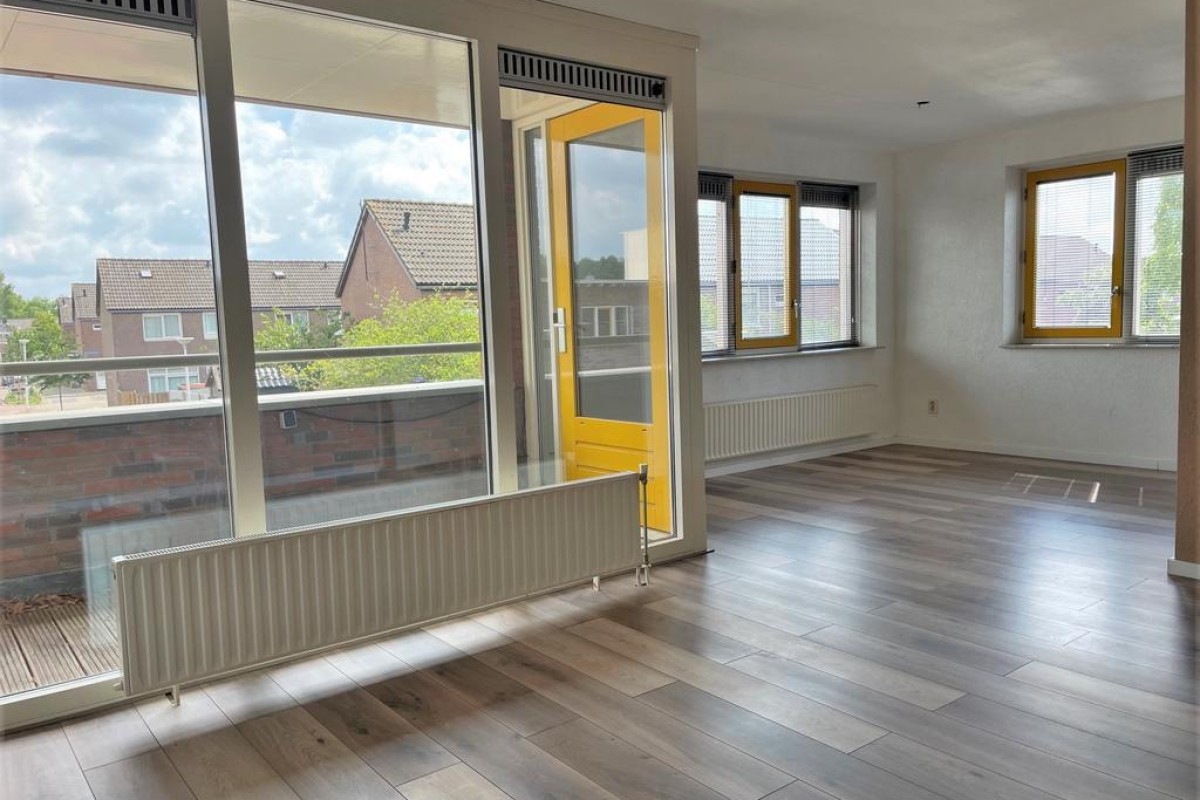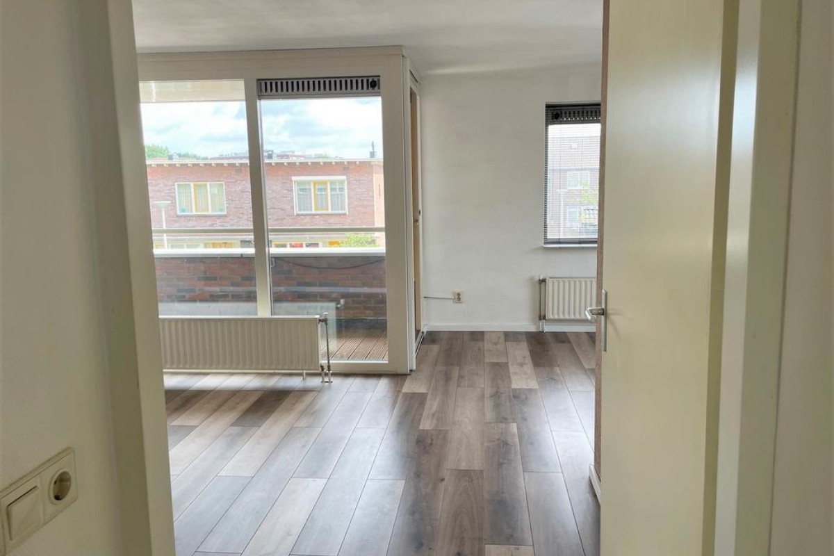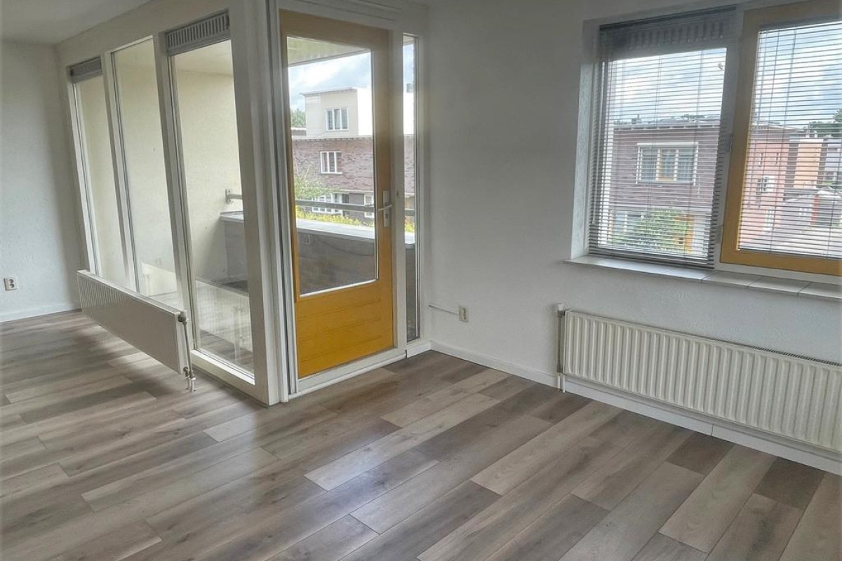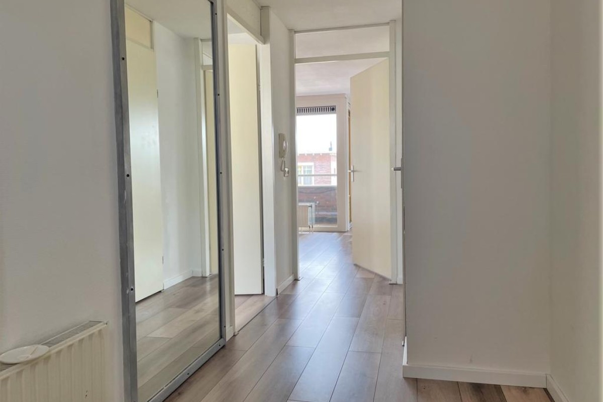 Een praktische provisiekast scheidt de woonkamer van de keuken, hierdoor behoudt de woning de openheid en ontstaan er toch ‘aparte’ ruimtes. De keuken is opgesteld in L-vorm en voorzien van inbouwapparatuu. Het balkon grenst aan de woonkamer en ligt op het noordoosten.