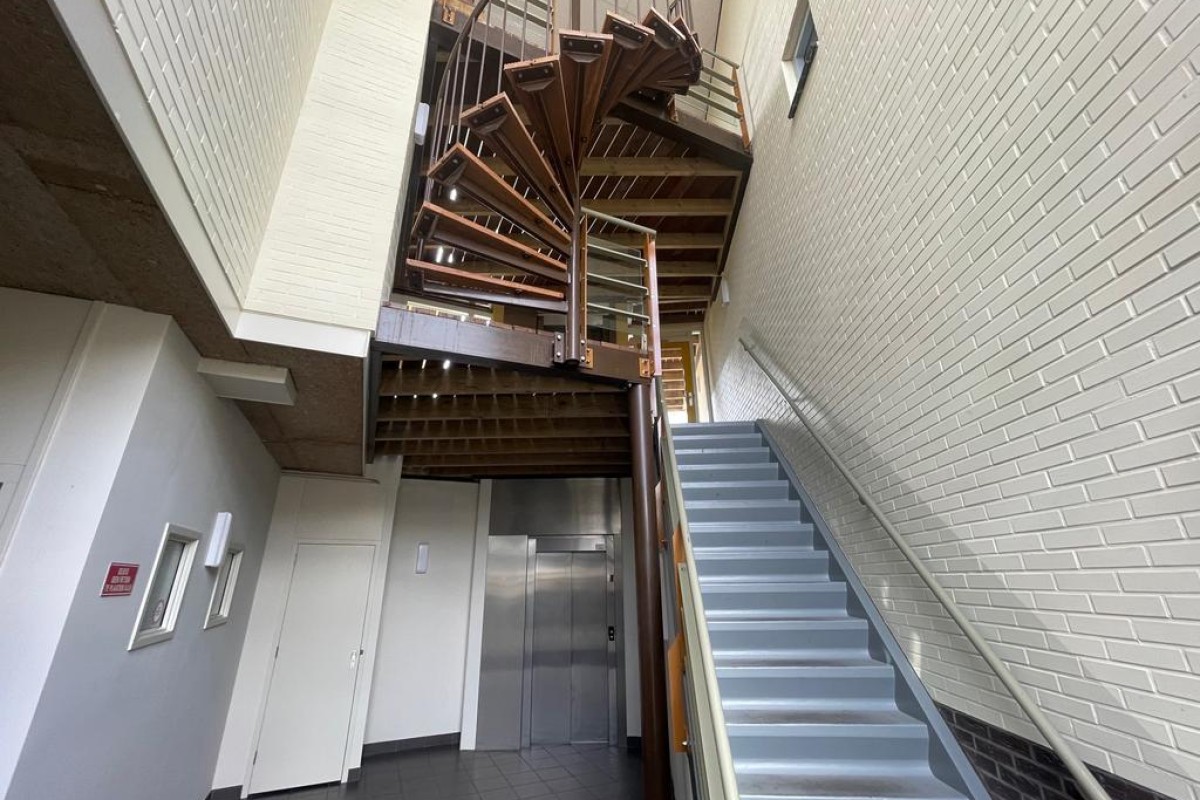 De woning is gelegen op de eerste etage van een complex dat stamt uit 2001. Vanuit de centrale hal met brievenbussen en intercom kunt u zowel via de lift als het trappenhuis naar het appartement.