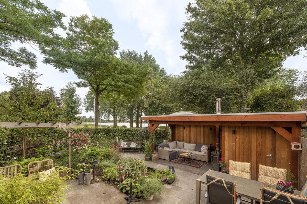 AAN HET WATER GELEGEN - EEN HEERLIJKE EN FRAAI AFGEWERKTE, ROYALE EENGEZINSWONING MET EEN AANGEBOUWDE GARAGE, EEN PRACHTIG AANGELEGDE TUIN MET HOUTEN OVERKAPPING