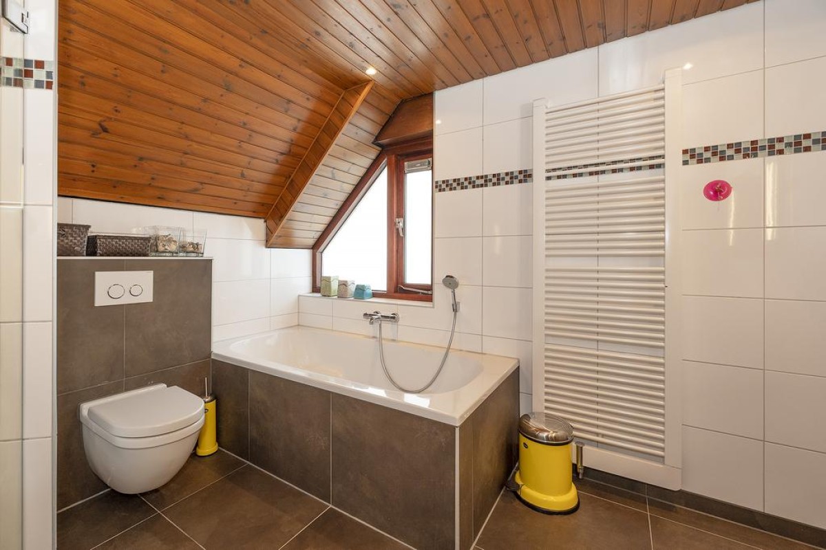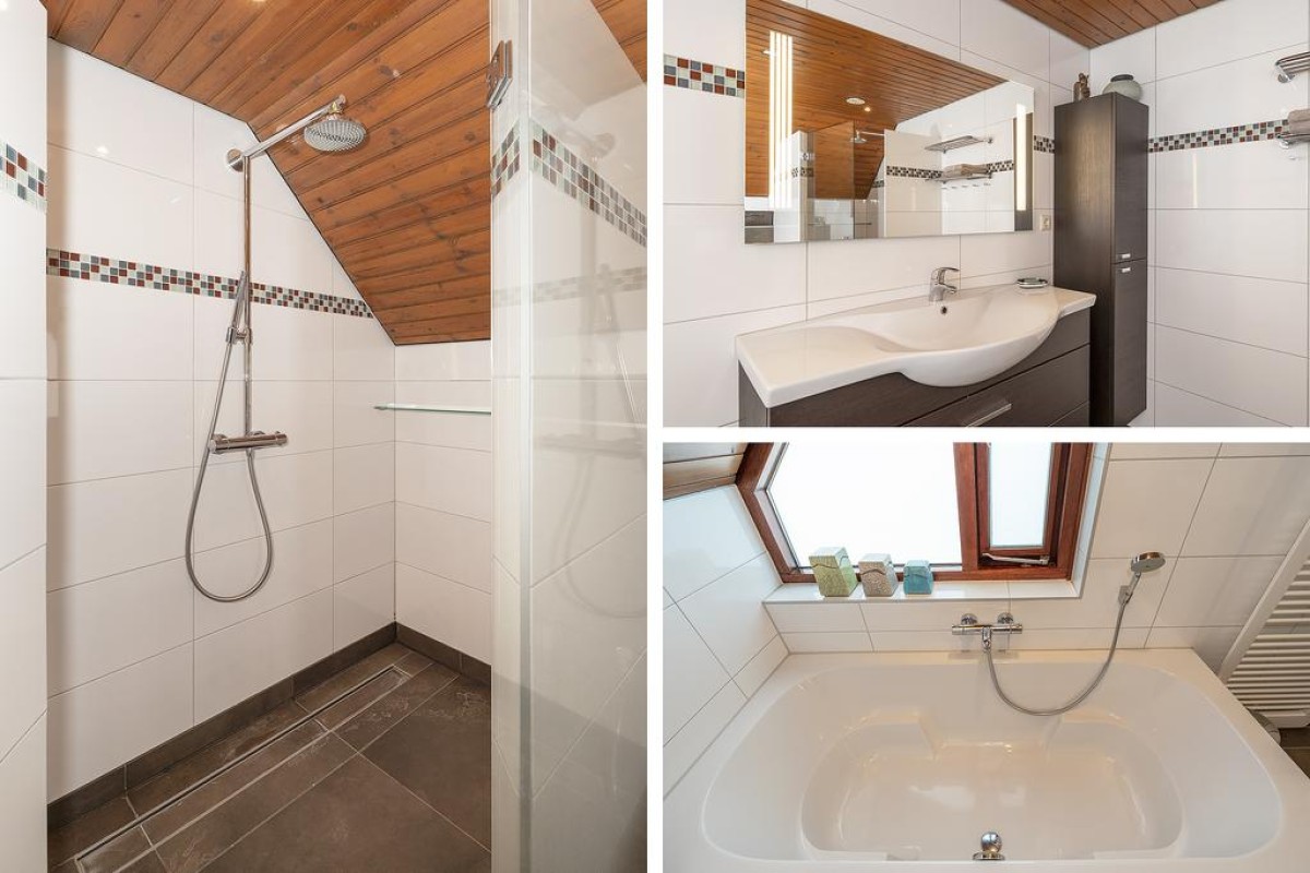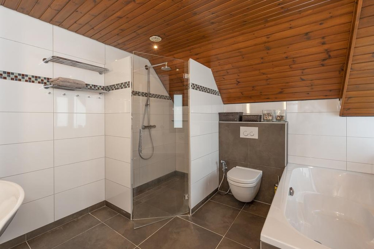 Overloop met toegang tot 3 slaapkamers en de royale badkamer. De slaapkamers aan de achterzijde beschikken over een dakkapel. De verrassend ruime badkamer van bijna 10 m2 is voorzien van: inloopdouche, vrij hangend toilet, ligbad en fraai badmeubel.
