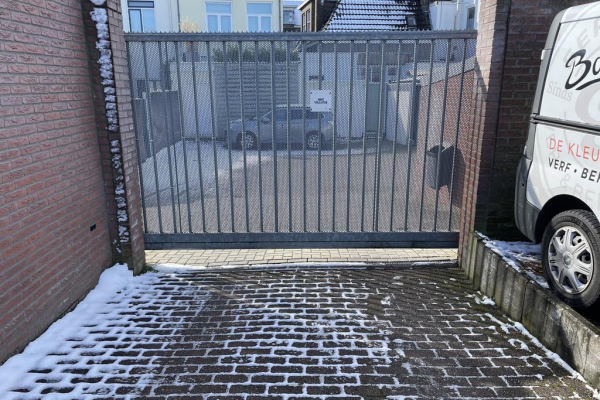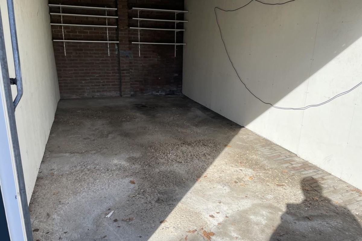 Afmeting van de box is 5,36 meter diep en 2,81 breed toegankelijk middels een stalen kanteldeur.