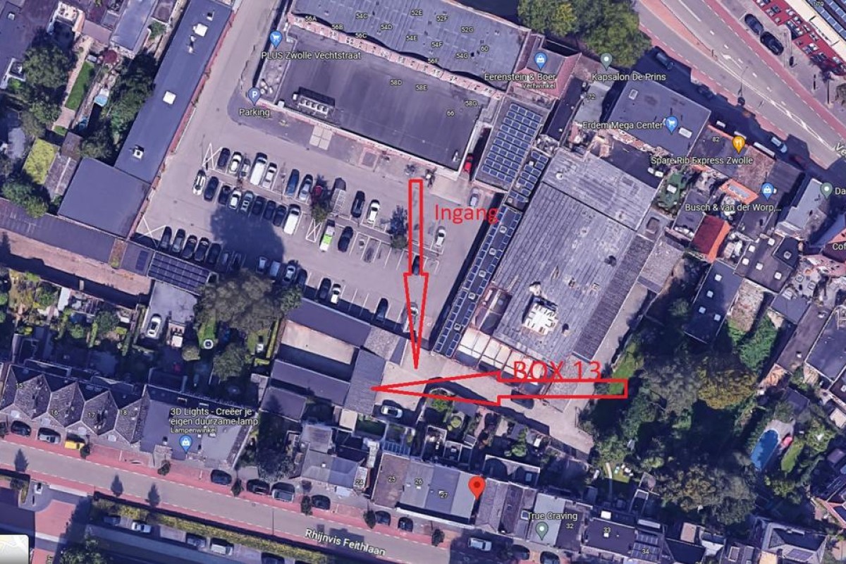 In het centrum van Zwolle, treft u op een afgesloten terrein deze garagebox welke is voorzien van elektra. DE garagebox draagt het adres Rhijnvis Feithlaan box 13 is toegankelijk middels een elektrisch hek welke is gesitueerd op de parkeerplaats van supermarkt Plus aan de vechtstraat.
