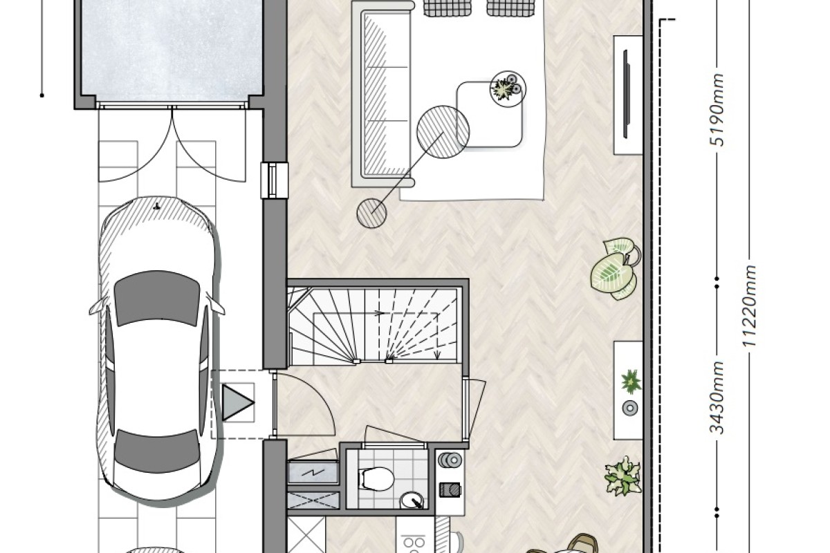 Let op: de koopsom van bouwnummer 95 is inclusief de meerwerkopties van een inpandige garage en een uitbouw van 1,20 m. Dit is een voorbeeldwoning – je kunt jouw ideale woning zelf samenstellen via het groeiconcept.