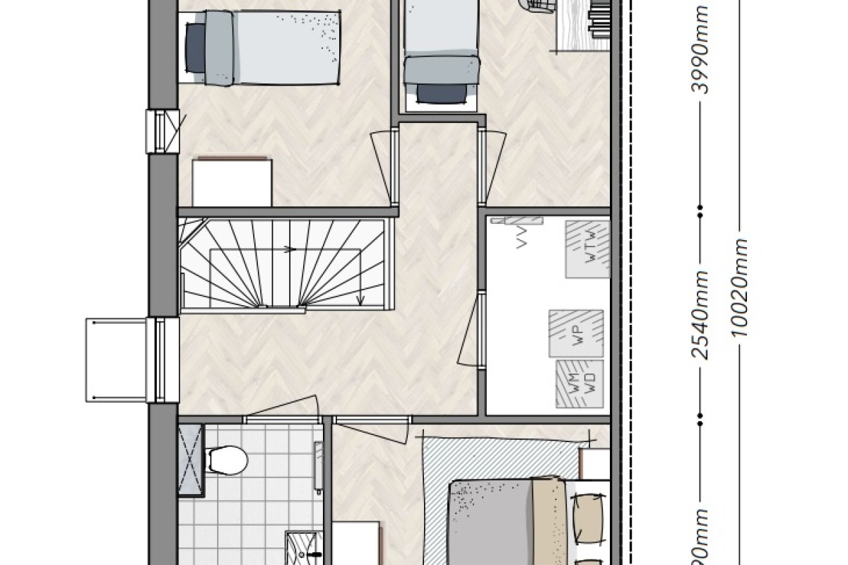 Net als in eerdere fasen van Duin & Water bepaal je bij het groeiconcept zelf hoe jouw woning eruit komt te zien. Wil je bijvoorbeeld een levensloopgeschikte aanbouw, een extra woonlaag of een dakterras? Het kan allemaal. Bouwnummer 95 laat zien hoe een woning eruit kan zien met een aantal populaire uitbreidingen, maar je kunt jouw eigen uitvoering helemaal samenstellen.