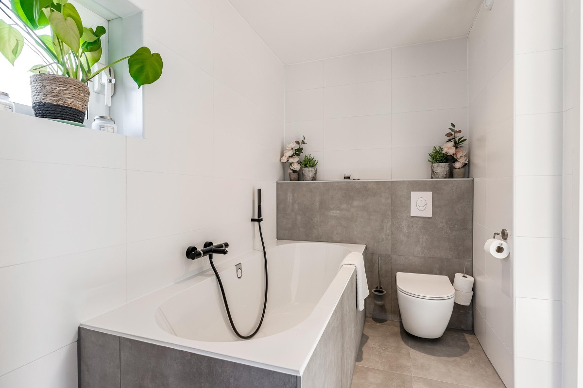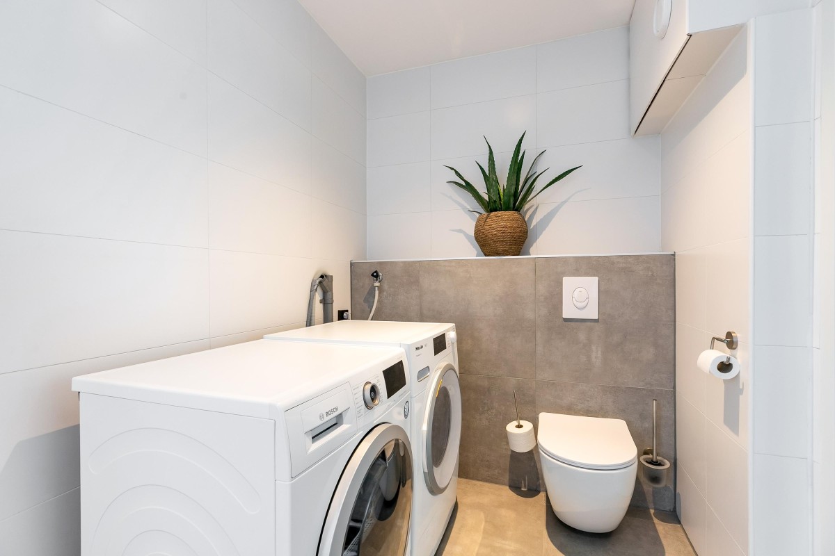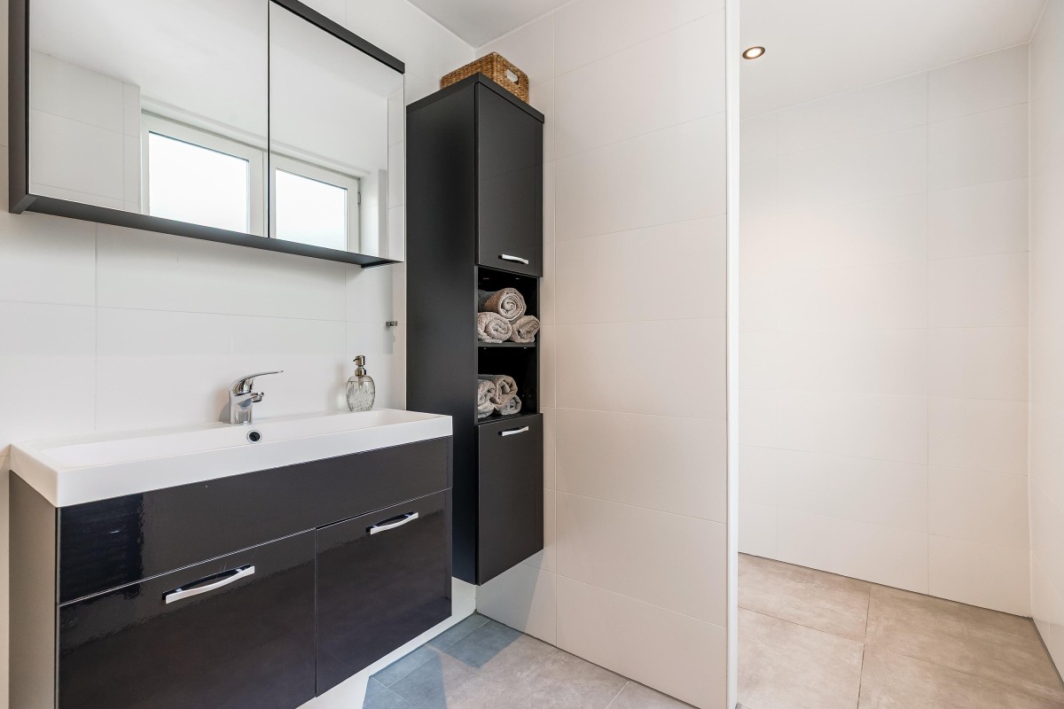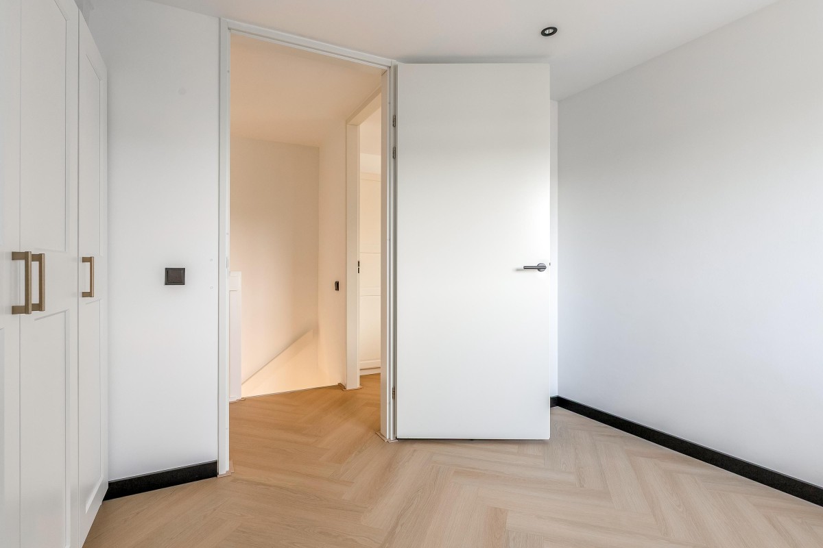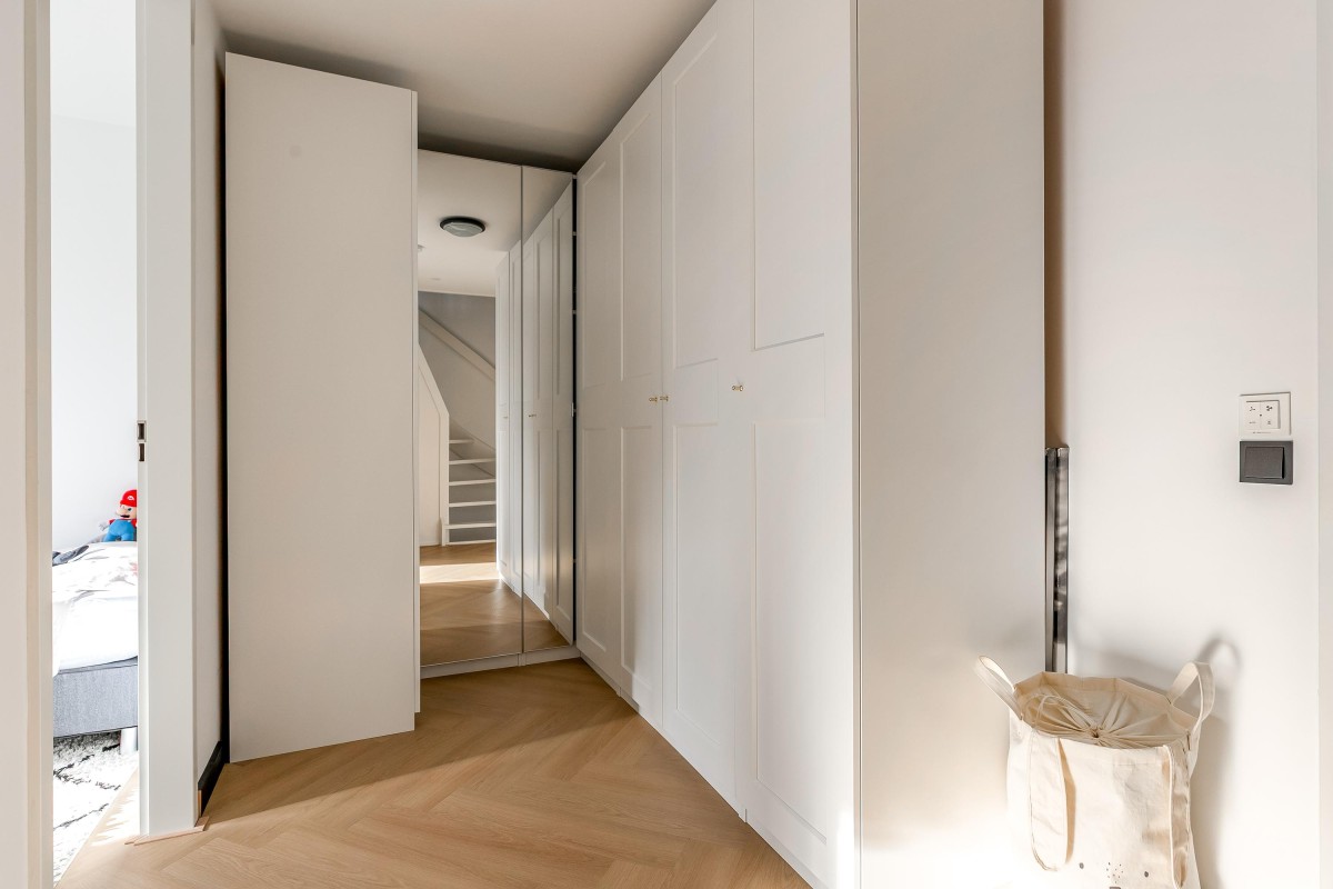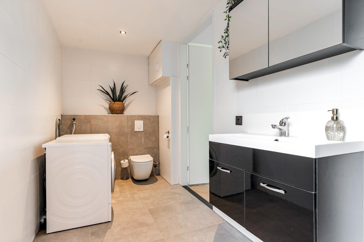 De riante hoofdslaapkamer biedt volop ruimte voor een groot bed, een kastenwand én een tv-meubel. De vierde kamer is nu in gebruik als kleedkamer, maar kan ook prima dienen als slaapkamer, kantoor/werk of hobbyruimte. Aan de voorzijde bevindt zich de tweede badkamer, voorzien van een inloopdouche, wastafelmeubel, toilet en de aansluitingen voor wasmachine en droger.