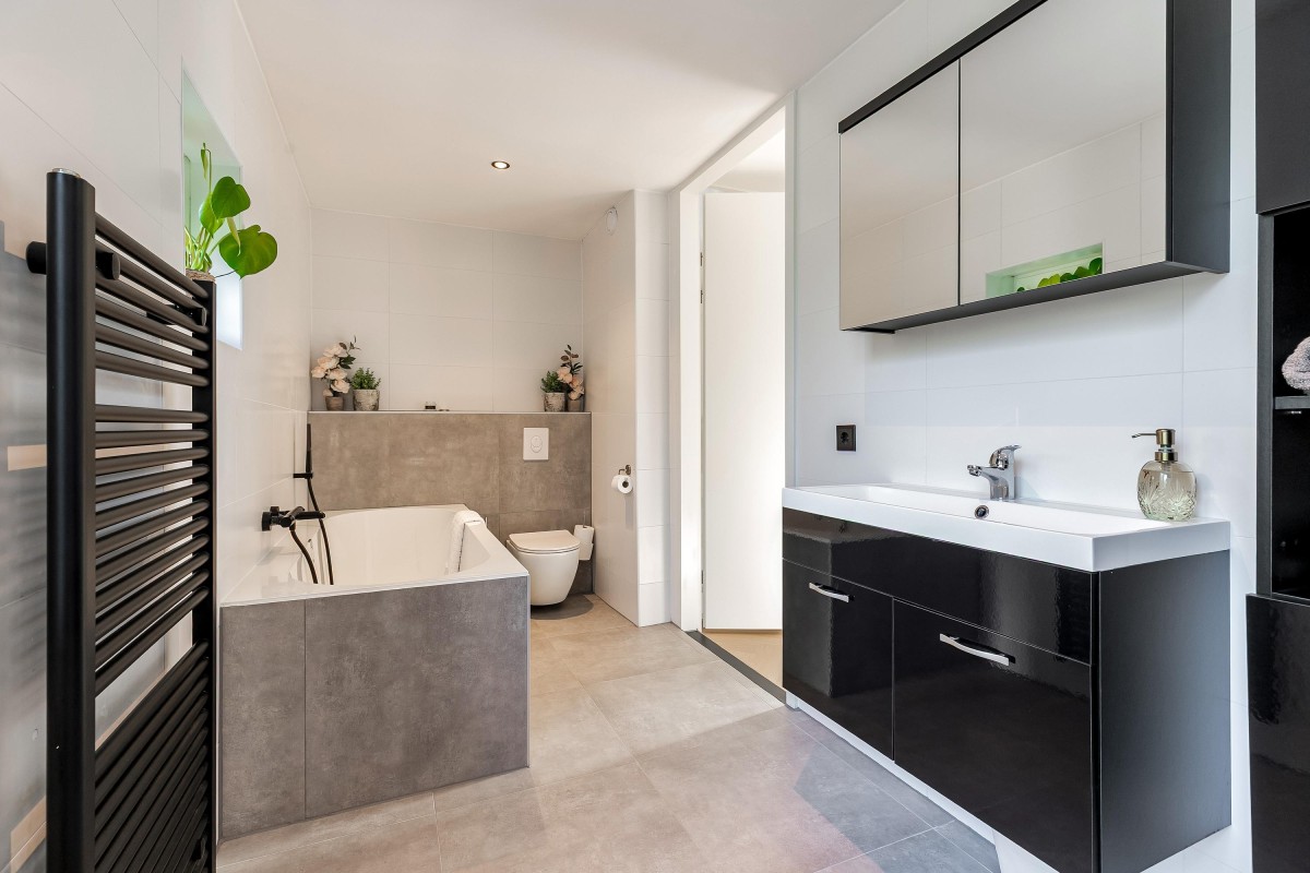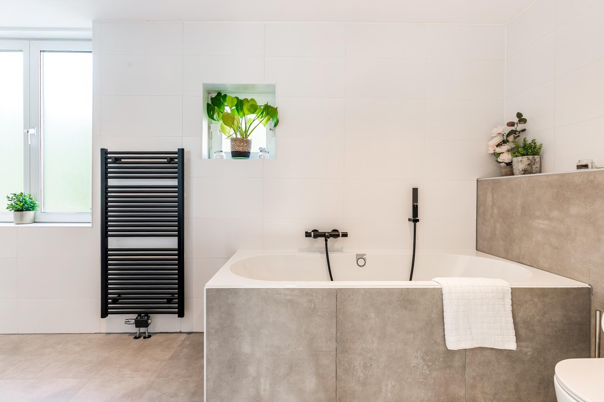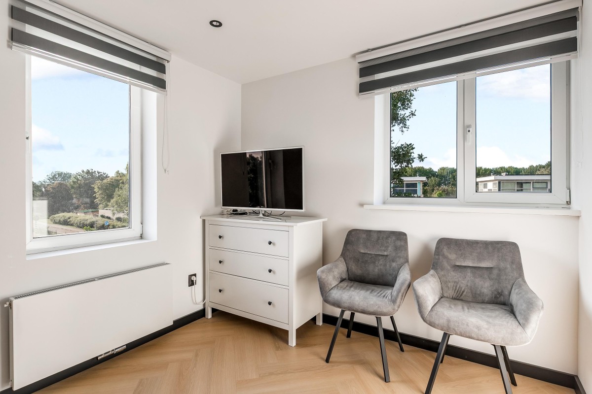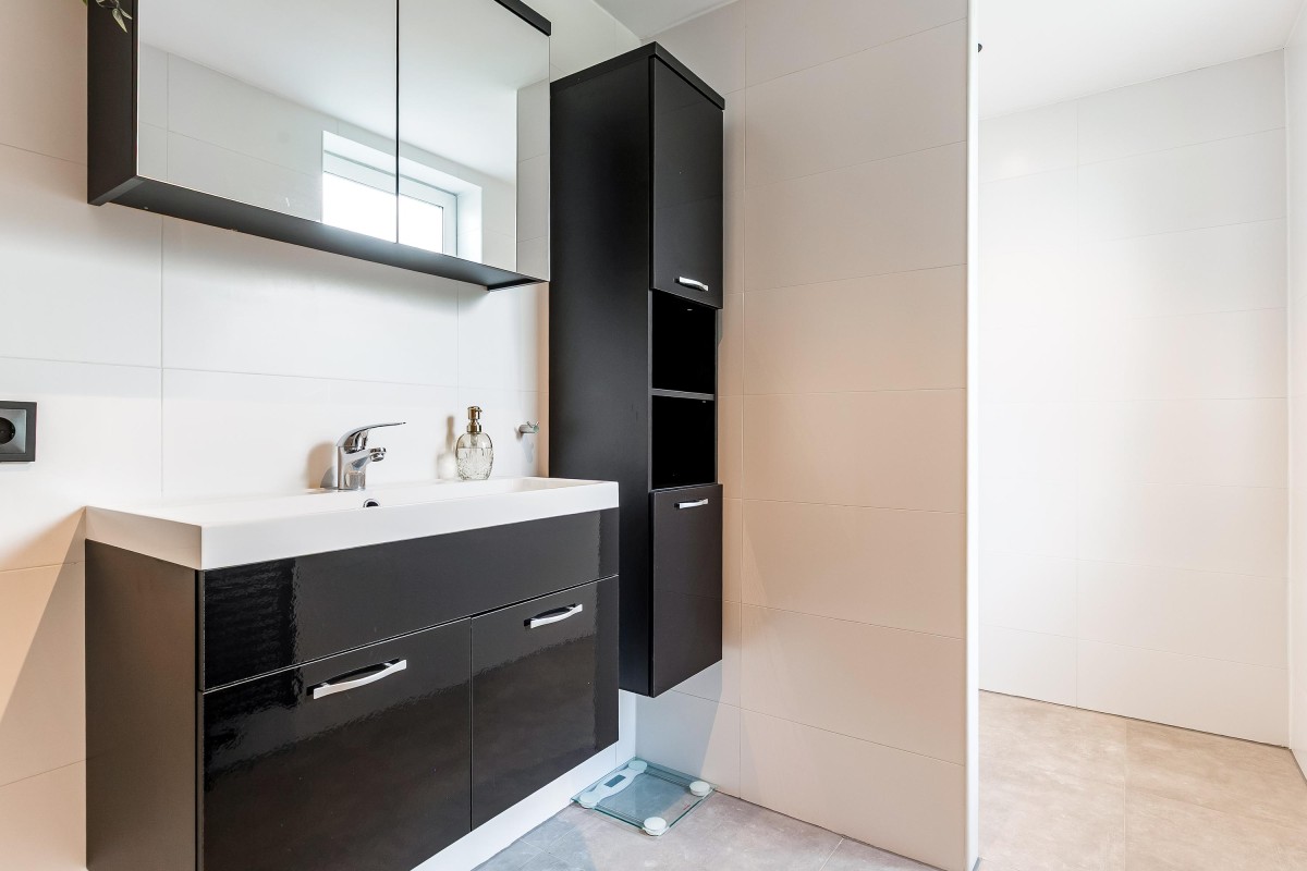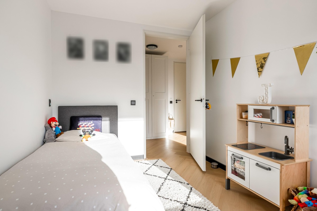 De riante hoofdslaapkamer biedt volop ruimte voor een groot bed, een kastenwand én een tv-meubel. De vierde kamer is nu in gebruik als kleedkamer, maar kan ook prima dienen als slaapkamer, kantoor/werk of hobbyruimte. Aan de voorzijde bevindt zich de tweede badkamer, voorzien van een inloopdouche, wastafelmeubel, toilet en de aansluitingen voor wasmachine en droger.