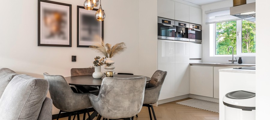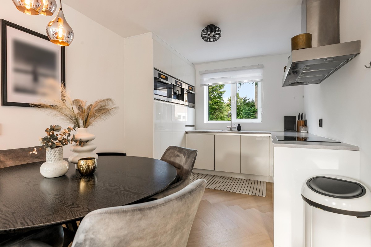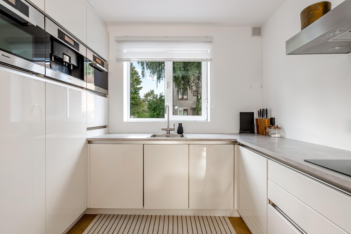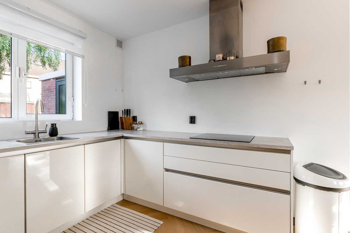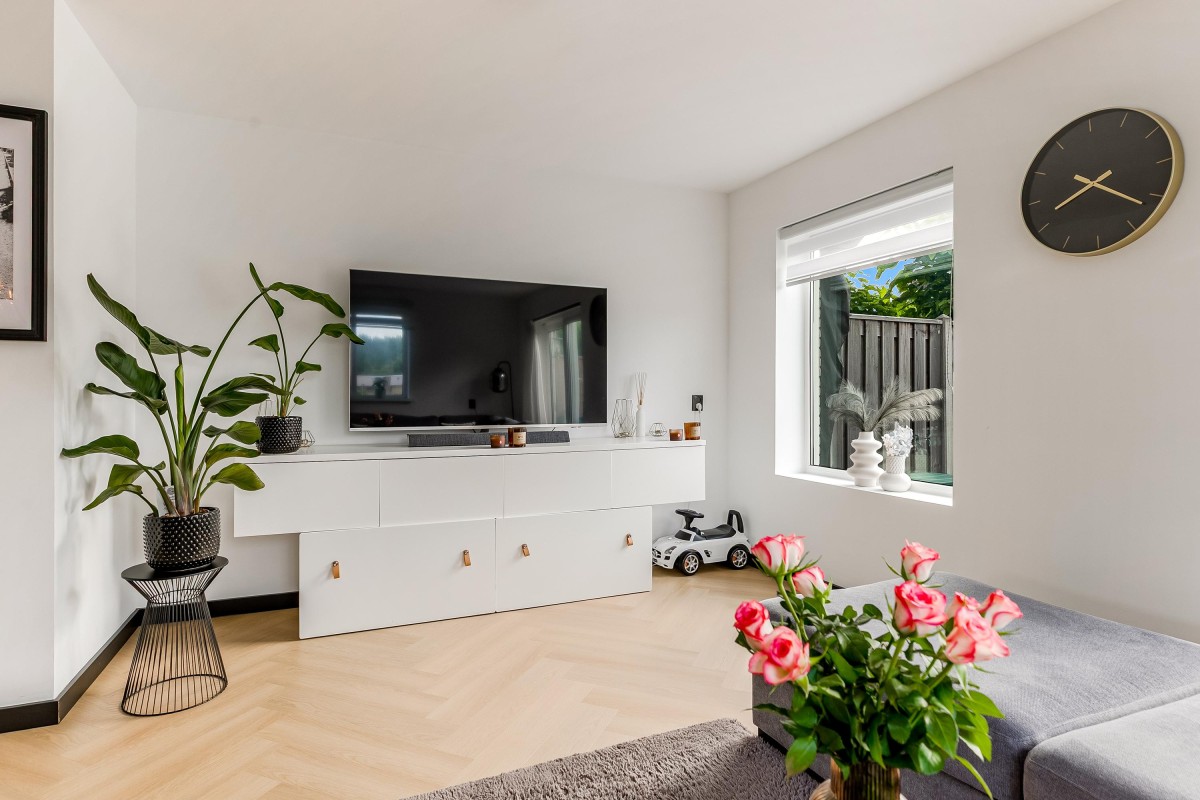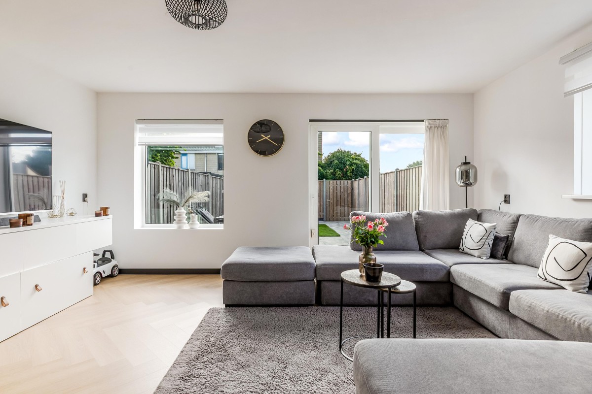 Via de entree met hal, toilet met fonteintje, meterkast en trapopgang betreedt u de lichte woonkamer. De tuingerichte woonkamer is een heerlijke plek om samen te komen. Grote raampartijen en een moderne schuifpui zorgen voor een overvloed aan daglicht en een directe verbinding met de zonnige achtertuin. De strakke wanden en de visgraat vloer met vloerverwarming geven het geheel een eigentijdse uitstraling. Aan de voorzijde bevindt zich de moderne open keuken, uitgevoerd met hoogwaardige inbouwapparatuur zoals een koel-vriescombinatie, kokend-waterkraan, inductiekookplaat, vaatwasser, oven, magnetron en zelfs een ingebouwd koffiezetapparaat. Ideaal voor de kookliefhebber!