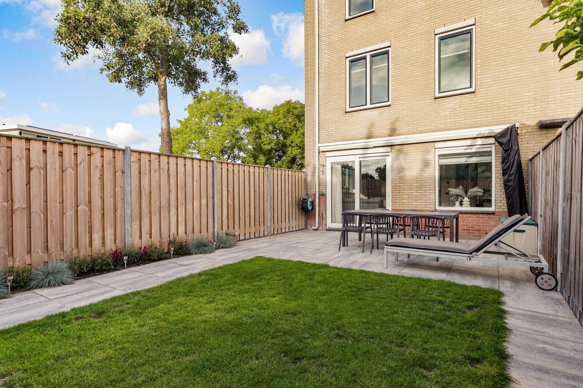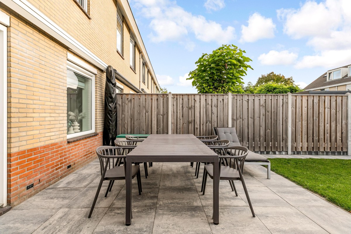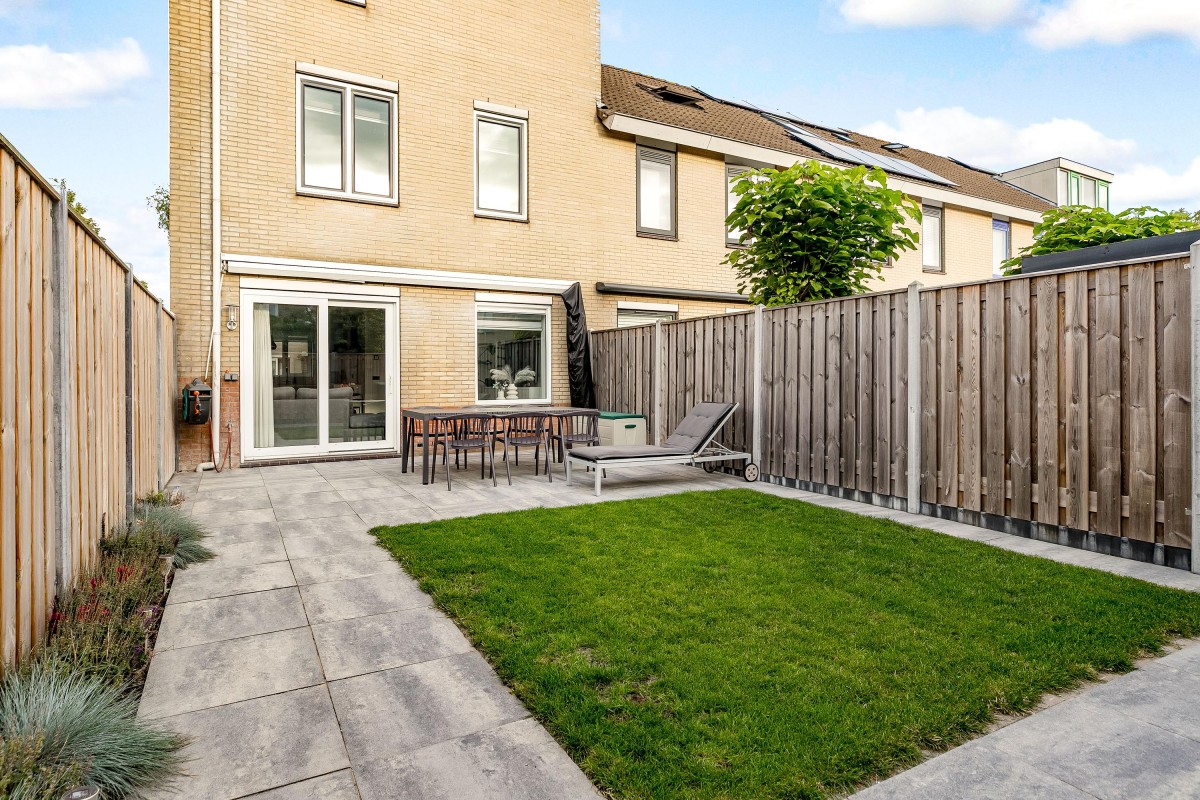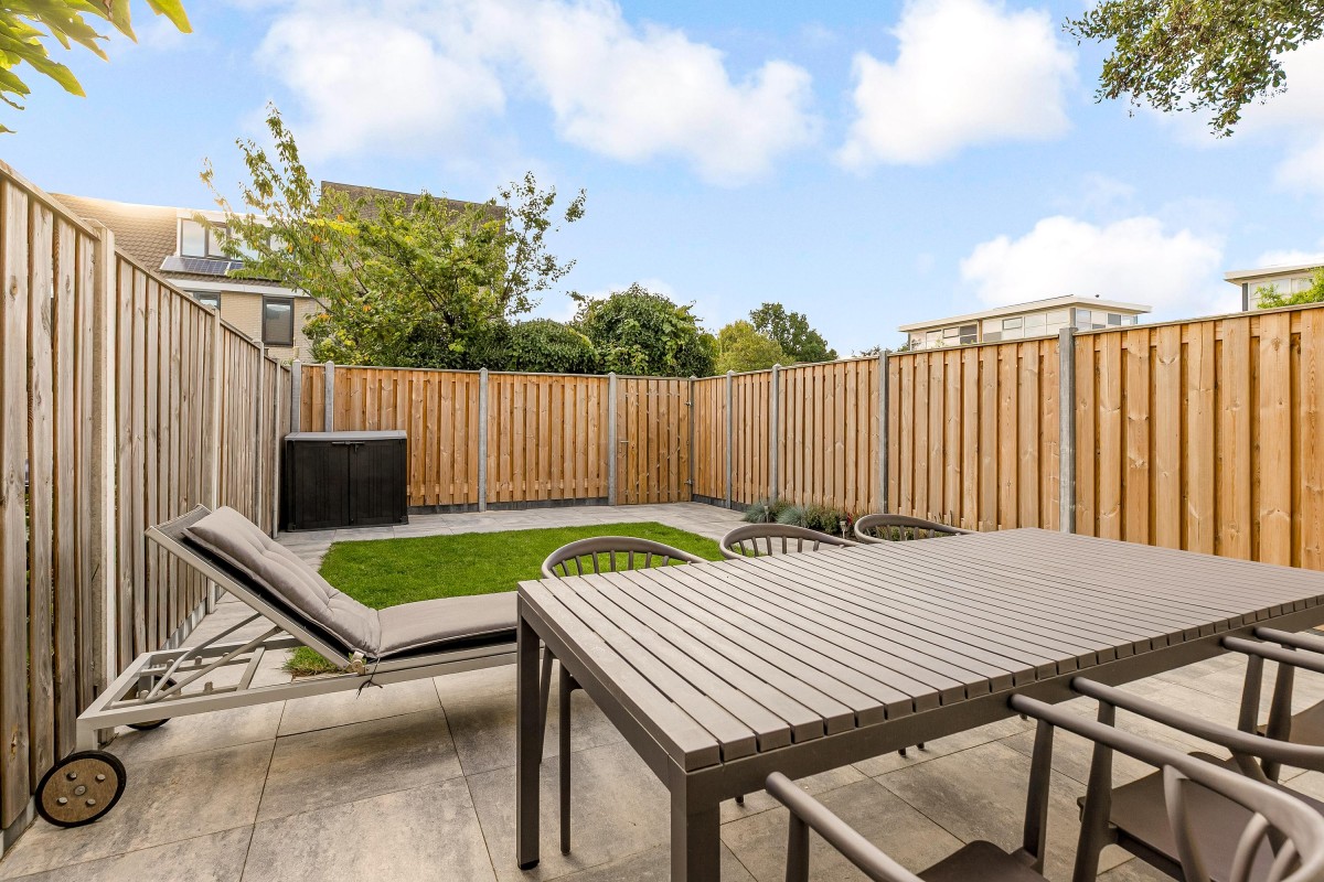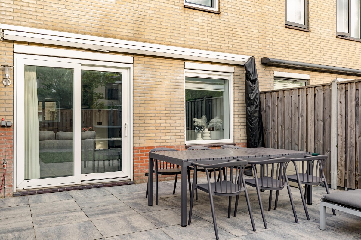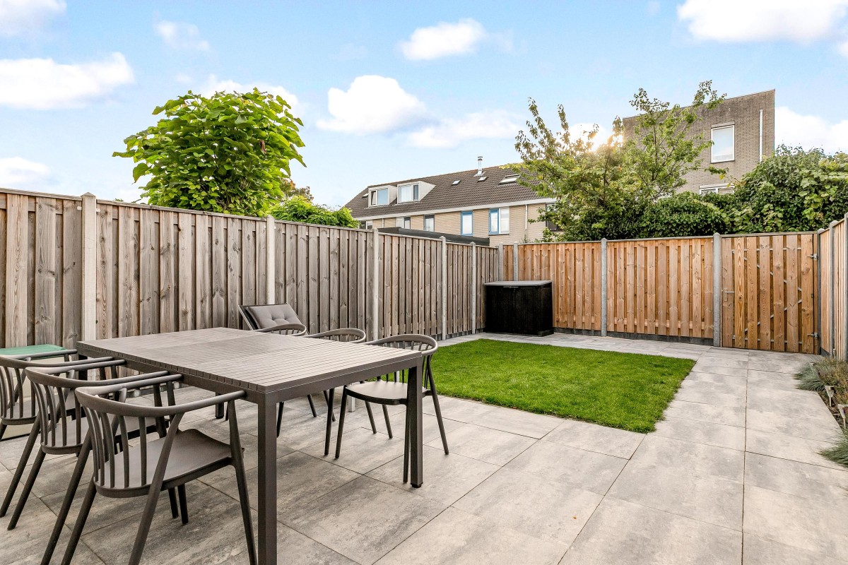 De achtertuin is in 2023 opnieuw aangelegd en onderhoudsvriendelijk ingericht met graszoden, betegeling en beplanting. Een heerlijke plek om te ontspannen, met een handige wateraansluiting en een stevige schutting die privacy en rust biedt. Aan de voorzijde bevindt zich nog een berging die zich perfect leent voor het opslaan van uw spullen of het parkeren van uw fiets.