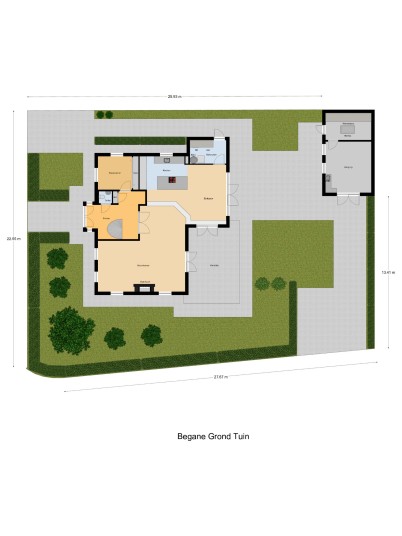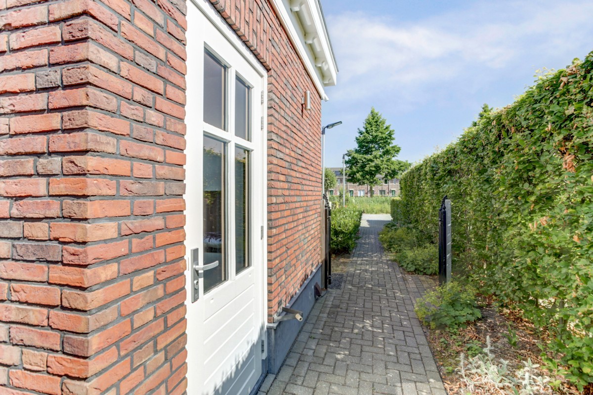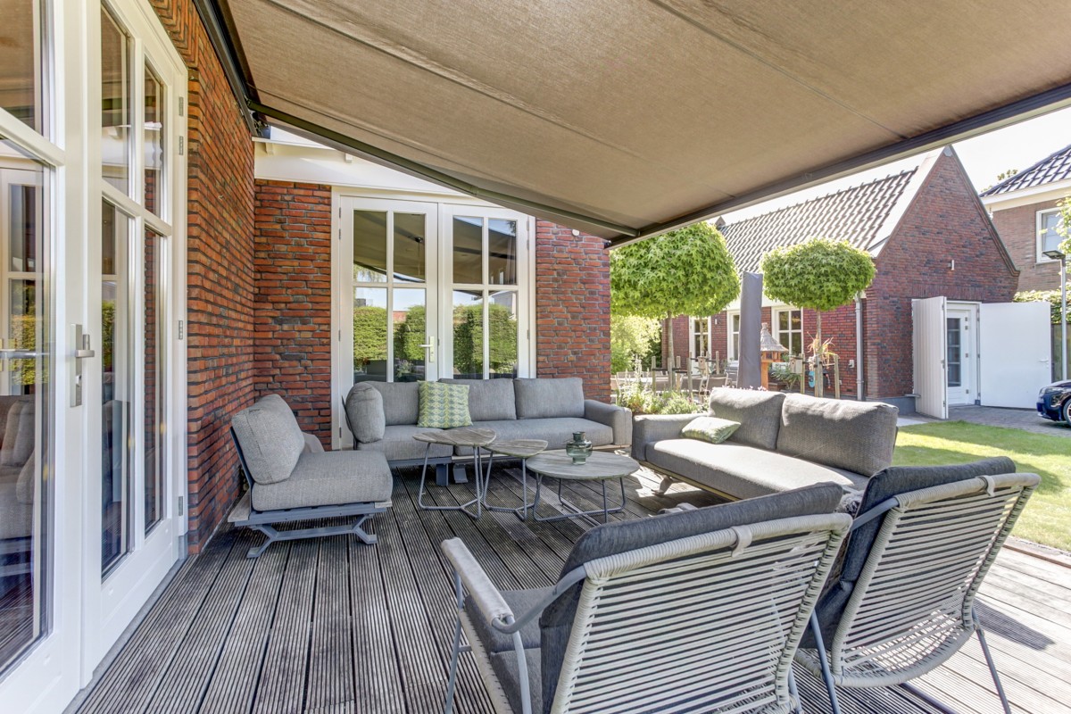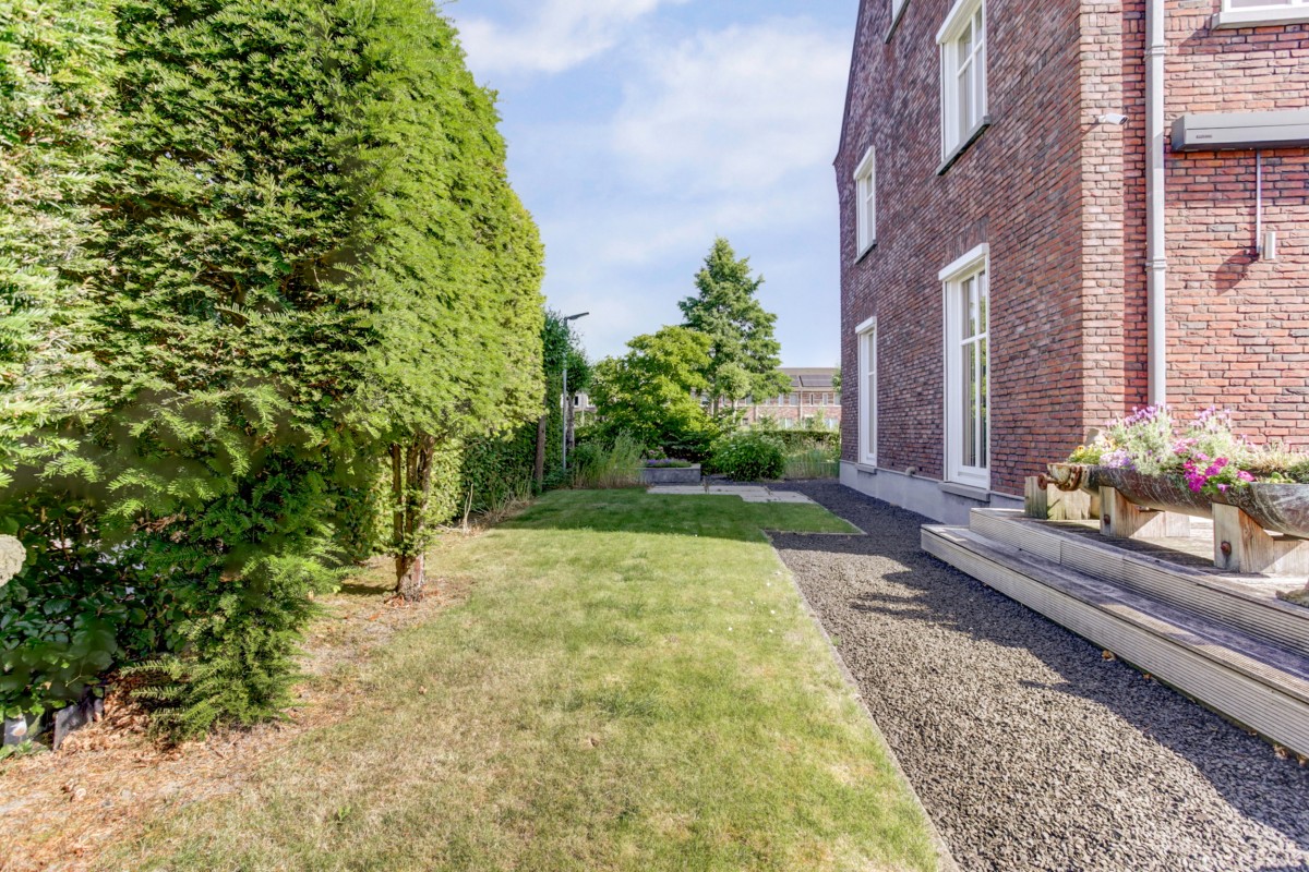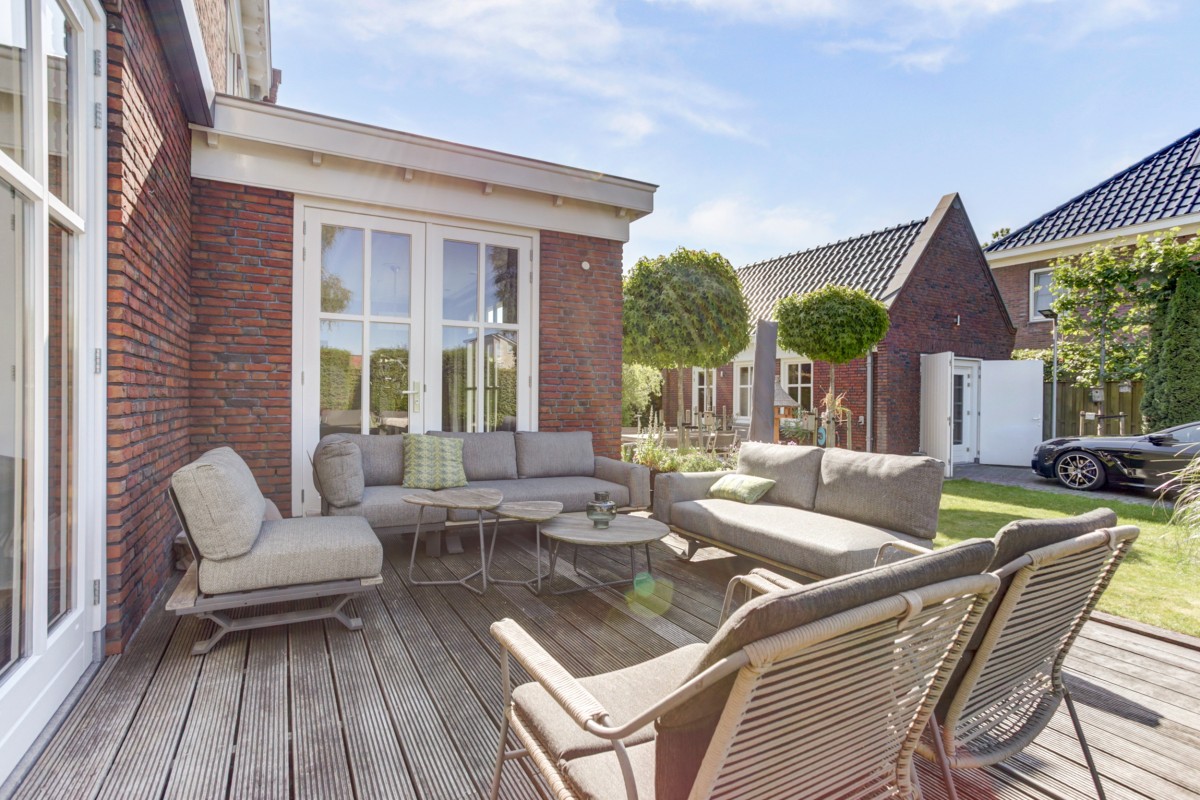 De tuin is rondom de woning gelegen waarbij de achtertuin op het zuiden gesitueerd is. De tuin biedt mede door de omheining veel privacy alsmede parkeergelegenheid en een vrijstaand stenen tuinhuis. Het tuinhuis is in de dezelfde stijl gebouwd als het woonhuis en ingericht als een atelier met openslaande tuindeuren, berging en bergzolder. Deze ruimte is volledig geïsoleerd, verwarmd en voorzien van een klassieke pantry. De tuin is tevens voorzien van grindkoffers met een dompelpomp ter voorbereiding op toenemende neerslag alsmede professionele beveiliging middels een camerasysteem en verlichting.