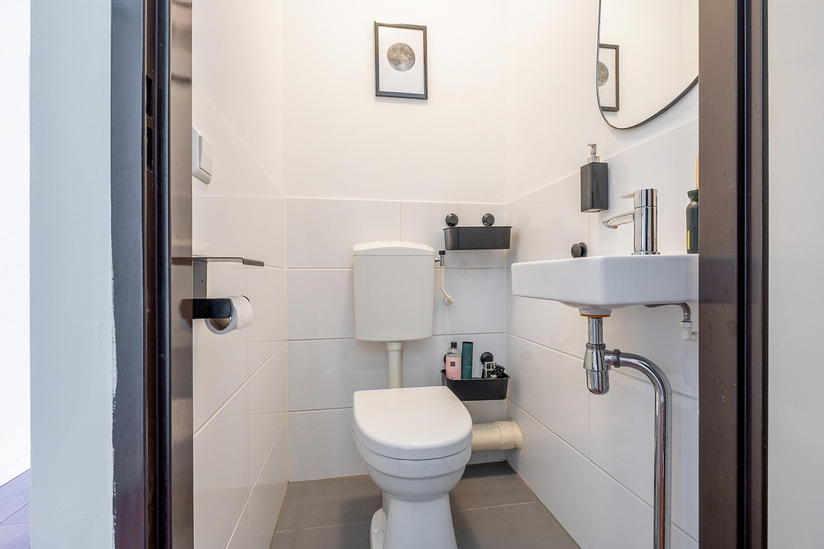 De badkamer is praktisch ingedeeld en beschikt over een douche, wastafel en aansluitingen voor een wasmachine en een droger. Er is een apart toilet in de hal en de woning heeft natuurlijke ventilatie.