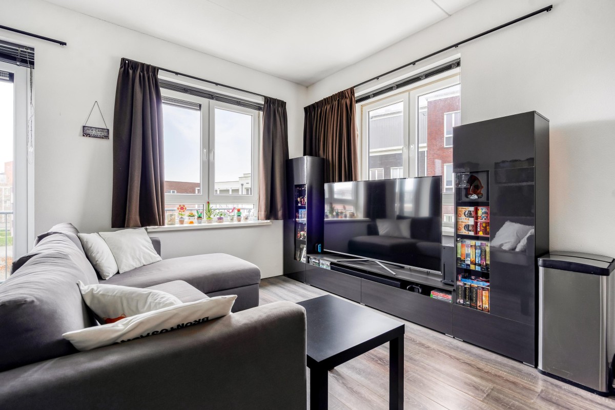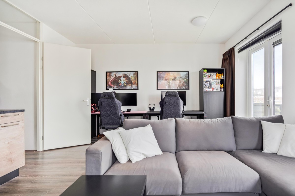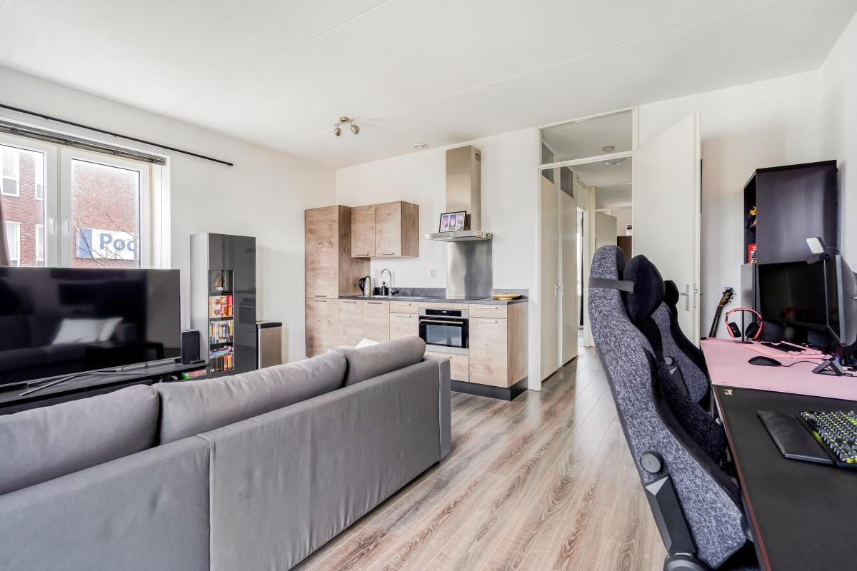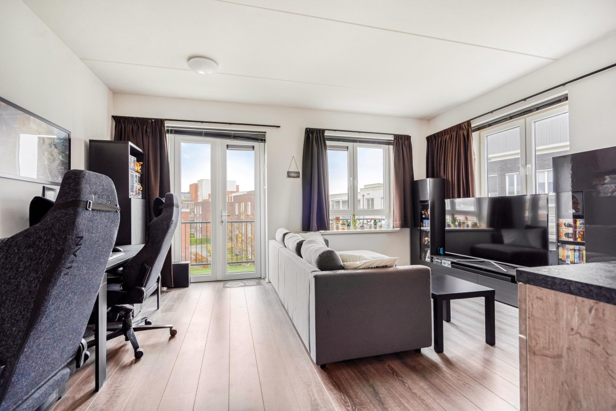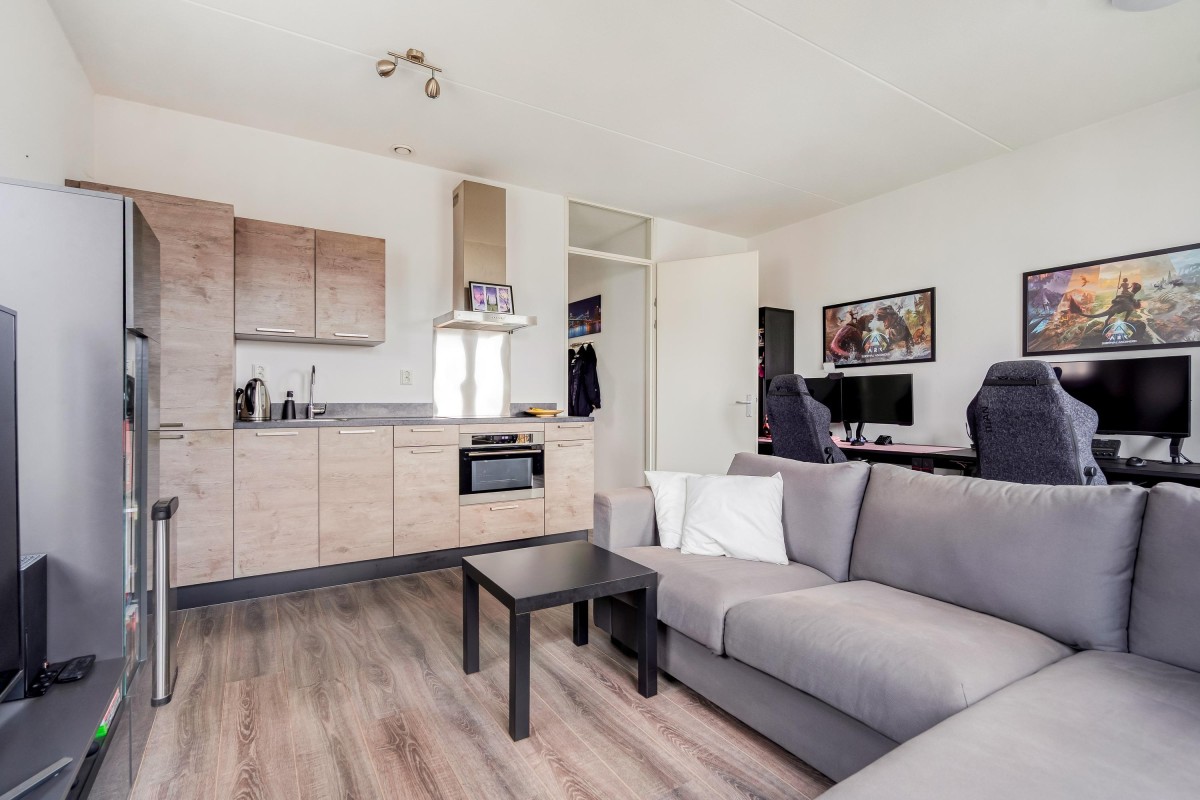 Via de hal komt u binnen in de gezellige woonkamer. De kamer heeft openslaande deuren naar het balkon (NW). Dankzij de grote ramen en het zijraam heeft de woonkamer een fijne lichtinval. De open keuken is van diverse inbouwapparaten te weten: inductie kookplaat, een afzuigkap, een combi magnetron, en een koel/vries combinatie. Beide slaapkamers zijn gelegen aan de voorzijde van de woning. De tweede (slaap)kamer wordt thans als kastenkamer gebruikt. In de hal bevindt zich een kast met aansluitingen voor de wasmachine en de droger. De badkamer is uitgerust met lichte betegeling tot aan het plafond en is voorzien van inloopdouche, wastafel en toilet. Het gehele appartement is voorzien van een mooie laminaatvloer.