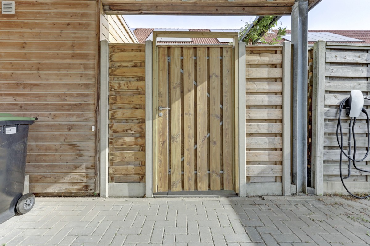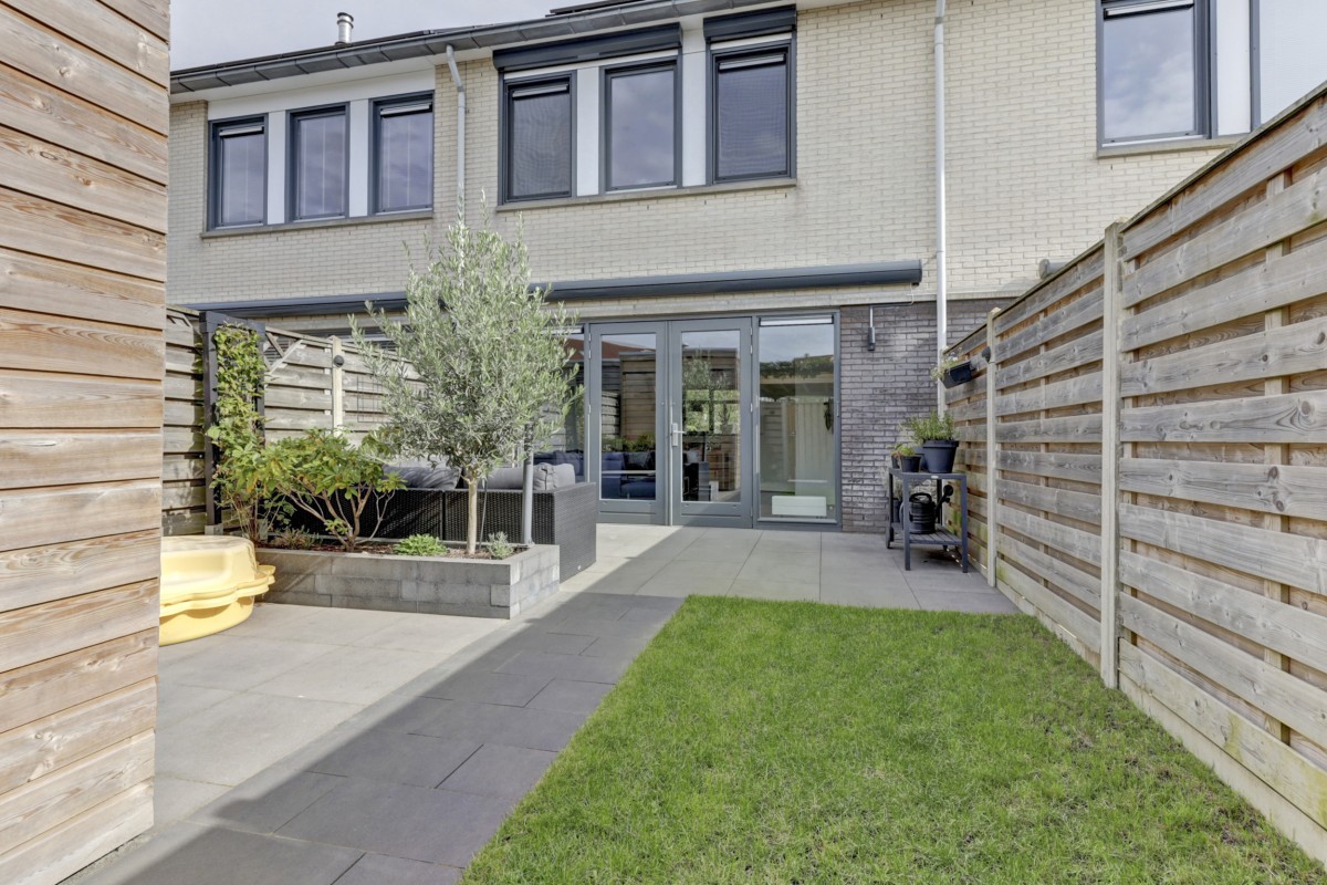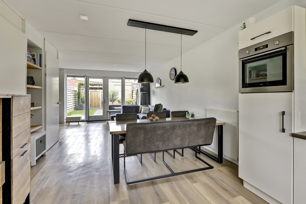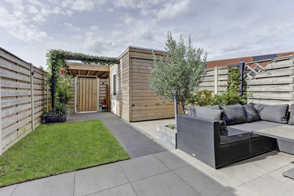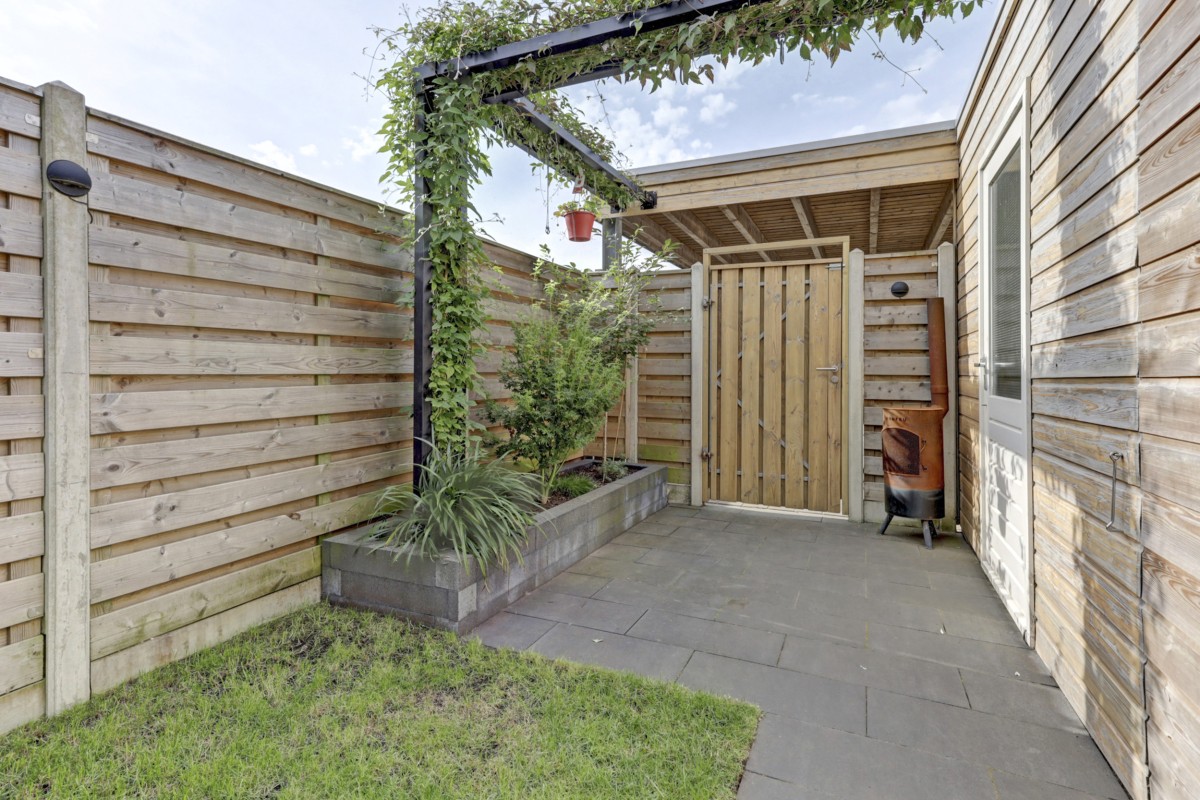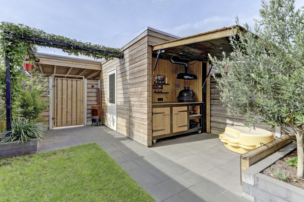 Lees verderDe woonkamer is tuingericht en beschikt over een moderne vloer en een grote glazen pui met openslaande tuindeuren naar de mooi aangelegde tuin. De moderne lichte keuken is straatgericht en biedt dankzij het grote raam veel licht en mooi vrij uitzicht over groen. De keuken is in een hoek opgesteld, biedt veel berg- en werkruimte en is tevens voorzien van een ingebouwde koelkast, vaatwasser, oven, gaskookplaat en afzuigschouw. De achtertuin is op het zuiden gesitueerd en mooi aangelegd. Tegen de vrijstaande houten berging is een fraaie buitenkeuken gerealiseerd. Achter de schutting is een privé parkeerplaats gelegen welke middels een carport overdekt is. Tevens is er voldoende openbare parkeergelegenheid aanwezig.