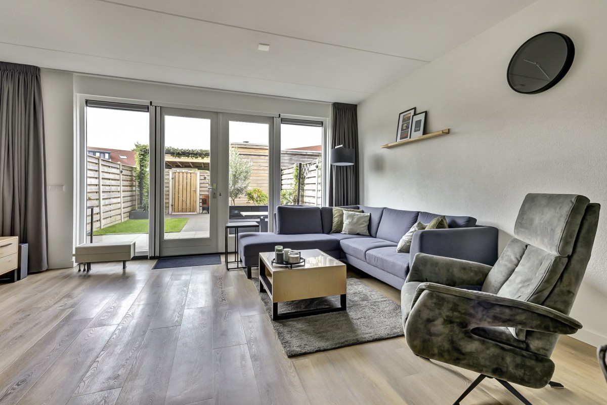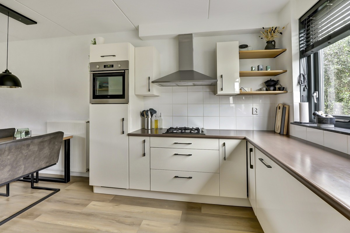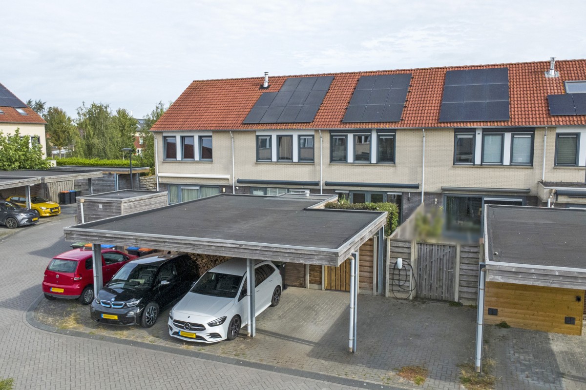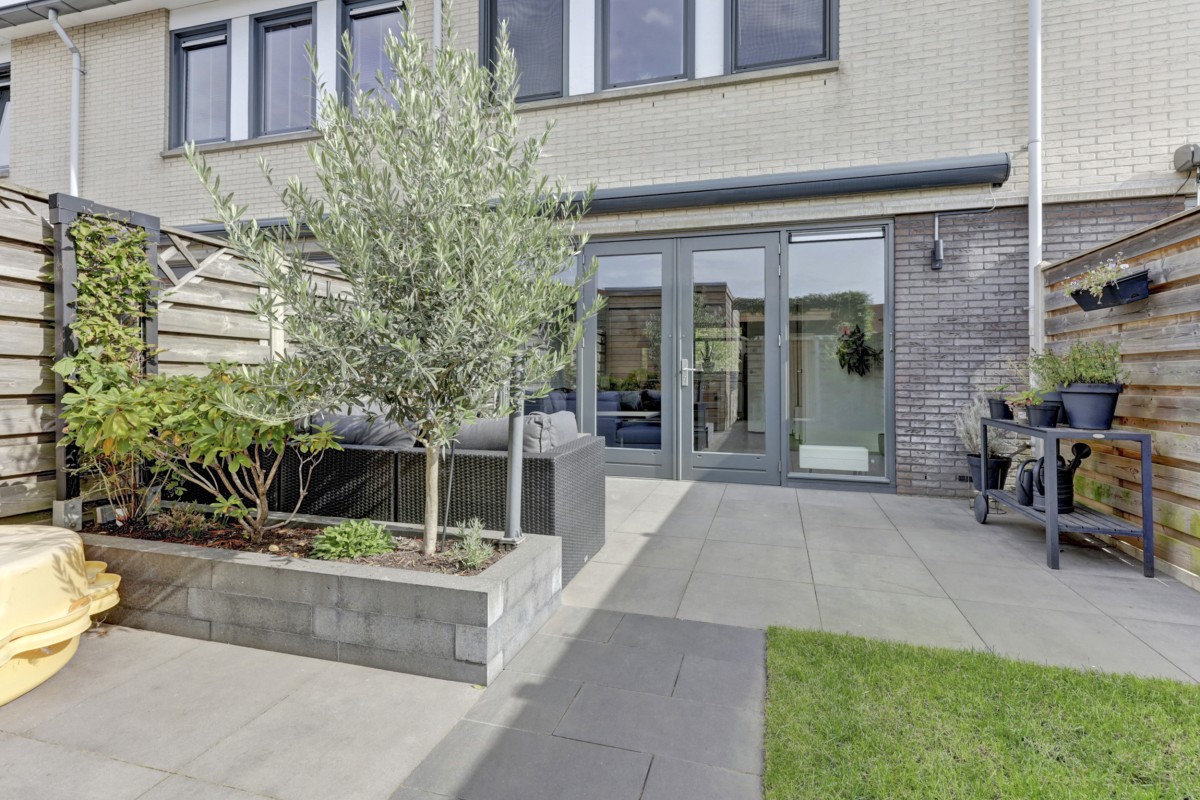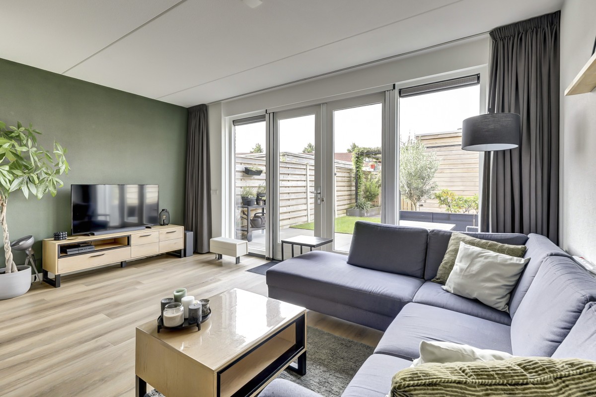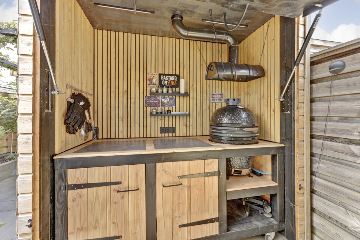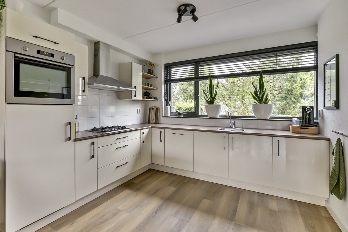 Lees verderDe woonkamer is tuingericht en beschikt over een moderne vloer en een grote glazen pui met openslaande tuindeuren naar de mooi aangelegde tuin. De moderne lichte keuken is straatgericht en biedt dankzij het grote raam veel licht en mooi vrij uitzicht over groen. De keuken is in een hoek opgesteld, biedt veel berg- en werkruimte en is tevens voorzien van een ingebouwde koelkast, vaatwasser, oven, gaskookplaat en afzuigschouw. De achtertuin is op het zuiden gesitueerd en mooi aangelegd. Tegen de vrijstaande houten berging is een fraaie buitenkeuken gerealiseerd. Achter de schutting is een privé parkeerplaats gelegen welke middels een carport overdekt is. Tevens is er voldoende openbare parkeergelegenheid aanwezig.
