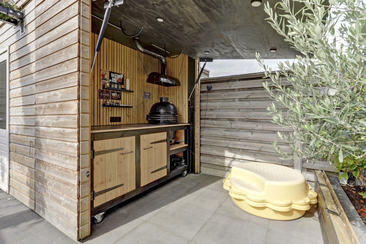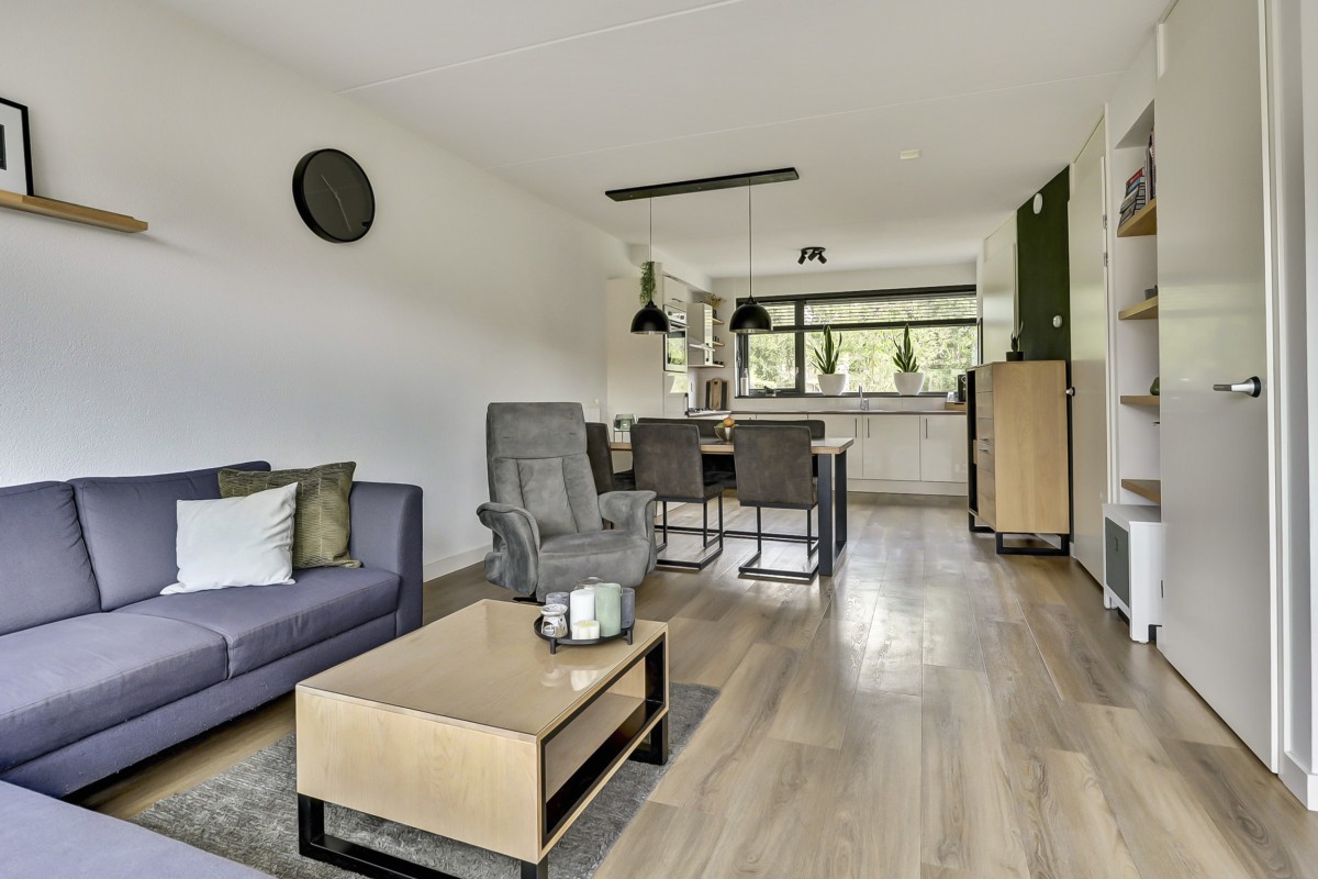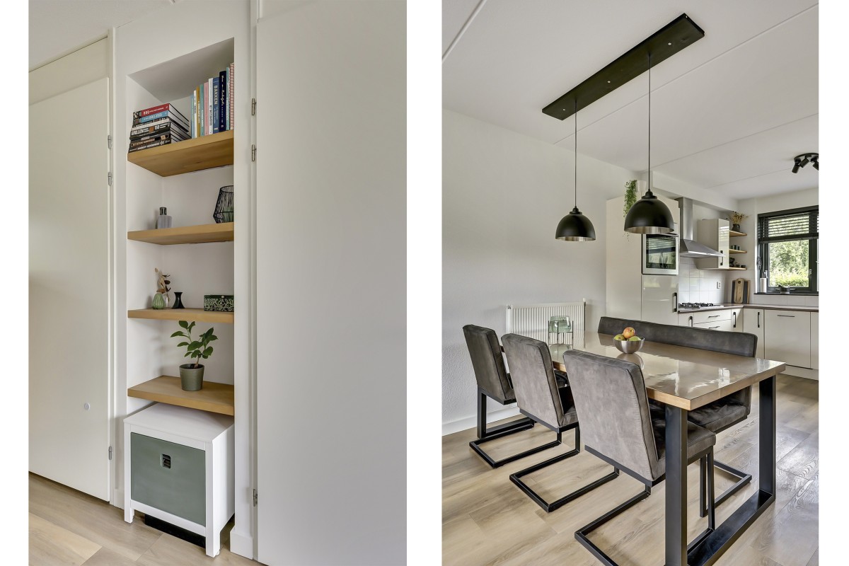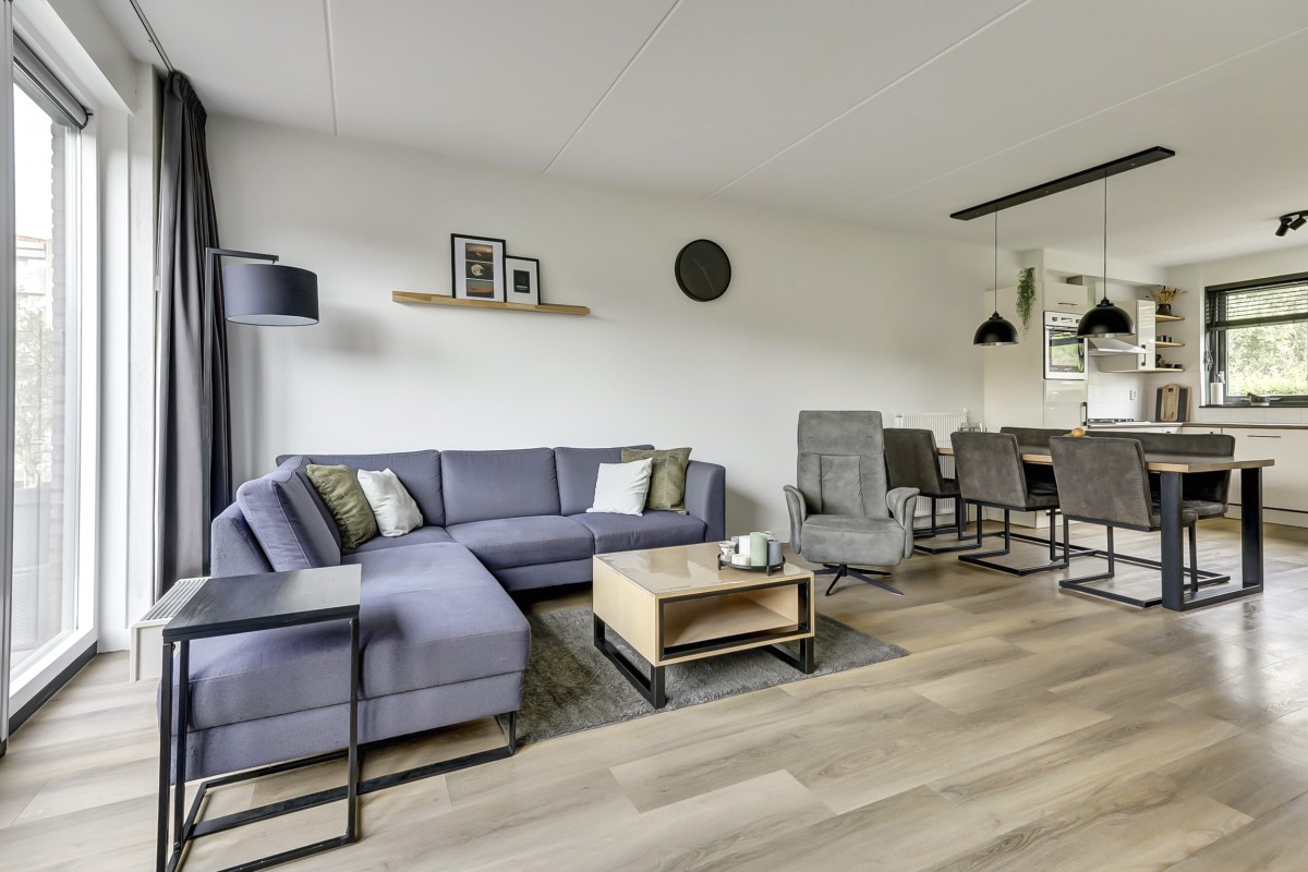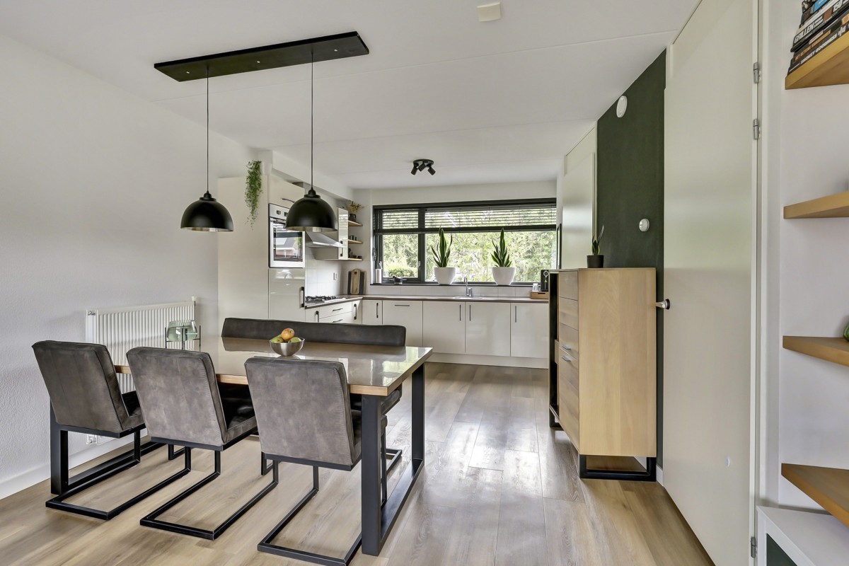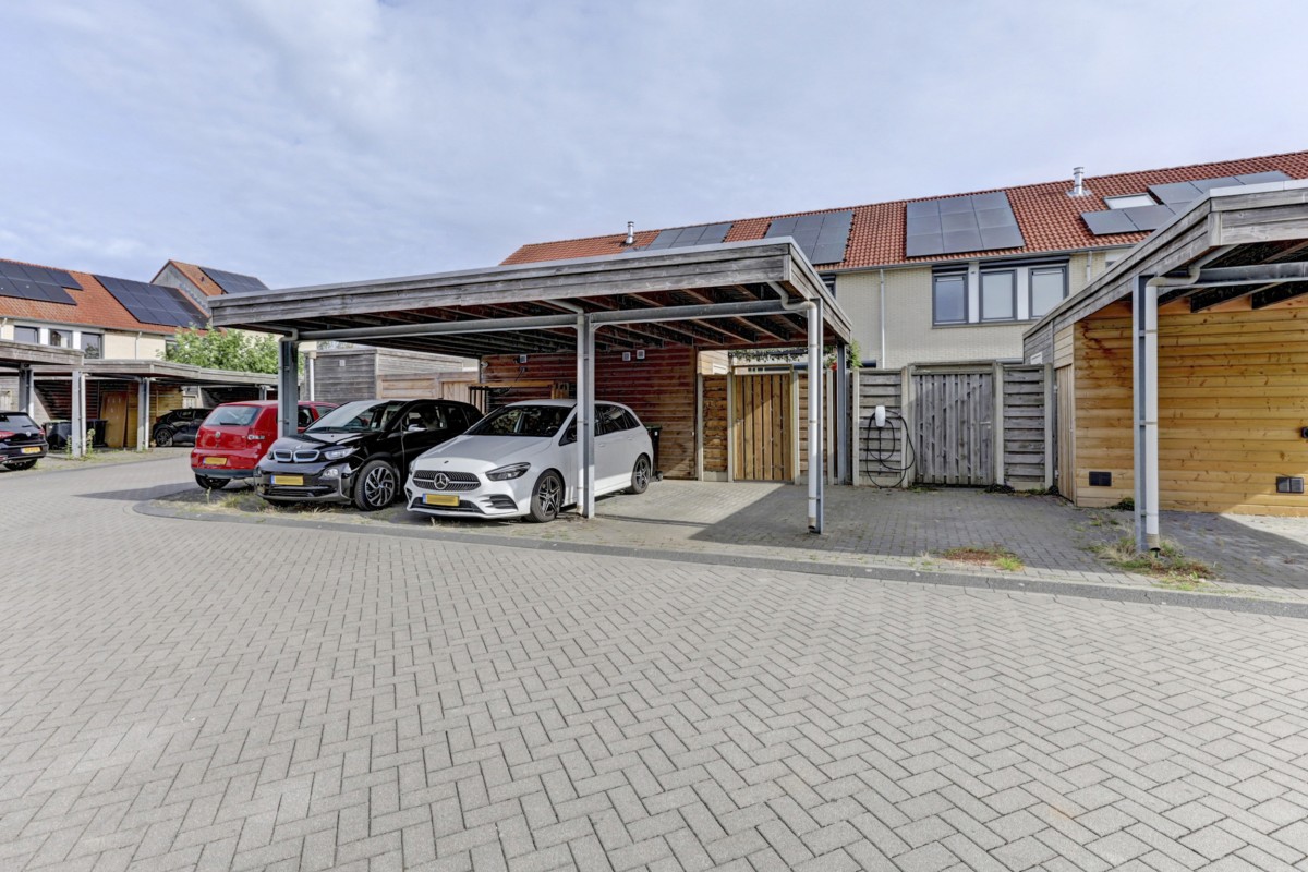 Lees verderDe woonkamer is tuingericht en beschikt over een moderne vloer en een grote glazen pui met openslaande tuindeuren naar de mooi aangelegde tuin. De moderne lichte keuken is straatgericht en biedt dankzij het grote raam veel licht en mooi vrij uitzicht over groen. De keuken is in een hoek opgesteld, biedt veel berg- en werkruimte en is tevens voorzien van een ingebouwde koelkast, vaatwasser, oven, gaskookplaat en afzuigschouw. De achtertuin is op het zuiden gesitueerd en mooi aangelegd. Tegen de vrijstaande houten berging is een fraaie buitenkeuken gerealiseerd. Achter de schutting is een privé parkeerplaats gelegen welke middels een carport overdekt is. Tevens is er voldoende openbare parkeergelegenheid aanwezig.