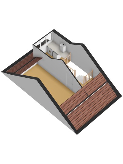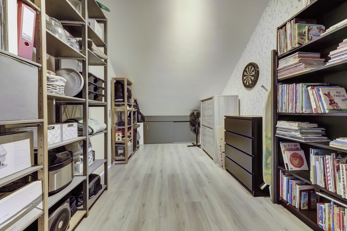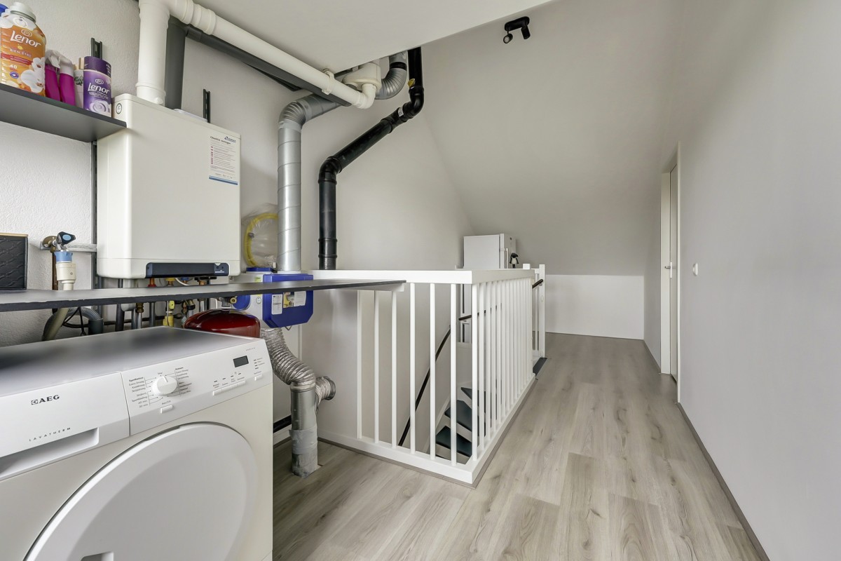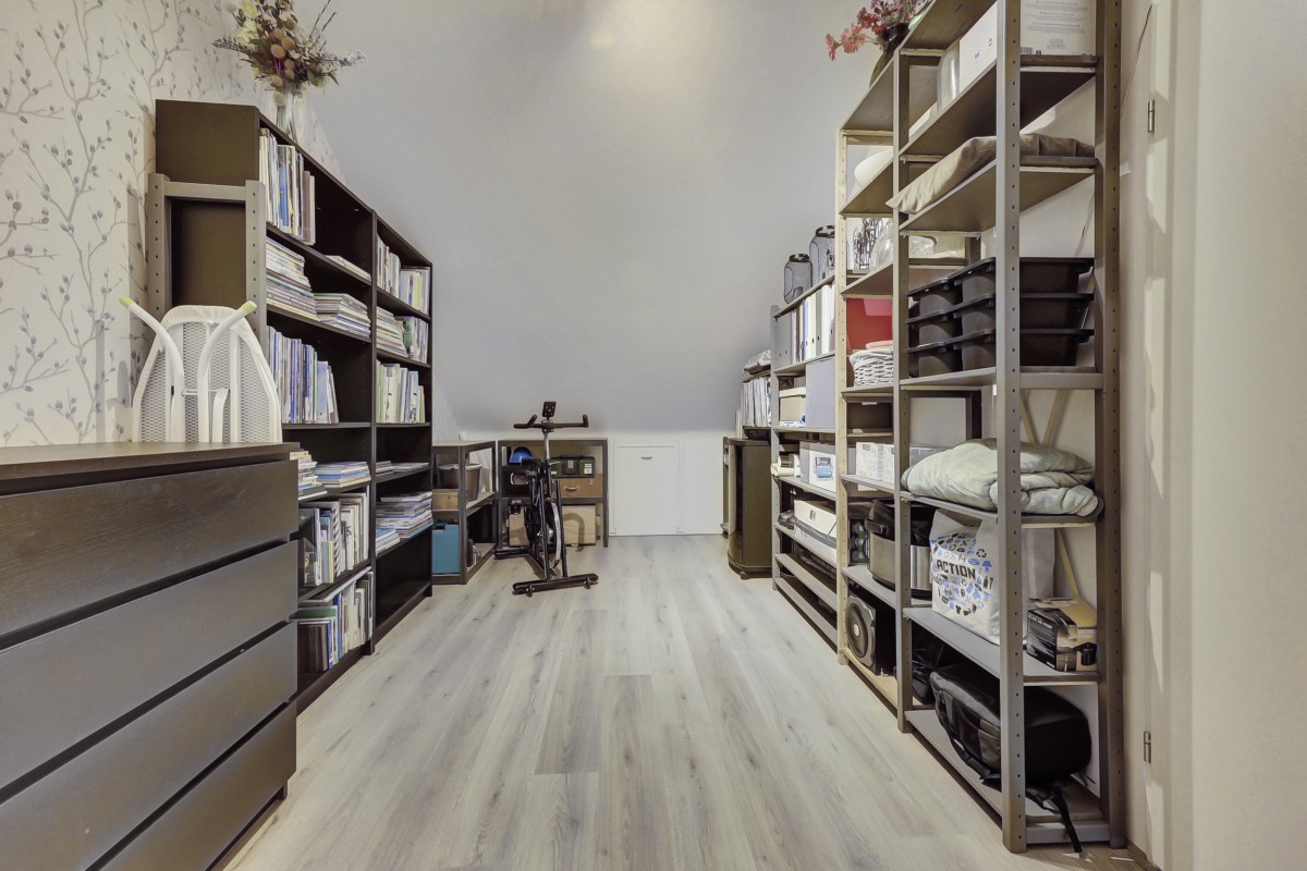 Tweede verdieping: middels een vaste trap is de ruime zolderverdieping bereikbaar. Op deze verdieping bevindt zich op de voorzolder de opstelplaats van de wasmachine en wasdroger, alsmede van de c.v.-ketel (Intergas HR) en de mechanische ventilatie. Mede door de dakkapel is deze ruimte licht en goed beloopbaar. Tevens biedt deze verdieping een mooie 4e kamer. Achter de knieschotten is veel bergruimte aanwezig. Deze verdieping is voorzien van een moderne laminaatvloer.