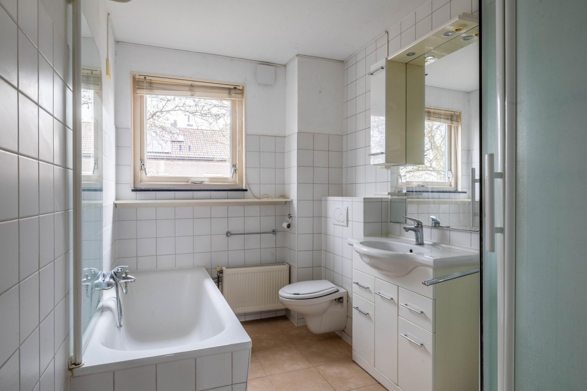 De overloop biedt toegang tot drie slaapkamers, allen van een goed formaat, en een badkamer. De badkamer is voorzien van zowel een bad als een douche, een wastafel en een tweede toilet.