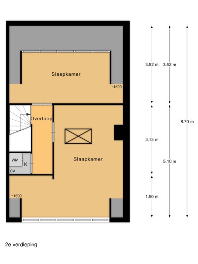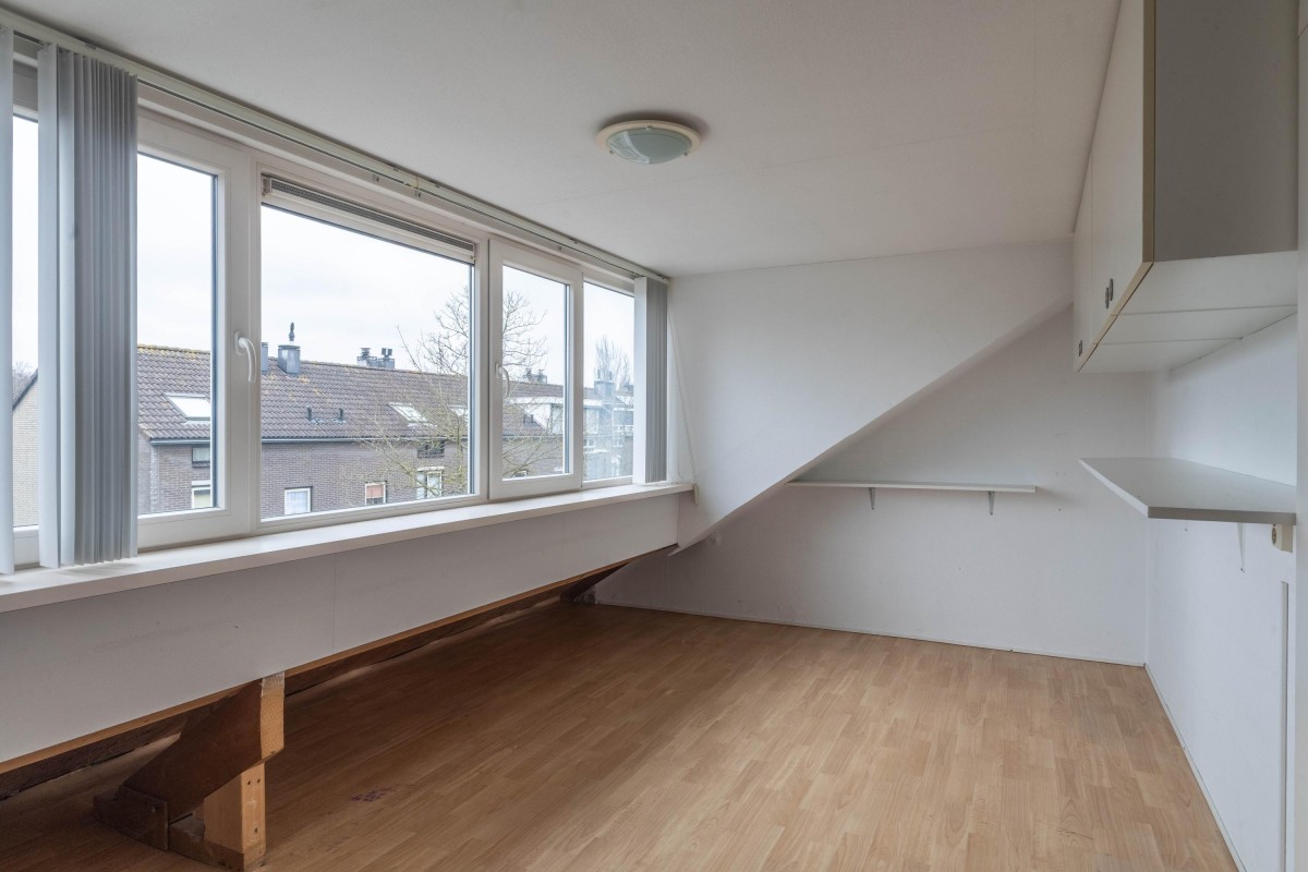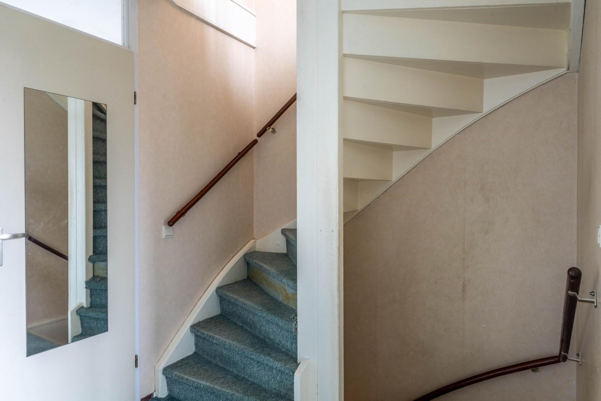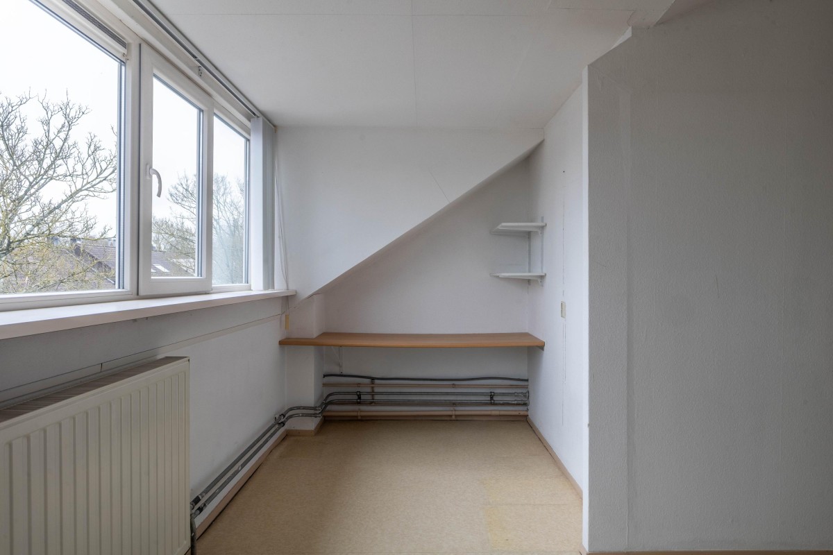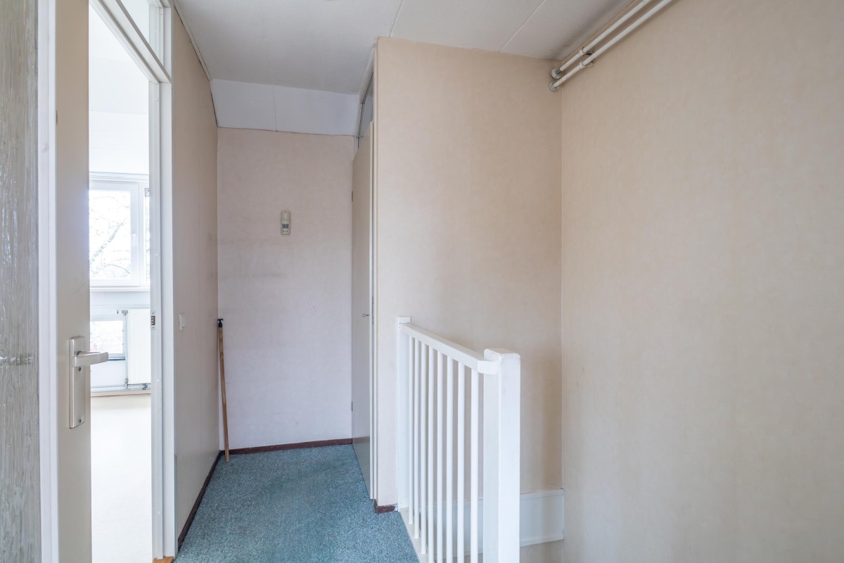 Via een vaste trap kom je bij de tweede verdieping. Deze verdieping is vergroot met 2 dakkapellen, waardoor er twee ruime slaapkamers zijn gerealiseerd. Tevens is hier de aansluiting voor de wasmachine, de CV-opstelling en voldoende bergruimte.