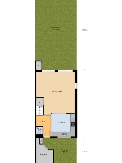 Via de voortuin bereik je de entree van de woning. Hier vind je een hal, een apart toilet en de meterkast. Er is tevens een garderobe en een trap naar de eerste verdieping. De lange doorzonwoonkamer van circa 8,5 meter (dus veel natuurlijk licht) heeft een deur naar de tuin. Het voordeel van een hoekwoning is, dat de woonkamer ook aan de zijkant een raam heeft voor extra lichtinval. De halfopen keuken is L-vormig ligt aan de voorzijde van de woning en is voorzien van inbouwapparatuur. De zonnige achtertuin op het westen strekt zich uit over bijna 11 meter.