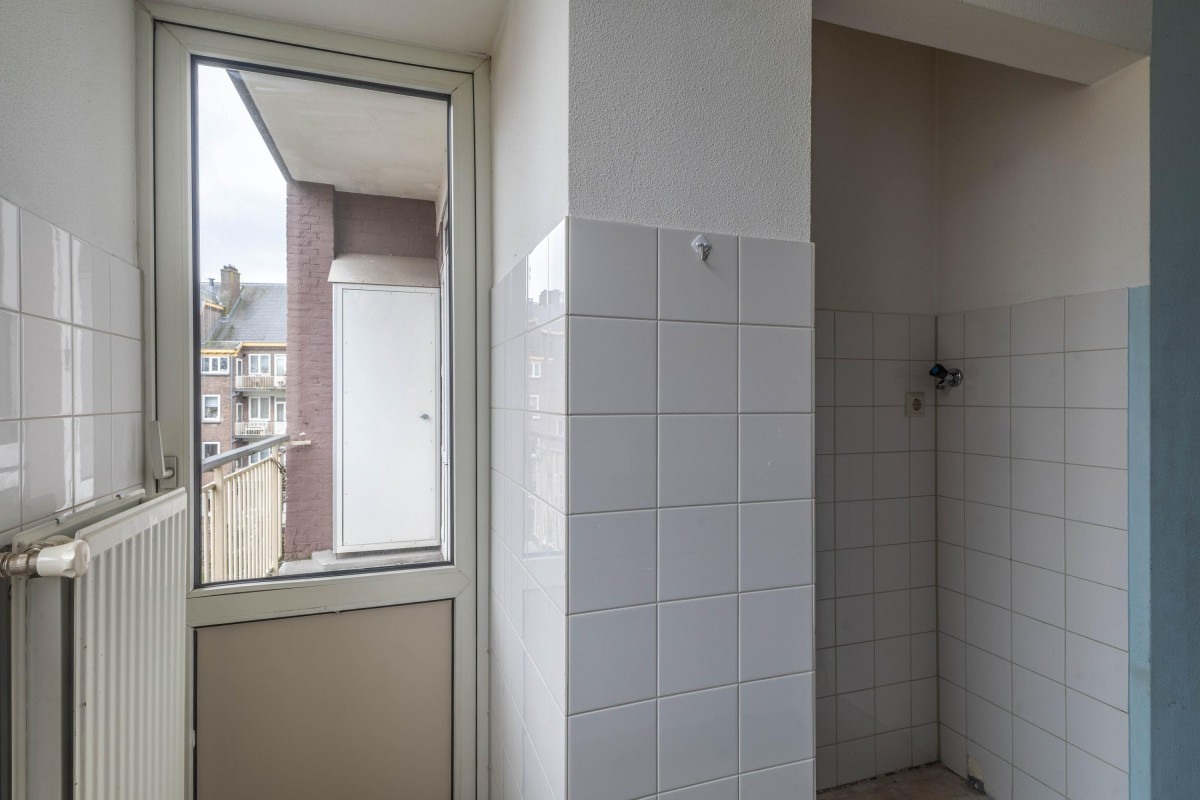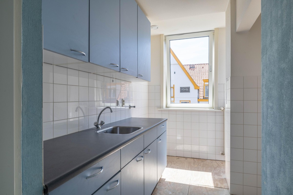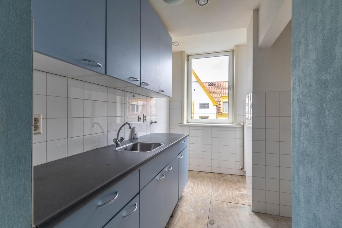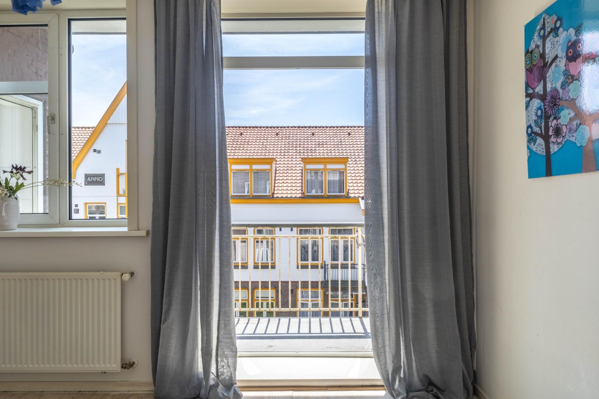 Lees verderDe slaapkamer aan de achterzijde biedt toegang tot het zonnige balkon via openslaande klapdeuren. Naast de meterkast bevindt zich de keuken die eveneens toegang heeft tot het balkon.
