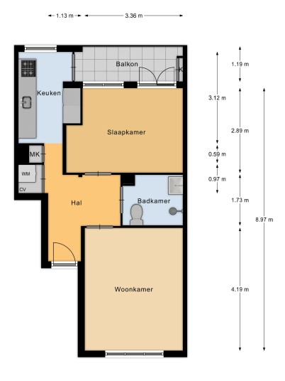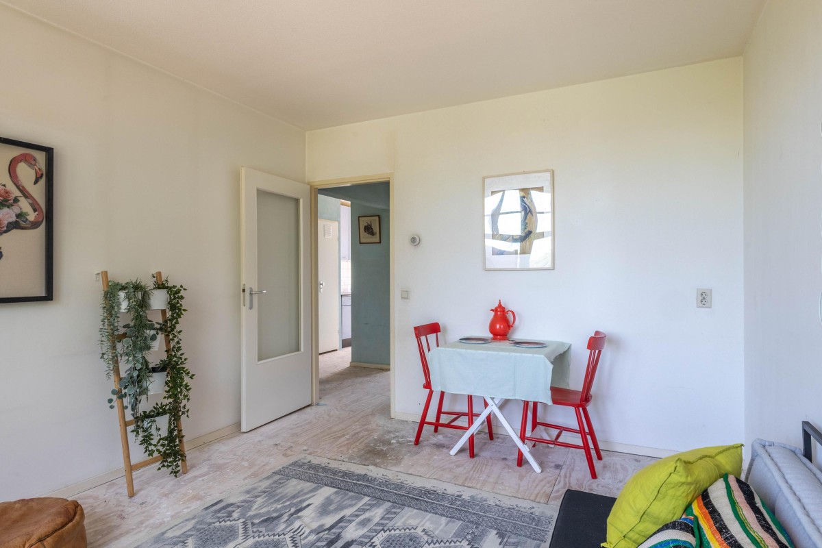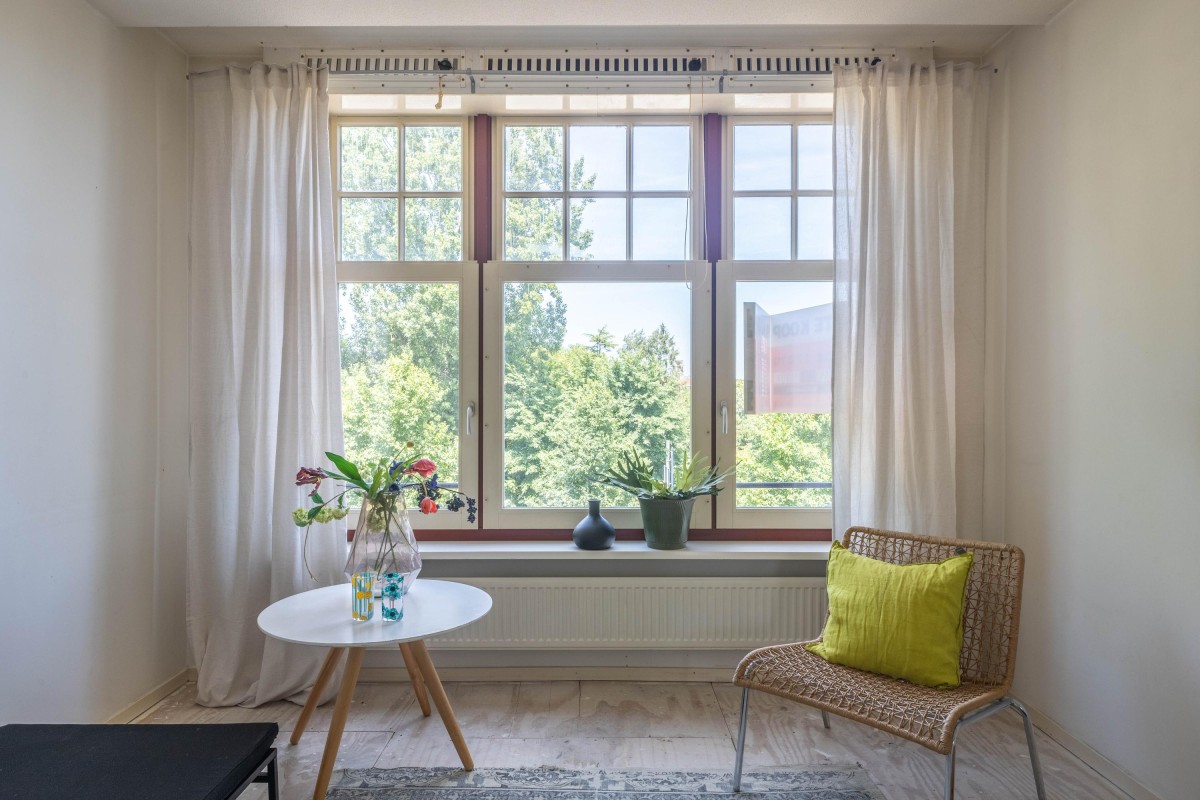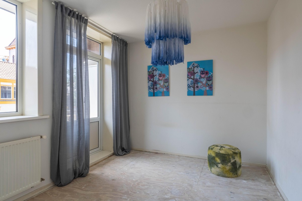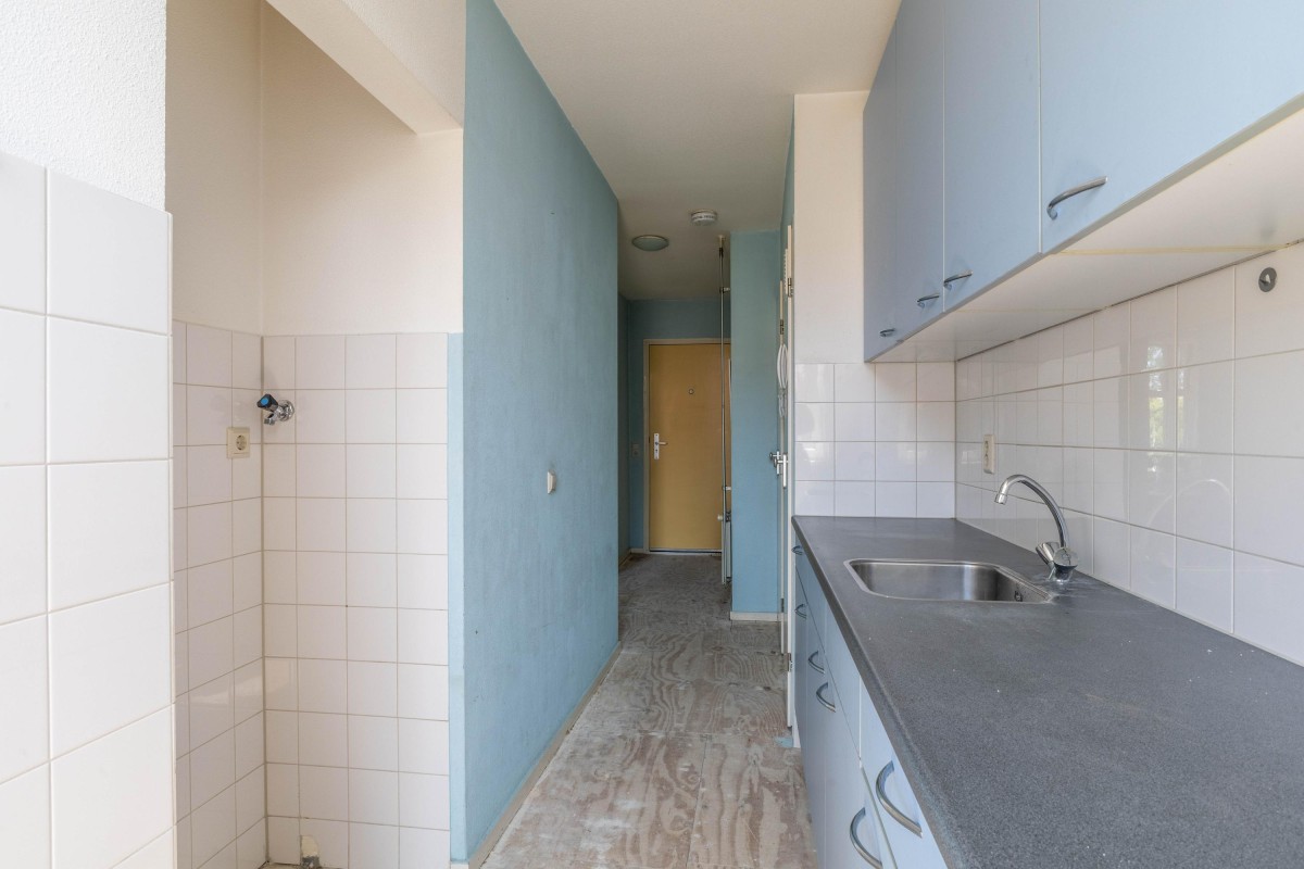 Lees verderDe slaapkamer aan de achterzijde biedt toegang tot het zonnige balkon via openslaande klapdeuren. Naast de meterkast bevindt zich de keuken die eveneens toegang heeft tot het balkon.
