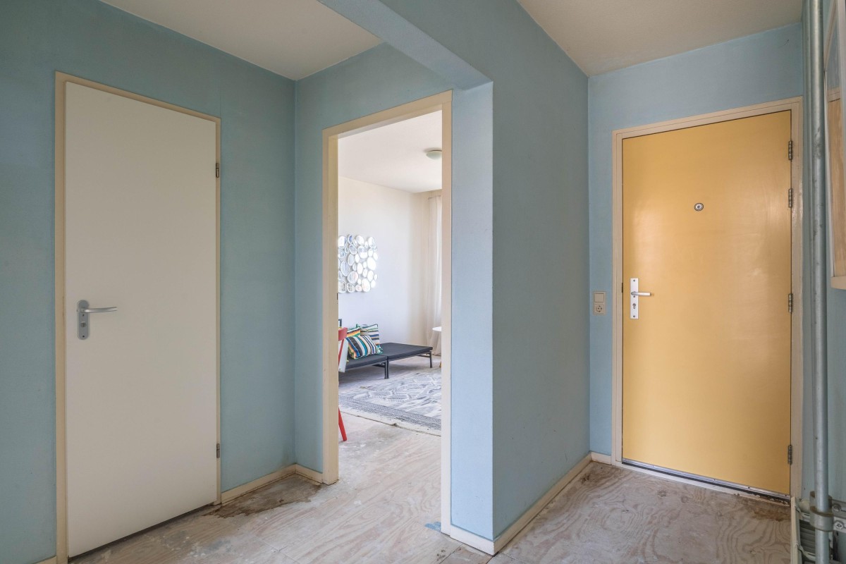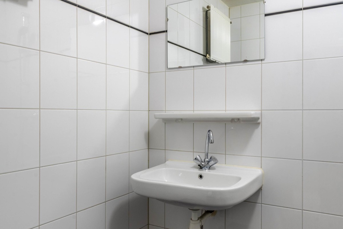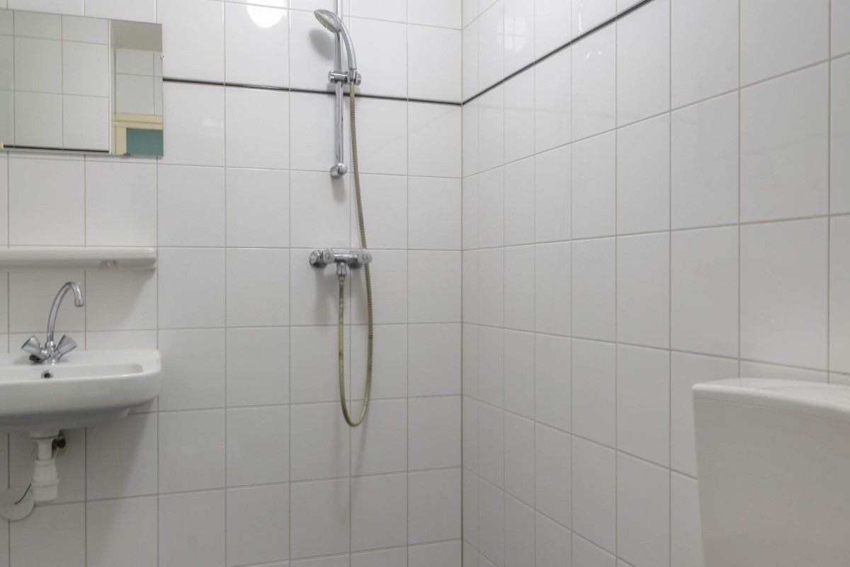 Via het gemeenschappelijke trappenhuis bereikt u het appartement op de tweede etage. U komt binnen in de hal, die toegang biedt tot verschillende vertrekken. Aan de voorzijde bevindt zich de goed bemeten woonkamer met raampartij en vrij uitzicht. Grenzend aan de woonkamer vindt u de badkamer, voorzien van toilet, douche en wastafel.