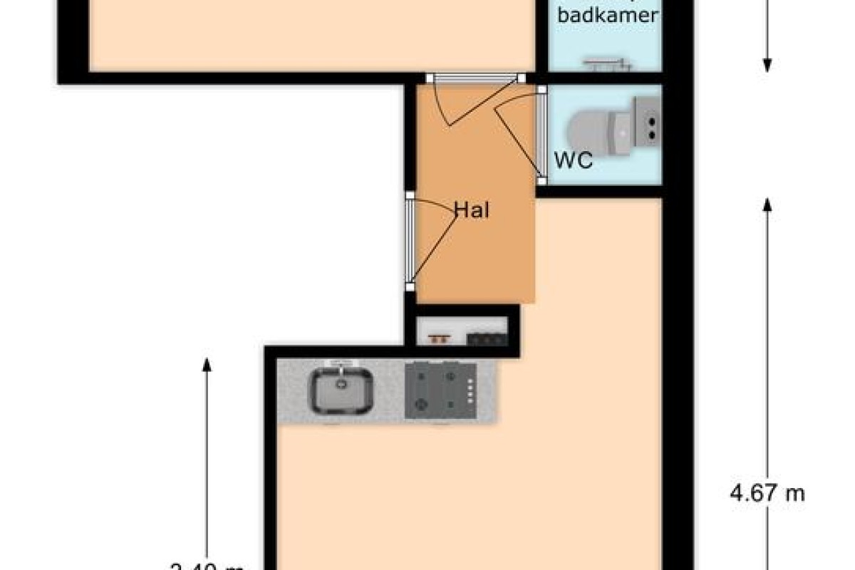 Lees verderVanuit de gang is een separaat toilet aanwezig.