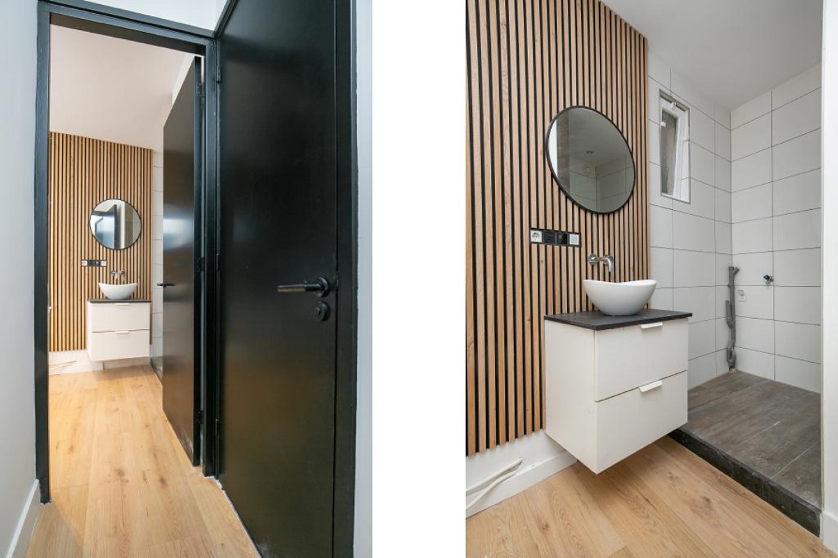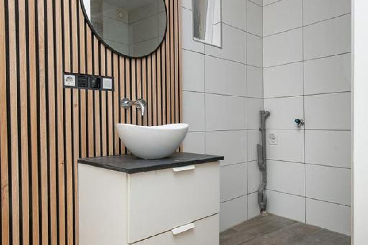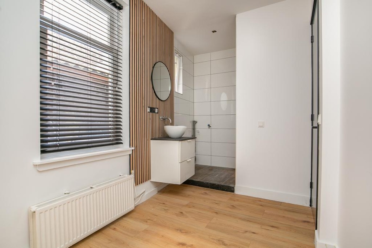 De slaapkamer welke is uitgerust met een inloopdouche en badmeubel deze is gesitueerd aan de achterzijde van het appartement.