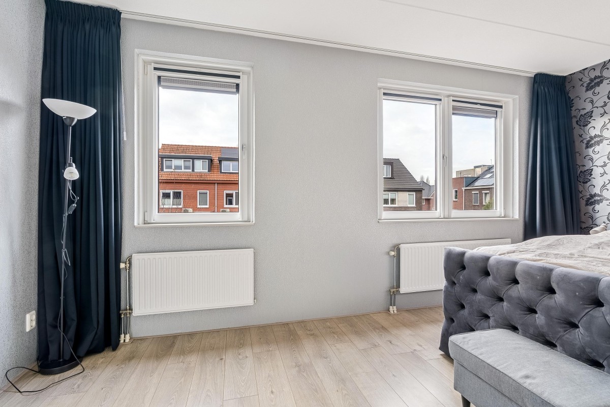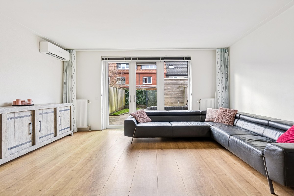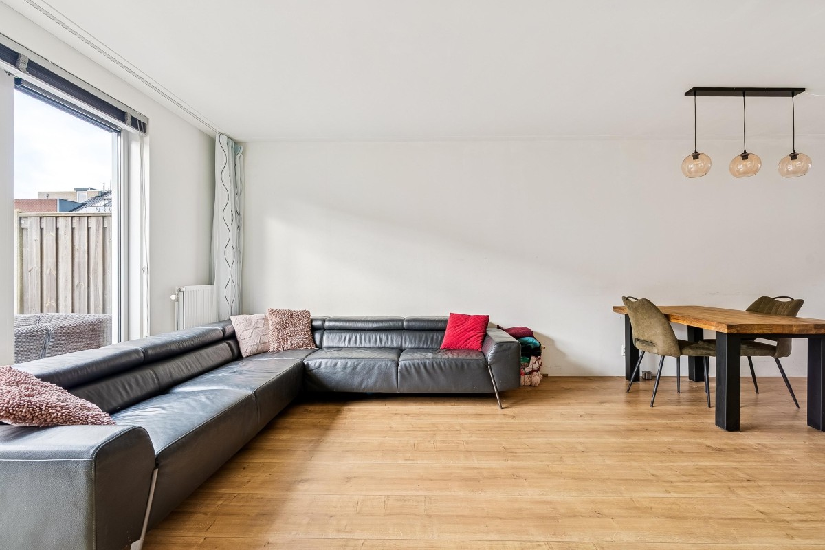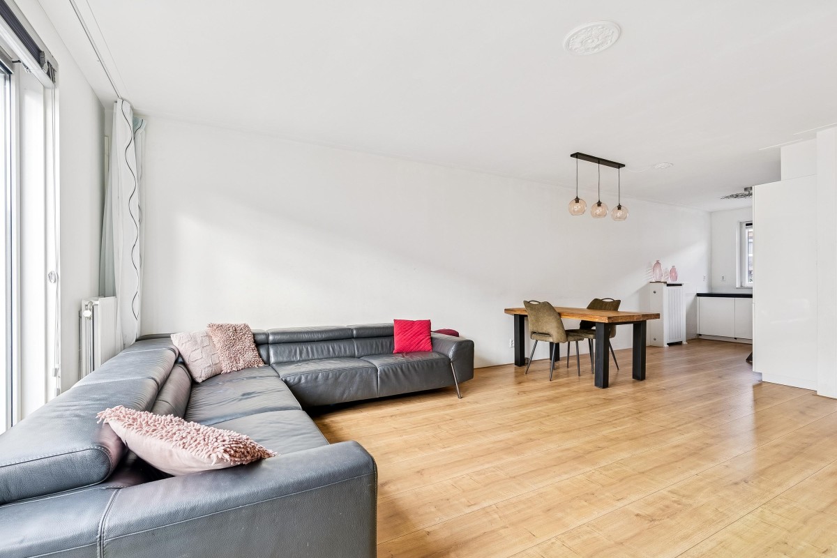 De lichte en sfeervolle woonkamer is afgewerkt met een laminaatvloer. Door de uitbouw is de woonkamer maar liefst 6 meter diep. Via de openslaande deuren heeft u direct toegang tot de zonnige achtertuin op het zuidwesten.